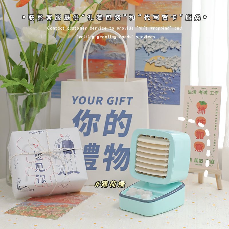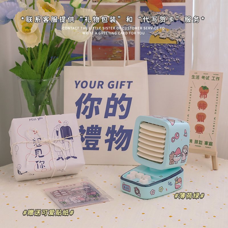 • 민트 그린 스티커 모델 가습기 + 공기 냉각기 복고풍 스타일