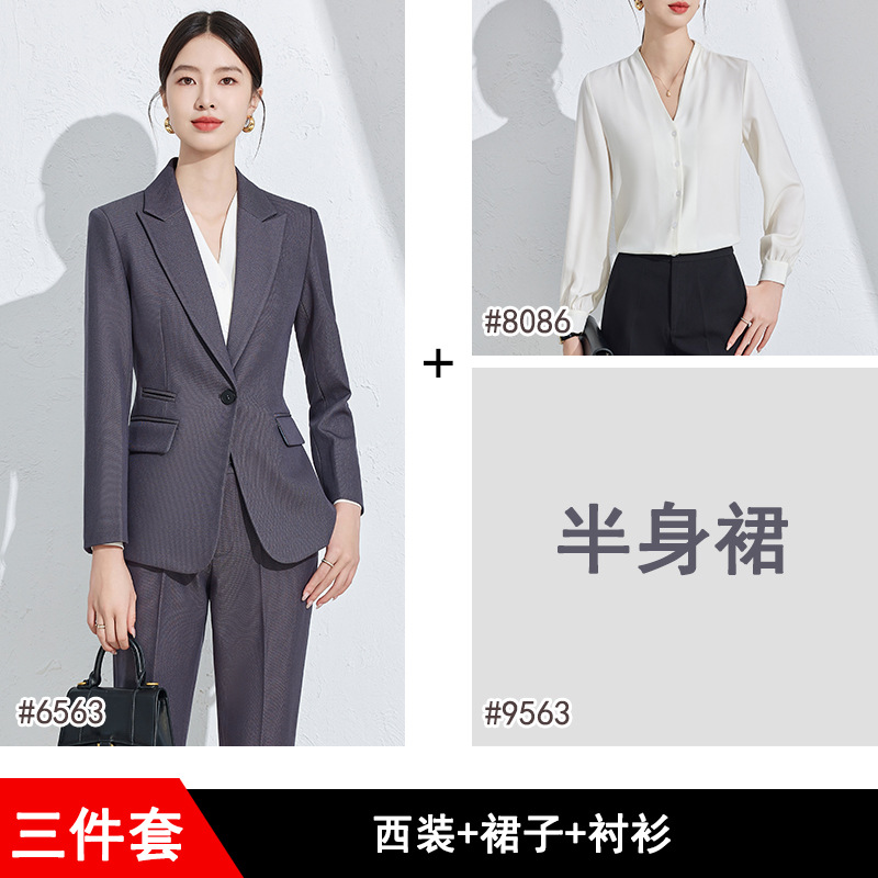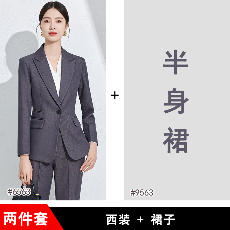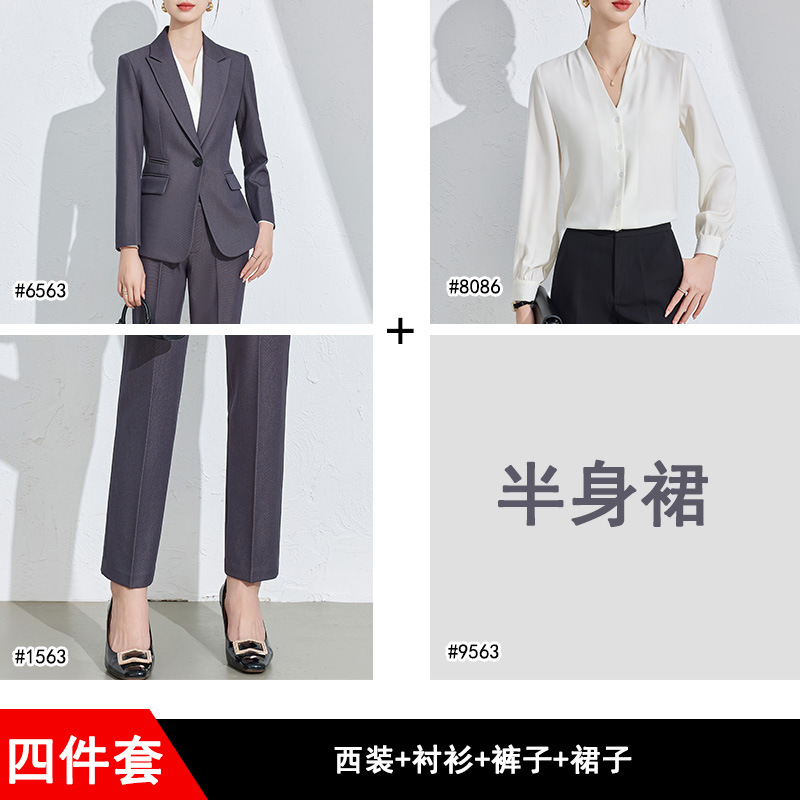 • 회색 양복 + 셔츠 + 여성용 바지 + 여성용 스커트
