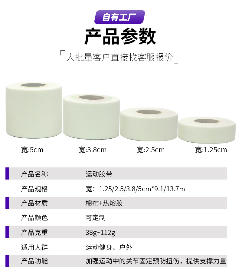 공장 도매 운동 테이프 흰색 패치 스포츠 테이프 면 소재 탄성 붕대 근육 패치