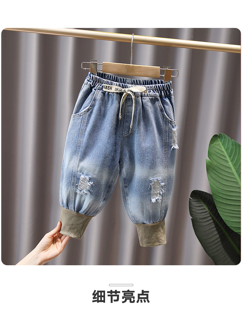 소년 청바지 가을 서양식 2024 봄과 가을 새 바지 할란 바지 한국 어린이 발 묶인 바지 구멍스토어 가기