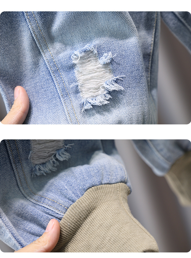 소년 청바지 가을 서양식 2024 봄과 가을 새 바지 할란 바지 한국 어린이 발 묶인 바지 구멍