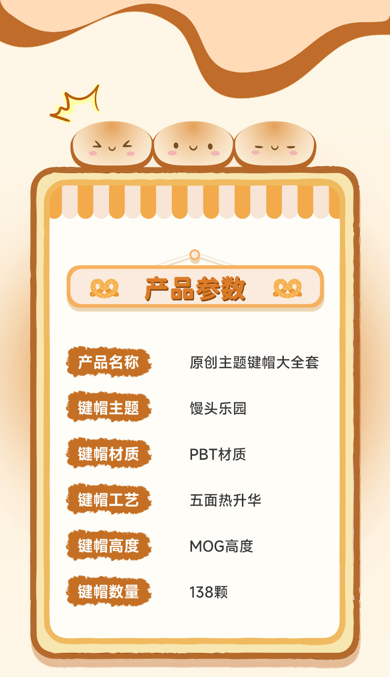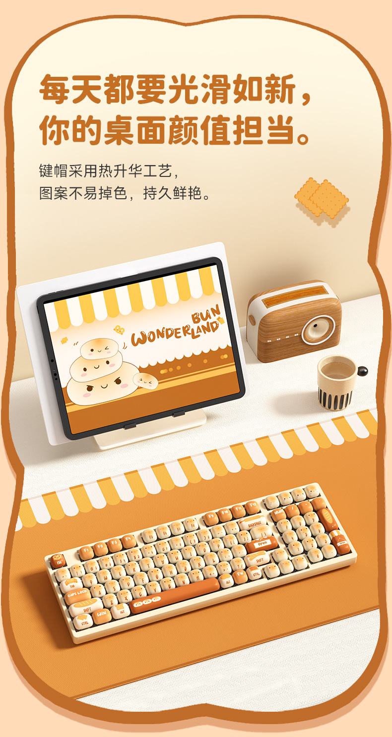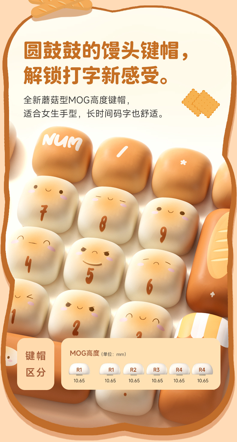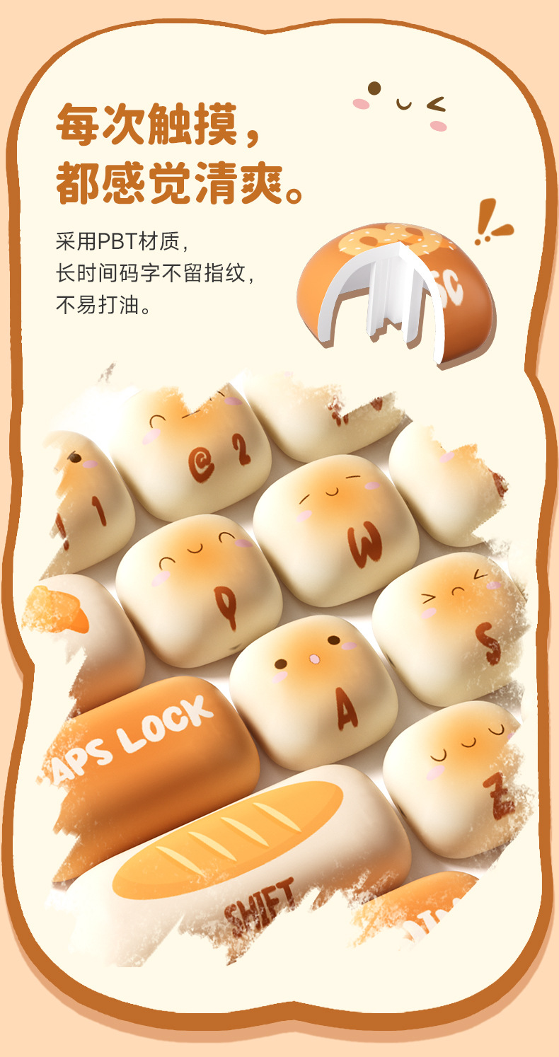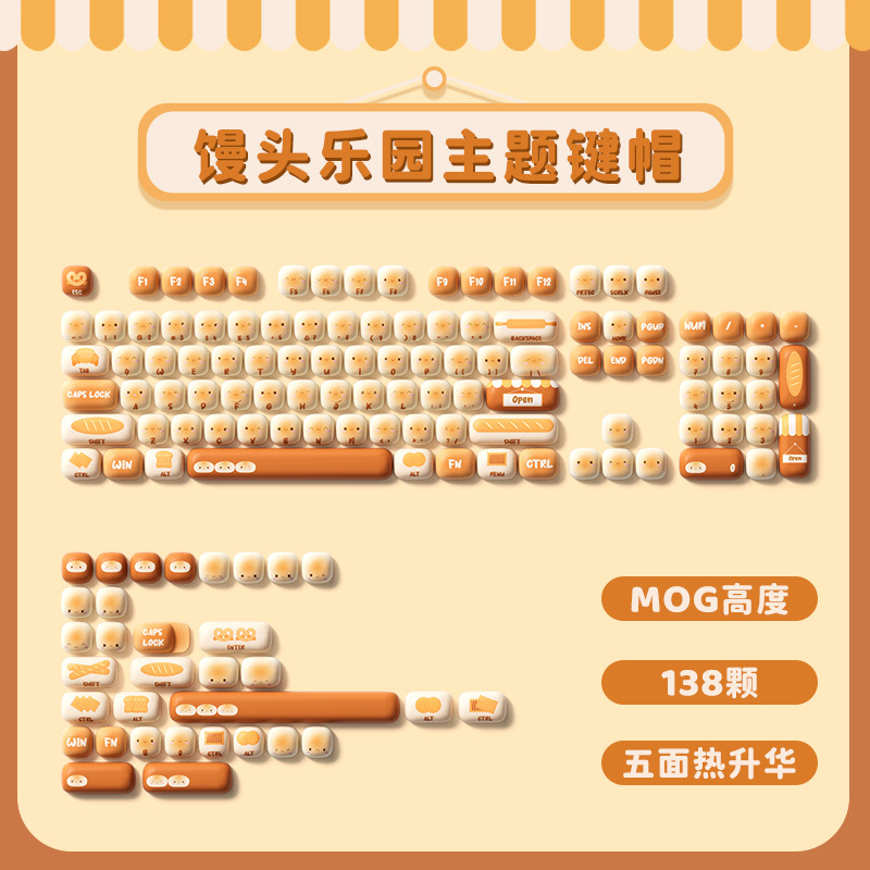 Magic Geek X AKKO 찐 빵 파라다이스 테마 키 캡 귀여운 성격 교차 기계 키보드 캡 5 면 열 승화