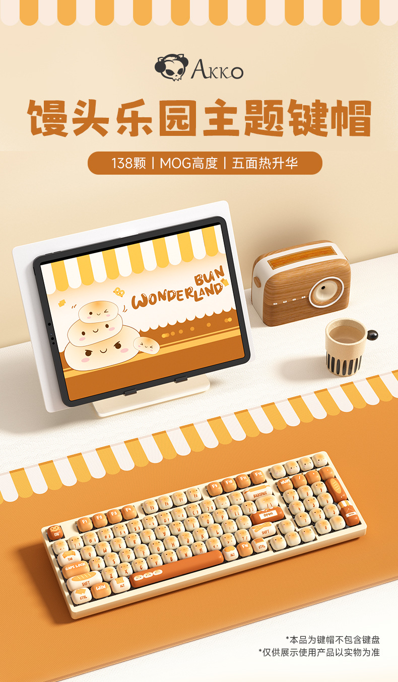 Magic Geek X AKKO 찐 빵 파라다이스 테마 키 캡 귀여운 성격 교차 기계 키보드 캡 5 면 열 승화스토어 가기