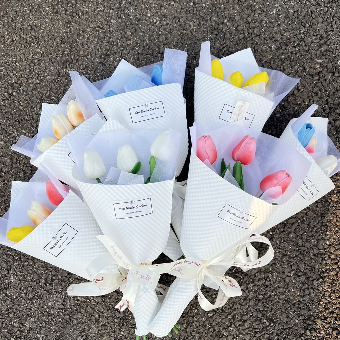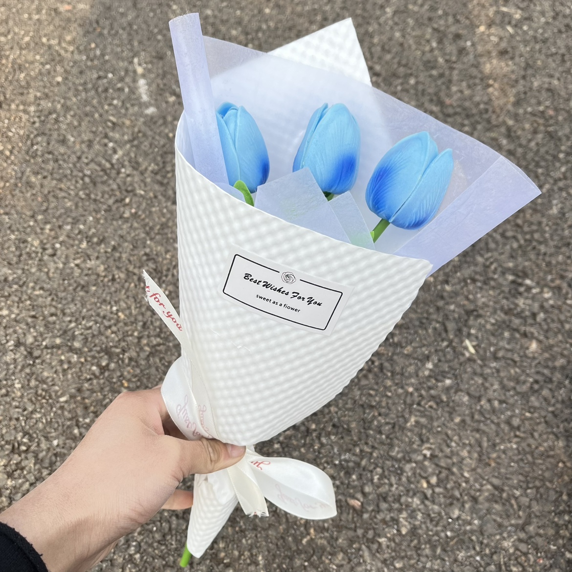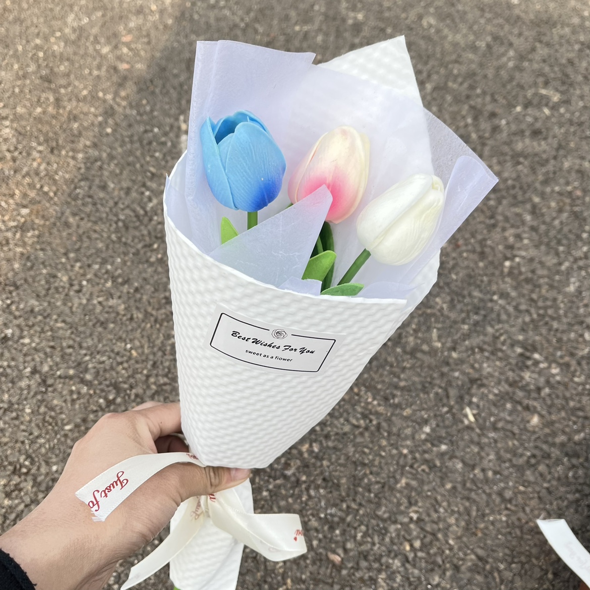 • 파란색, 연분홍색, 흰색 튤립 3개 양각