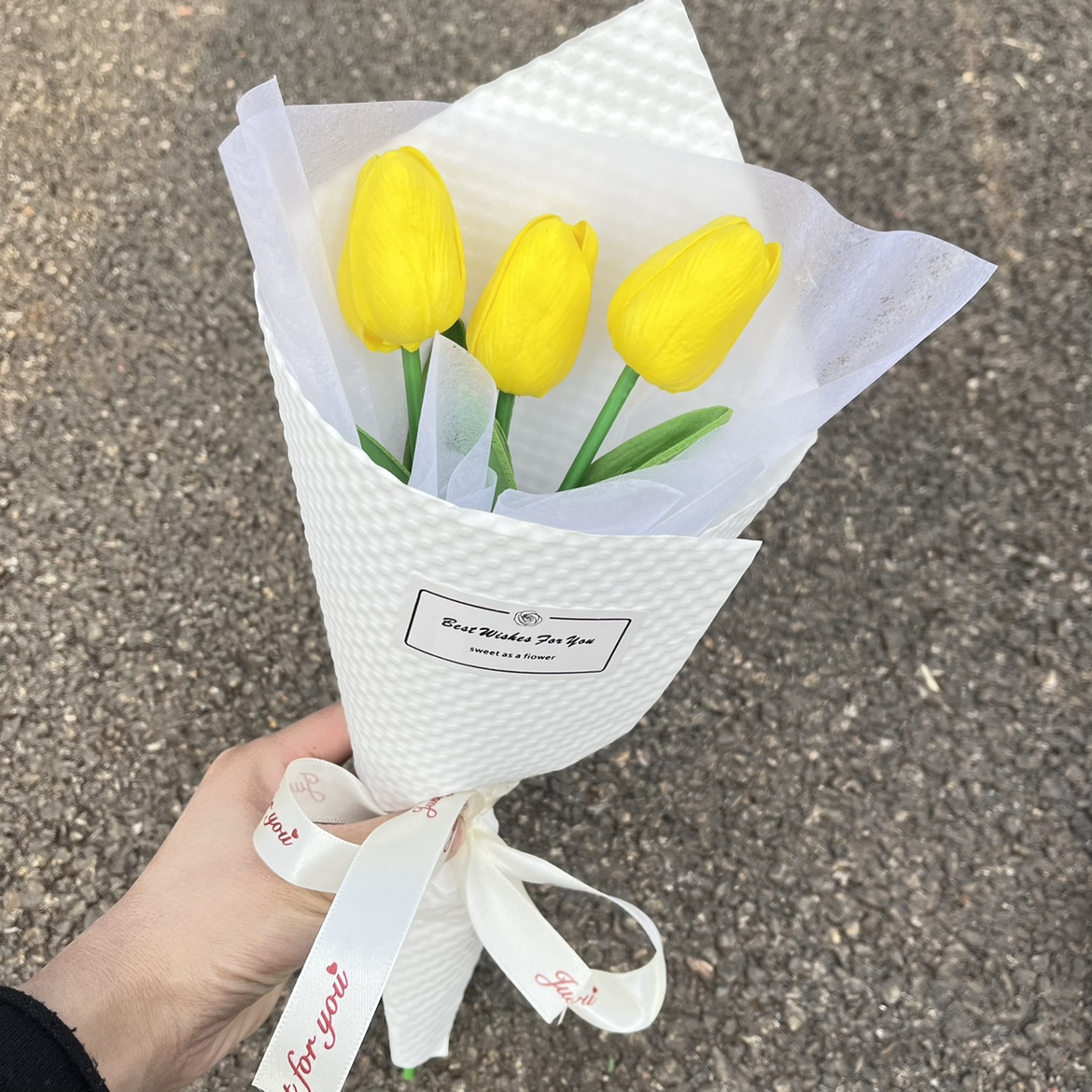 • 양각 샴페인 옐로우 사과 핑크 튤립 3개