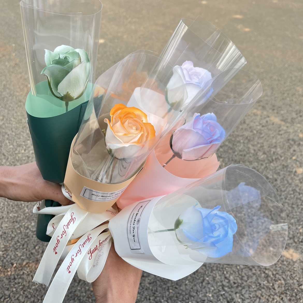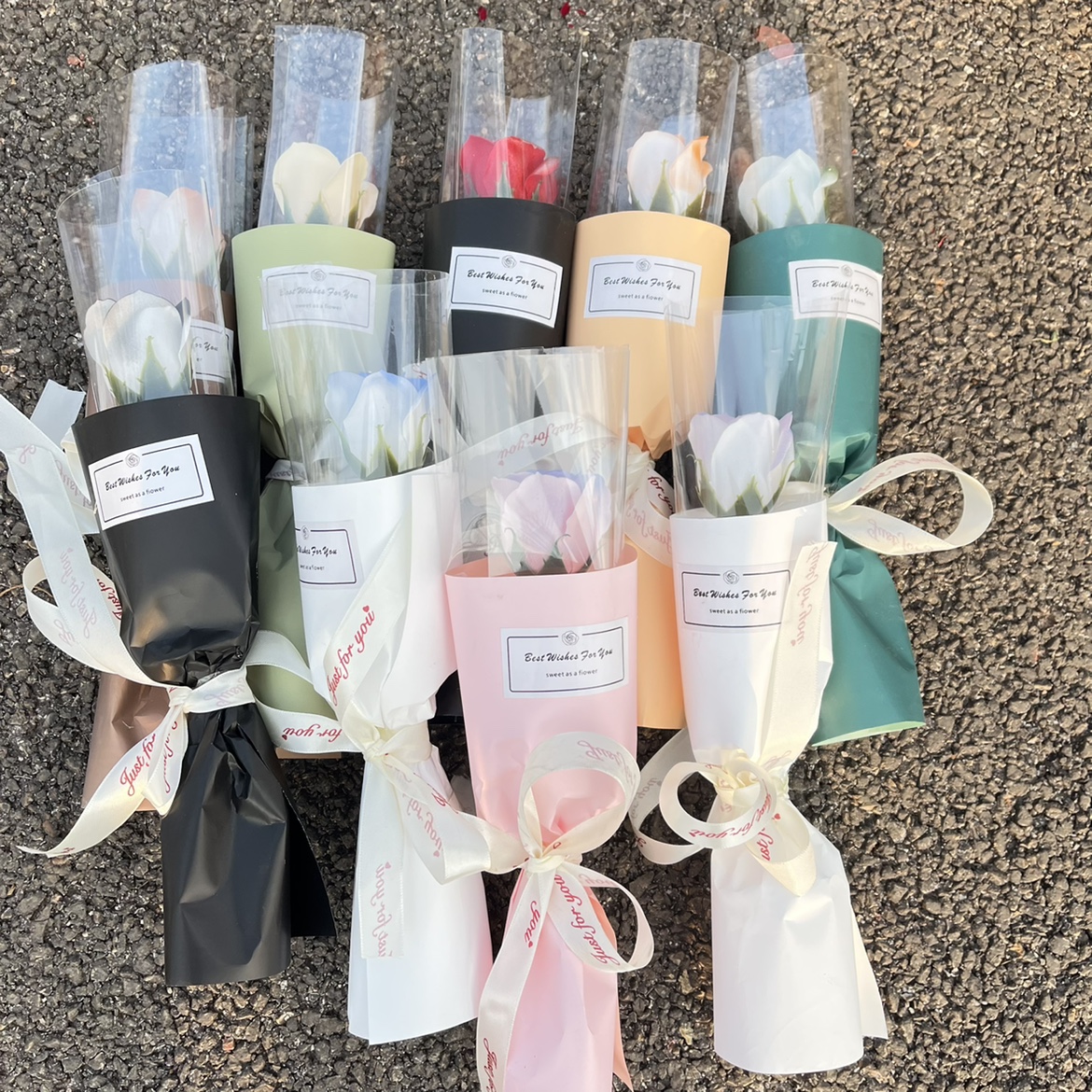 싱글 완성 된 비누 꽃다발 멀티 헤드 로즈 말린 꽃 튤립 인공 꽃 선물 최고의 친구 어머니의 날