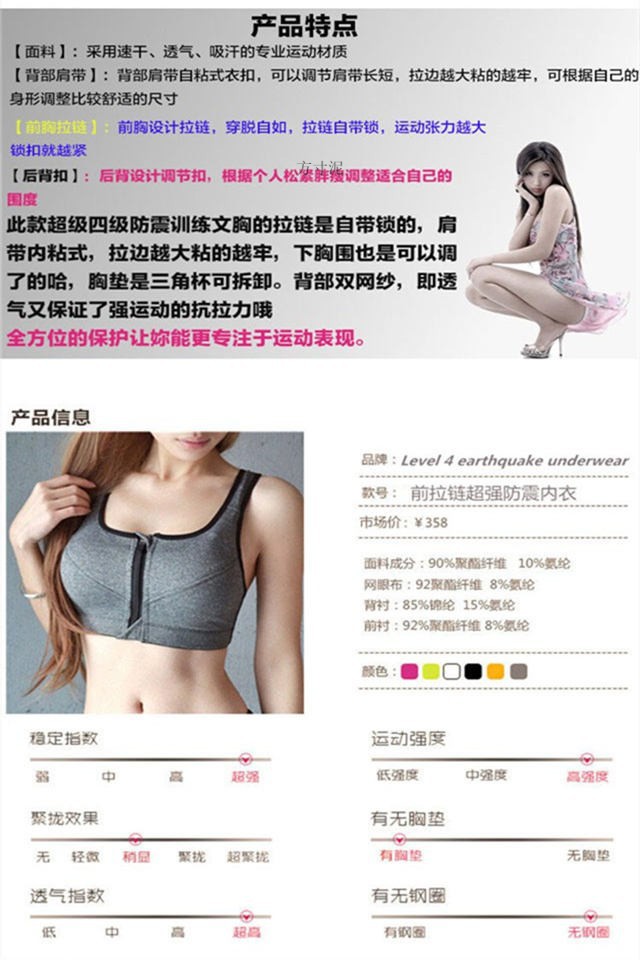 스포츠 속옷 여성 실행 고강도 얇은 브래지어 전면 지퍼 조정 가능한 환기 학생 조끼 공급스토어 가기