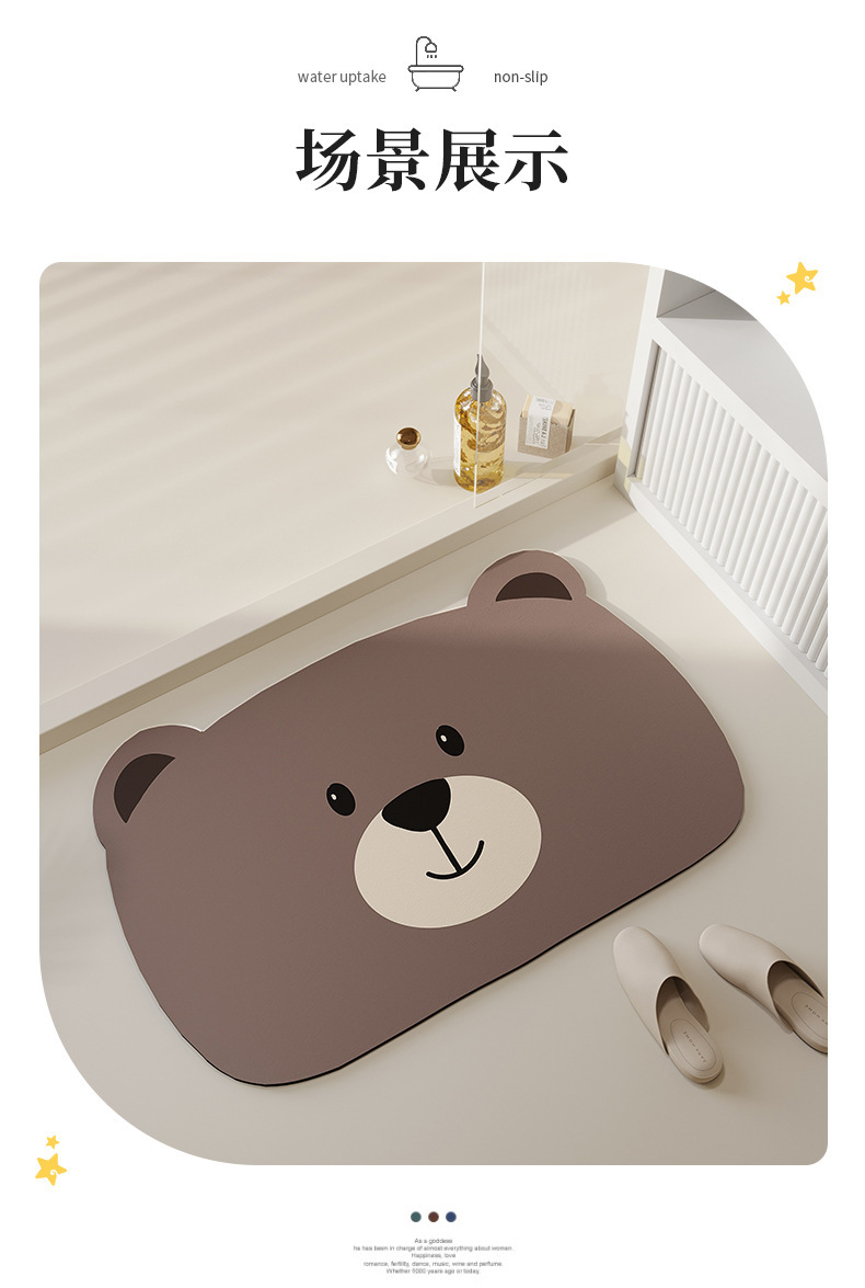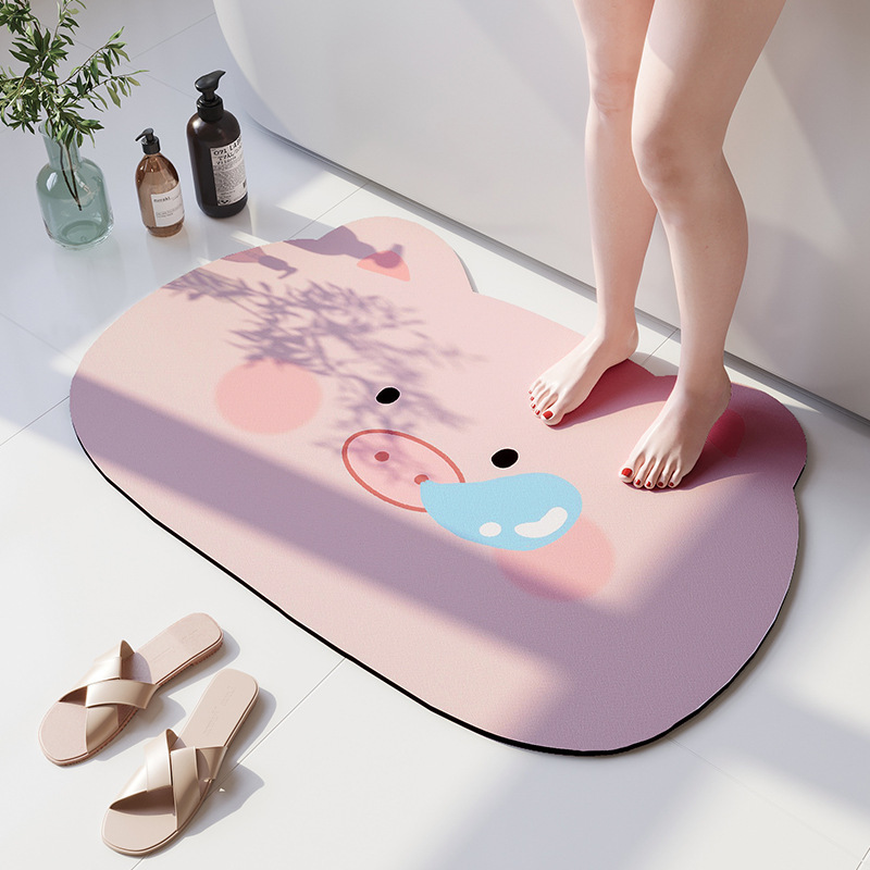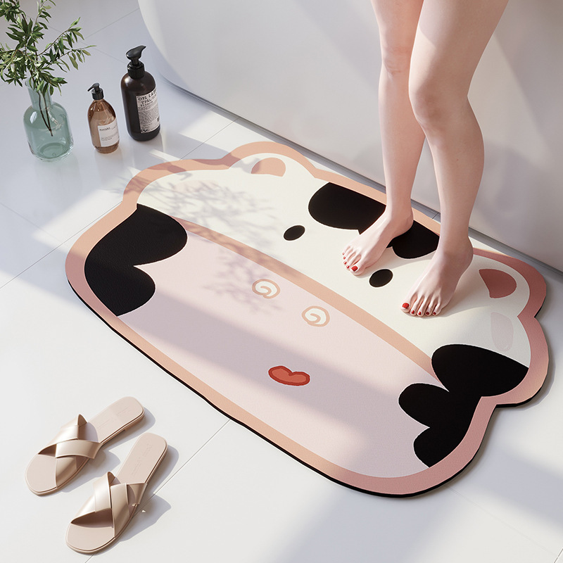 욕실 화장실 문 앞 흡수 매트 미끄럼 방지 속건 가정용 욕실 매트 만화 디자인 규조토 매트 배송 가능