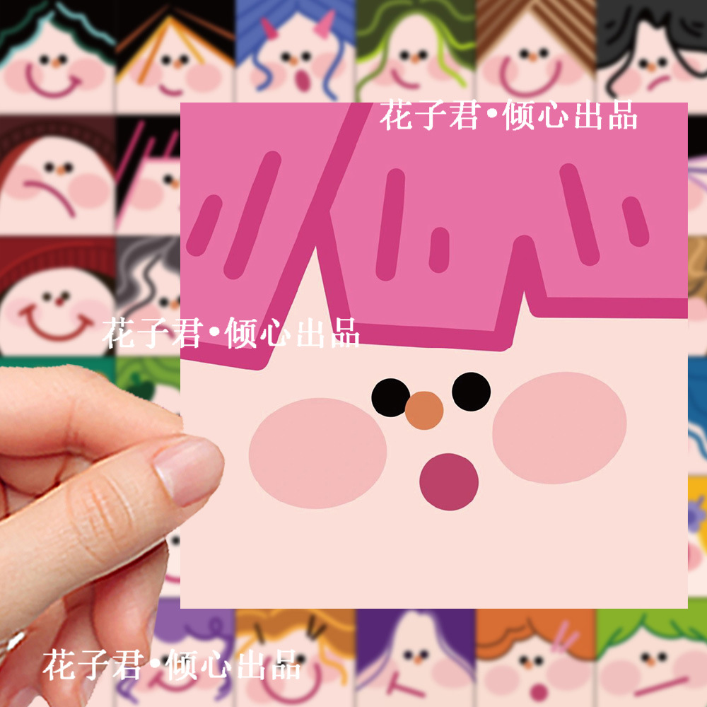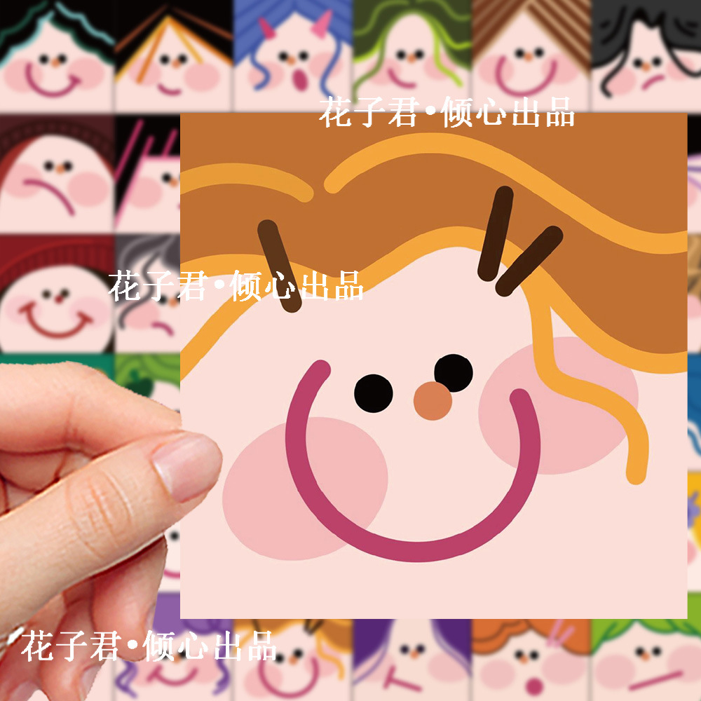 슈퍼 비용 효율적인 126 귀여운 도파민 사각형 얼굴 스티커 만화 창조적 인 재미 머리 낙서 배치스토어 가기