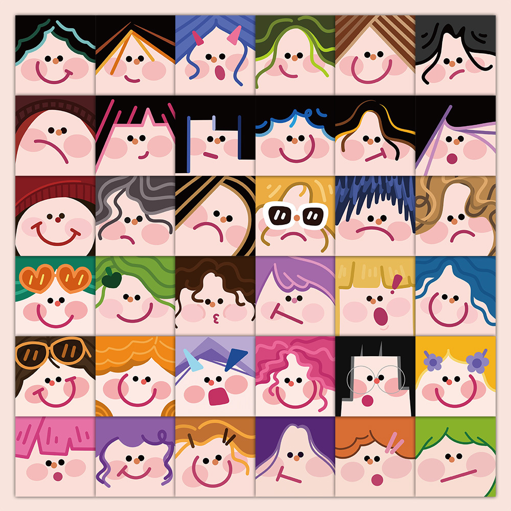 슈퍼 비용 효율적인 126 귀여운 도파민 사각형 얼굴 스티커 만화 창조적 인 재미 머리 낙서 배치