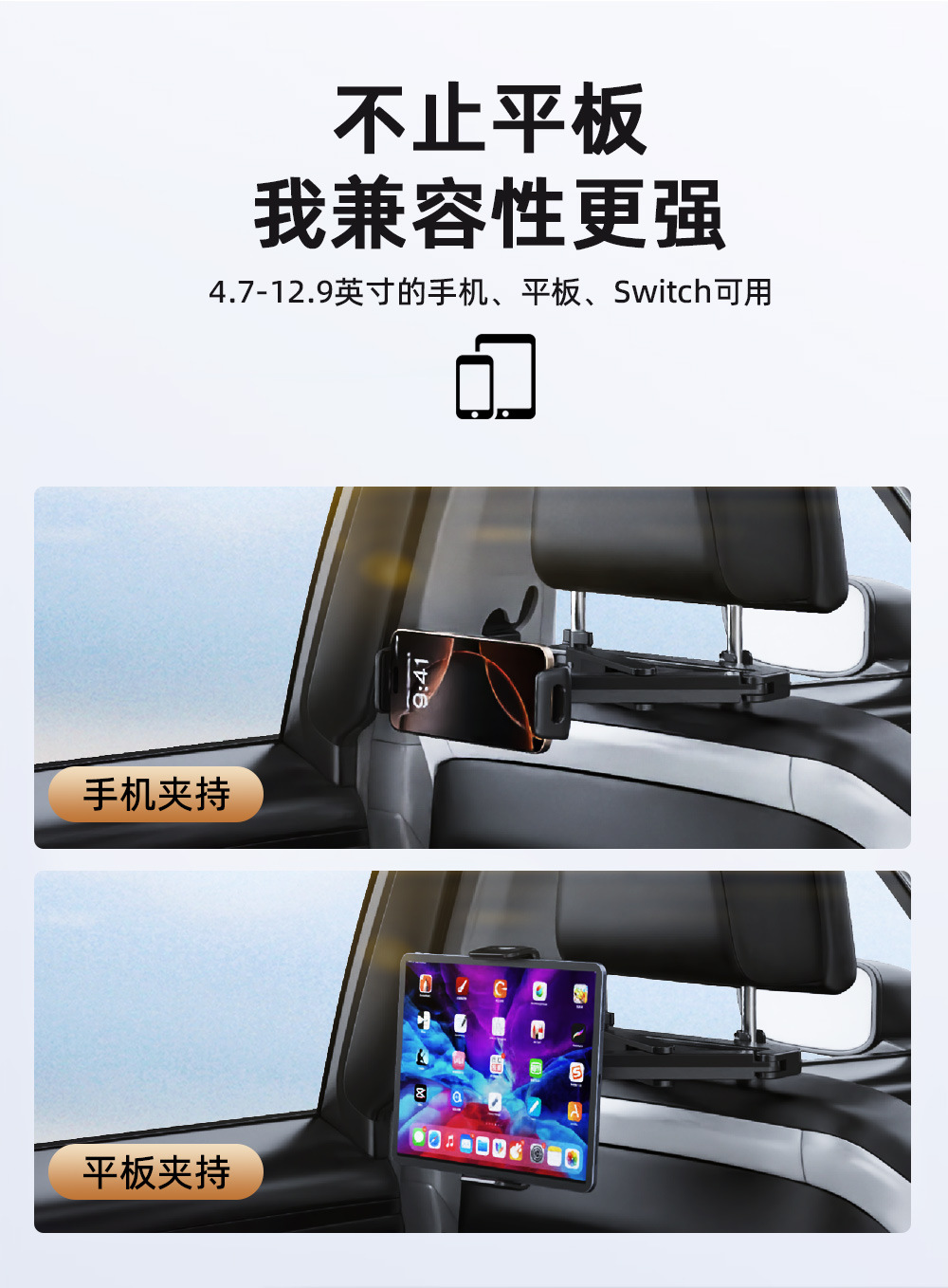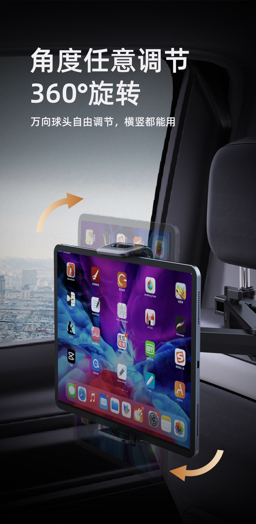 휴대용 자동차 머리 받침 브래킷 자동차 좌석 베개 게으른 태블릿 컴퓨터 브래킷 6-13 인치스토어 가기