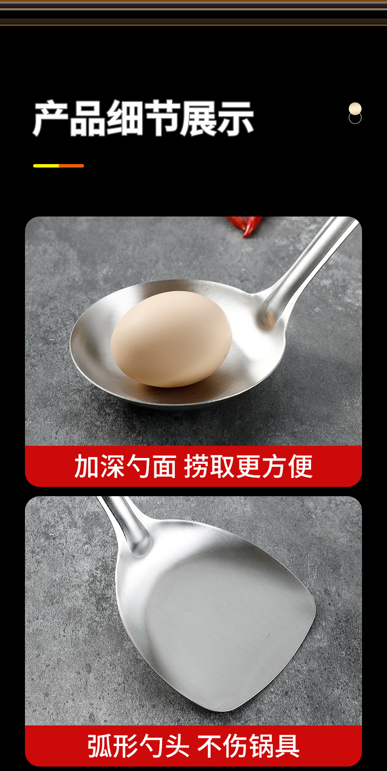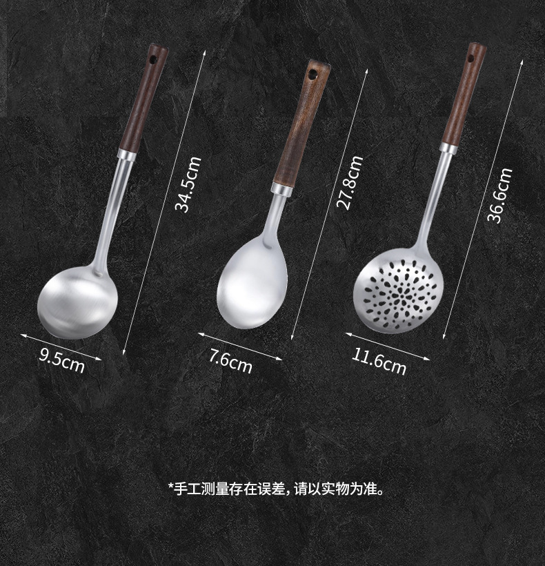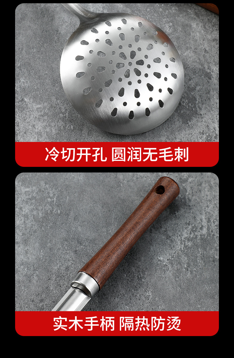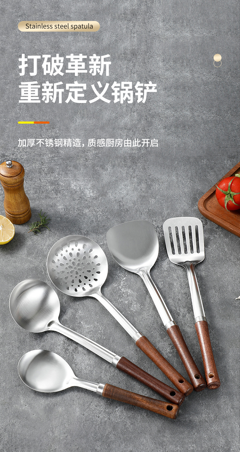 독일 주걱 스테인레스 스틸 두껍게 요리 주걱 죽 숟가락 소쿠리 가정용 주방 프라이팬 스푼 세트 철 주걱