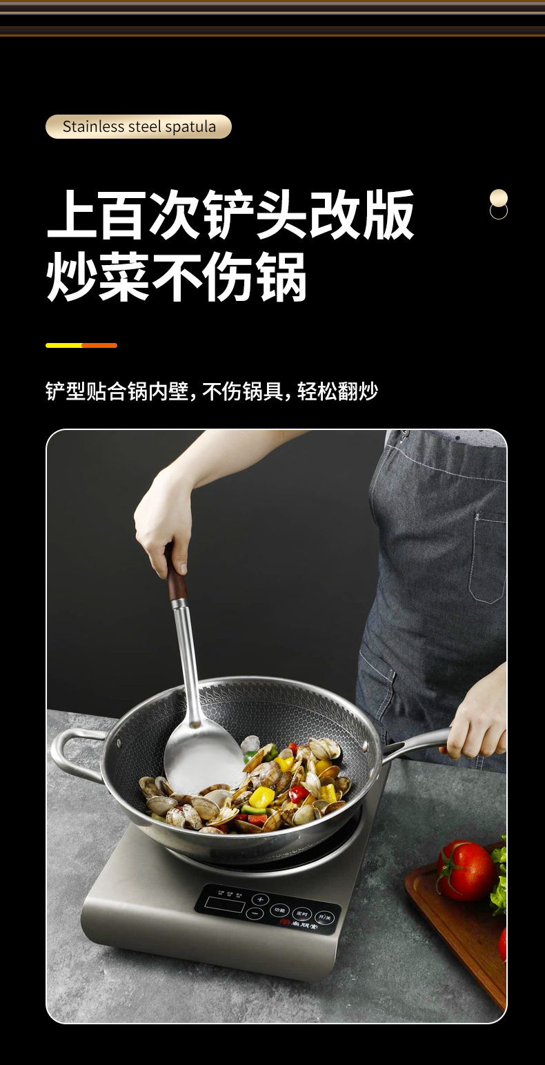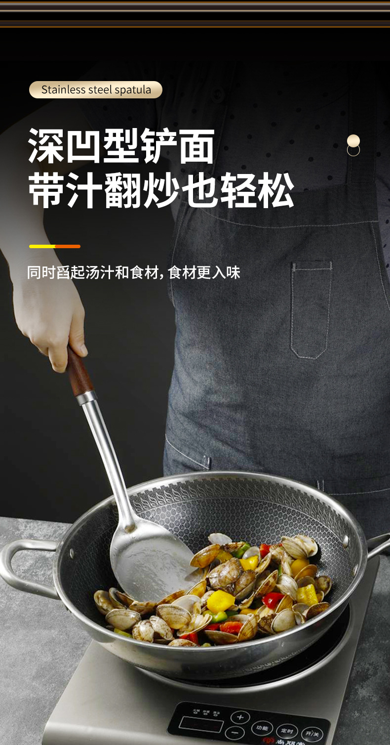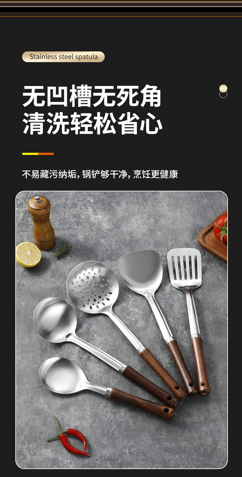 독일 주걱 스테인레스 스틸 두껍게 요리 주걱 죽 숟가락 소쿠리 가정용 주방 프라이팬 스푼 세트 철 주걱