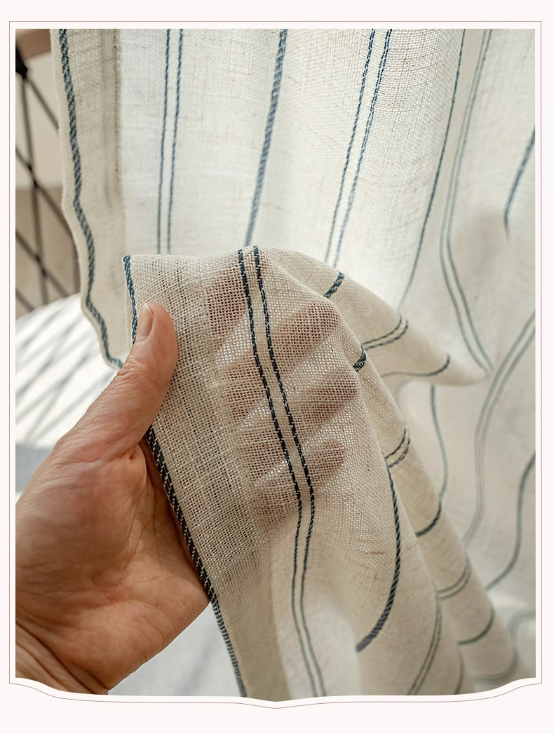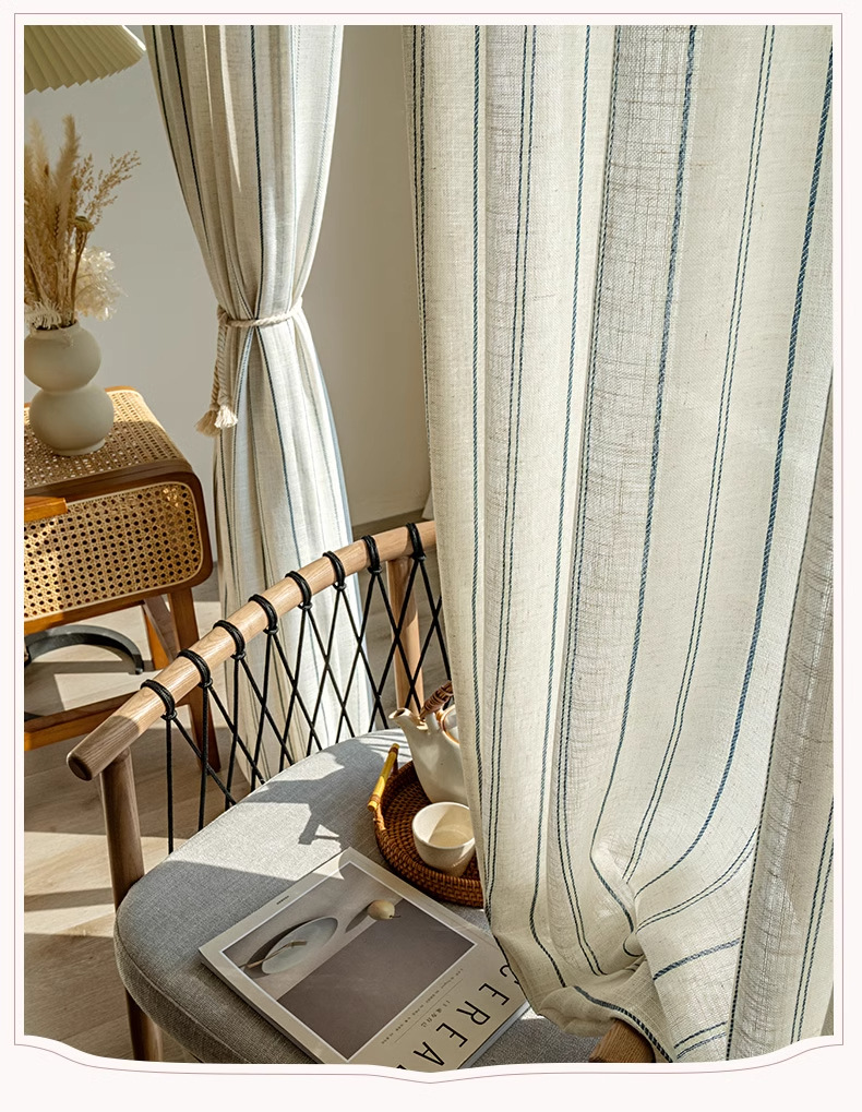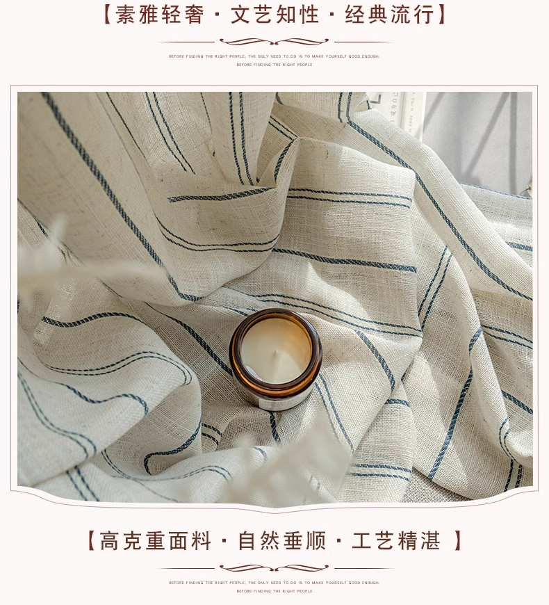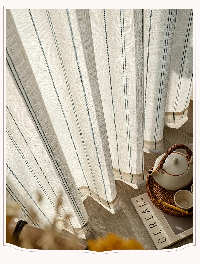 커튼 커튼 제조 업체 패브릭 도매 마감 국경 무역 창 화면 일본 아마 원사 로그 줄무늬 면사