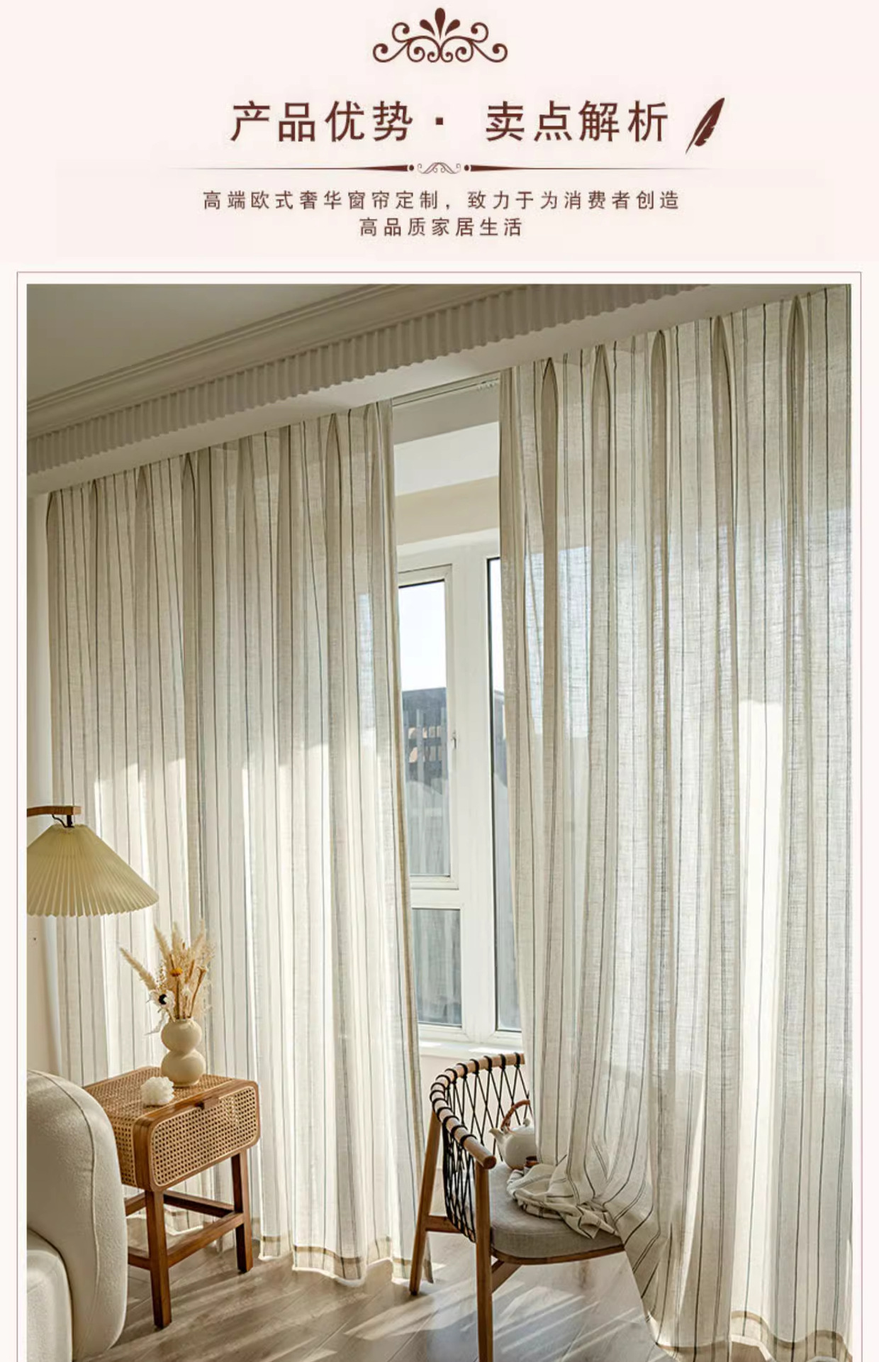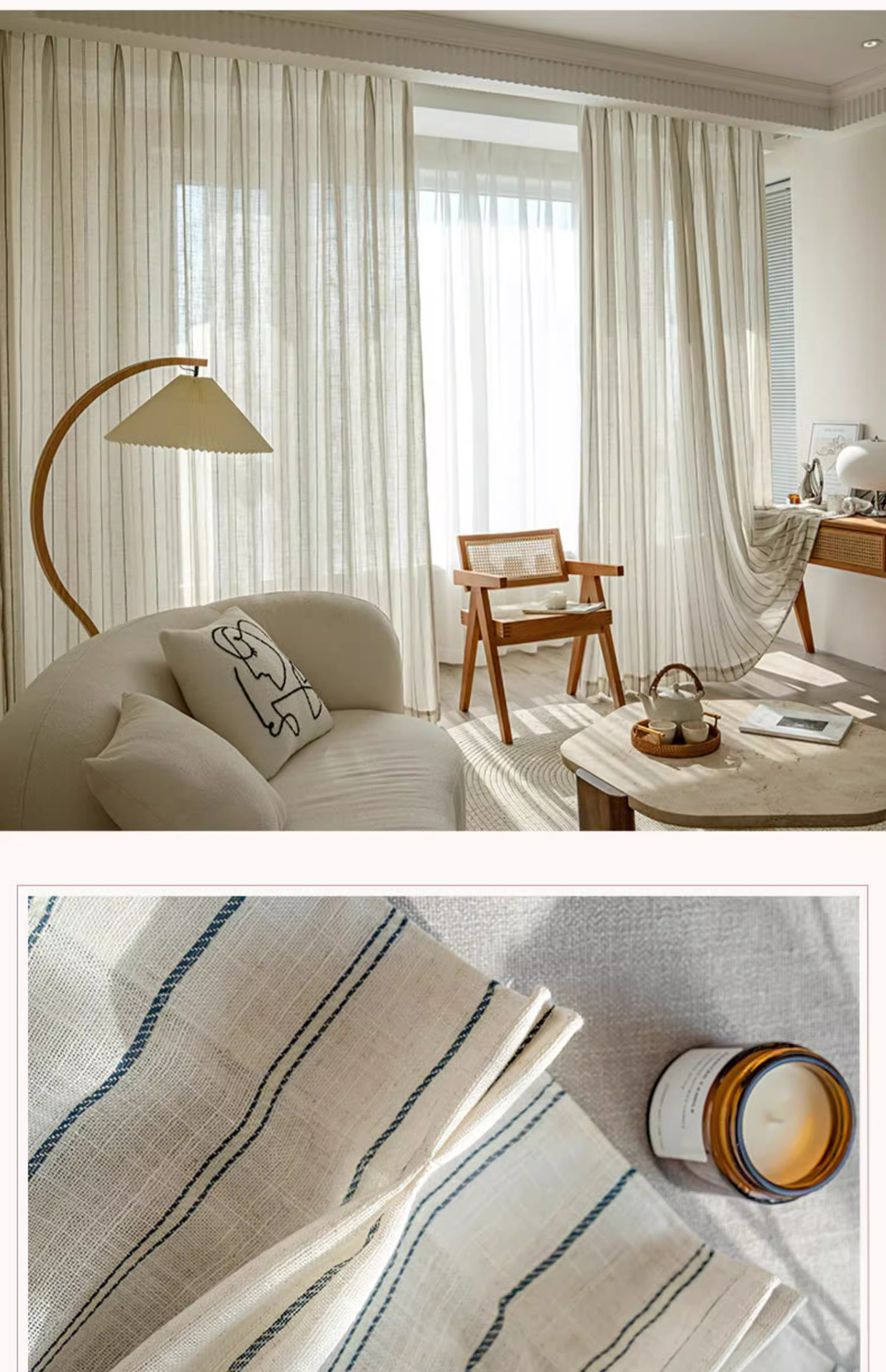 커튼 커튼 제조 업체 패브릭 도매 마감 국경 무역 창 화면 일본 아마 원사 로그 줄무늬 면사스토어 가기