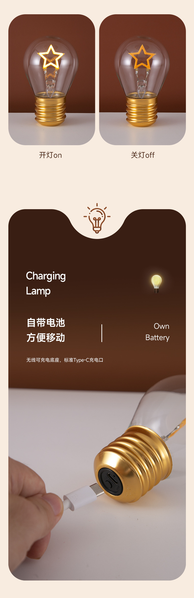 충전식 전구 usb-typec 인터페이스 휴대용 LED 야간 조명 축제 분위기 장식 조명 축제 분위기 조명