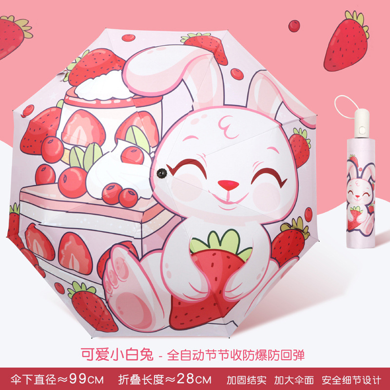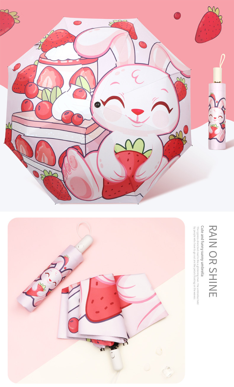 • 수동 - 비가 오나 눈이 오나 - 강화된 8본 대형 우산 표면 - 딸기 흰 토끼