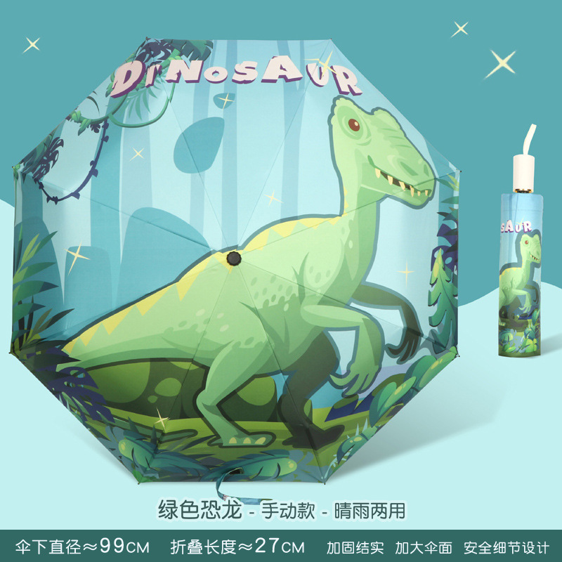 • 수동 - 비가 오나 눈이 오나 - 강화된 8본 대형 우산 표면 - 녹색 공룡