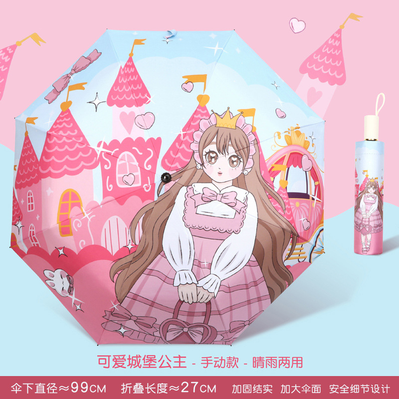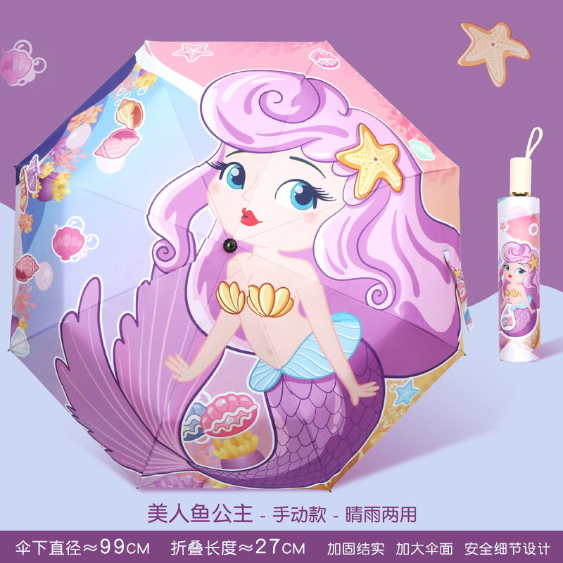 • 수동 - 비가 오나 눈이 오나 - 강화된 8본 대형 우산 표면 - 인어공주