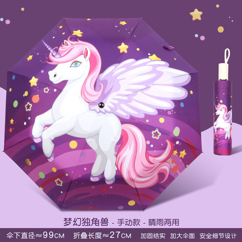 • 수동 - 비가 오나 눈이 오나 - 강화된 8본 대형 우산 표면 - 판타지 유니콘