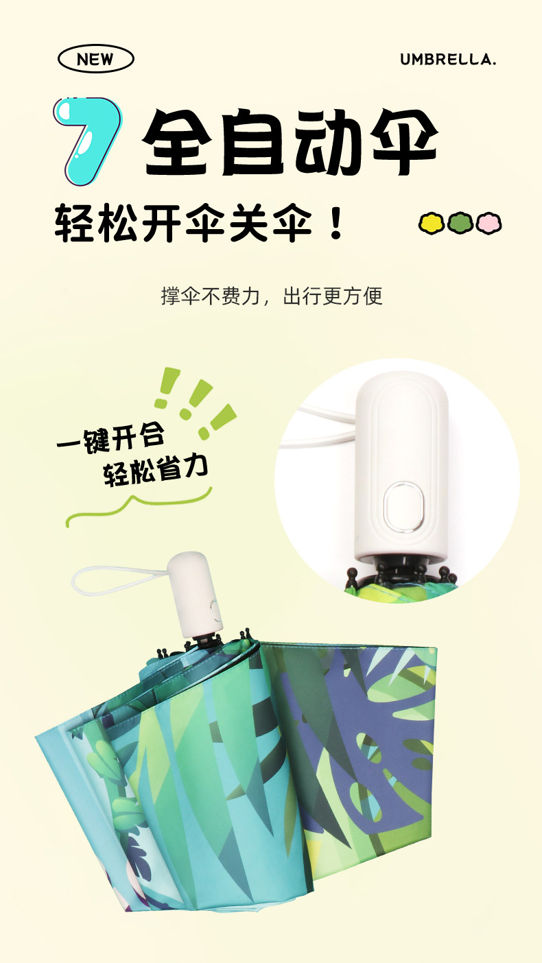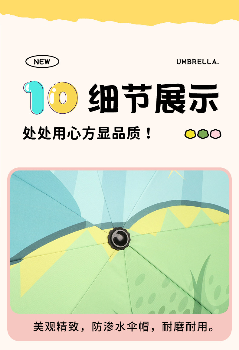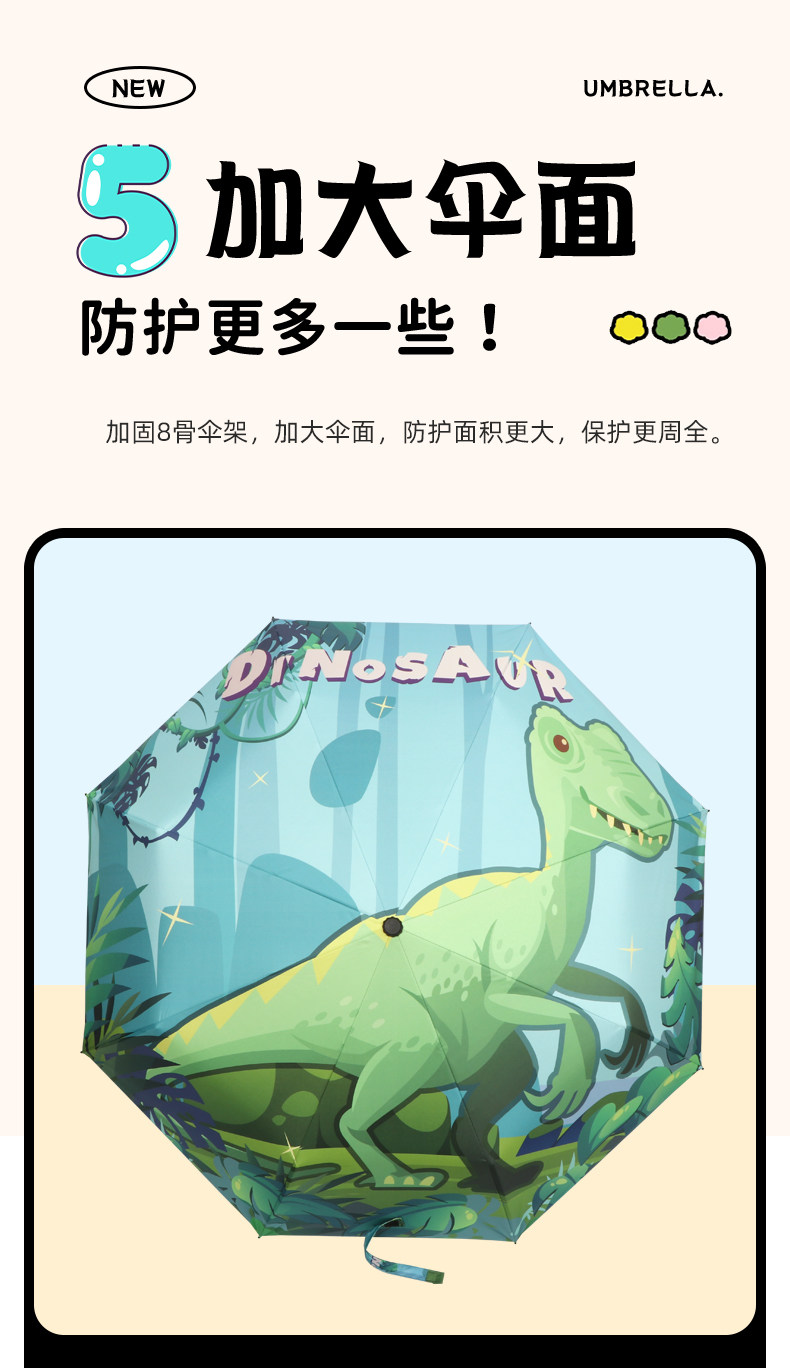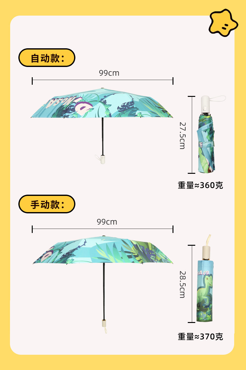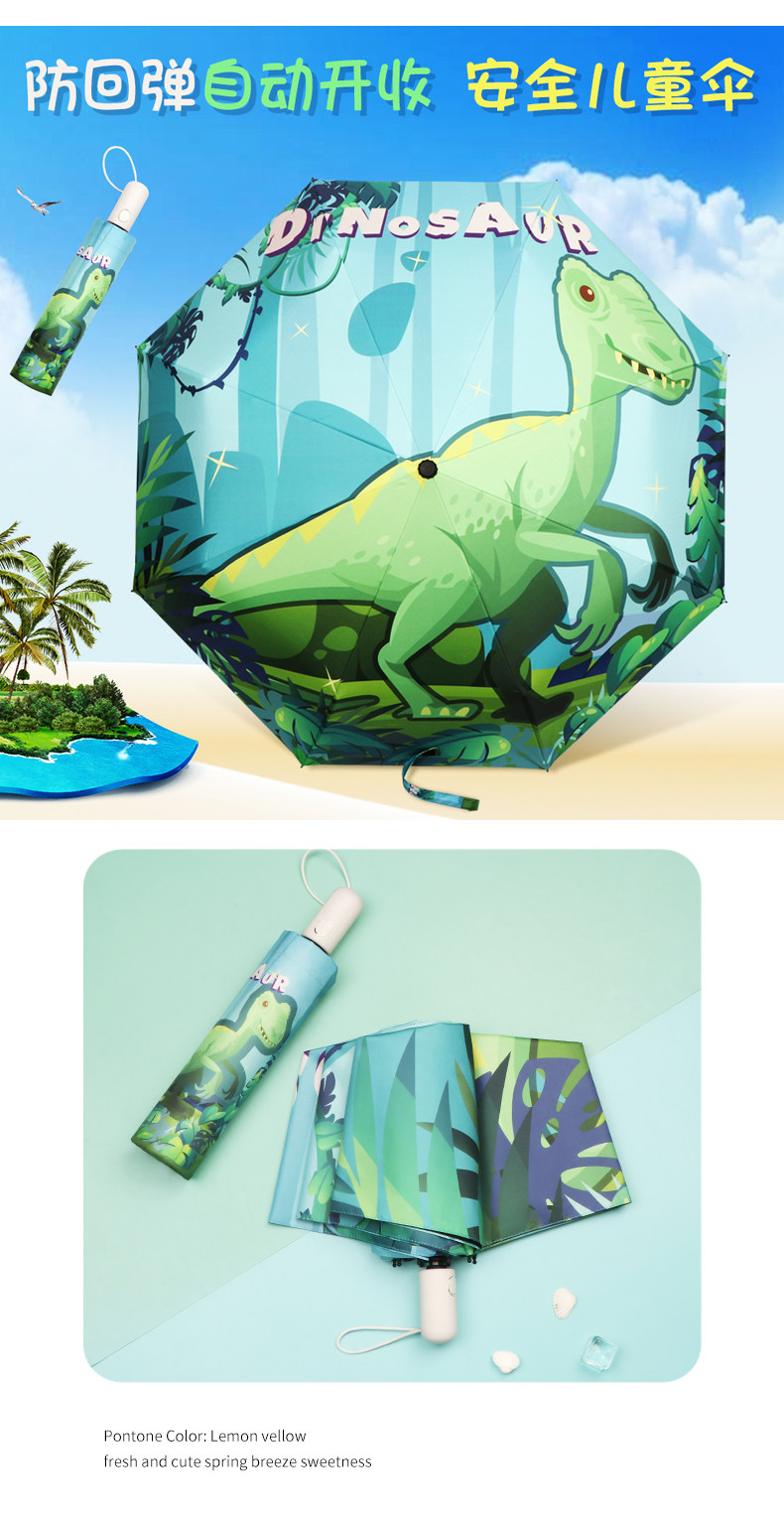 • 완전 자동 모델 - 안전 및 반동 방지 - 비가 오나 눈이 오나 사용 가능 - 강화된 8본 대형 우산 표면 - 녹색 공룡