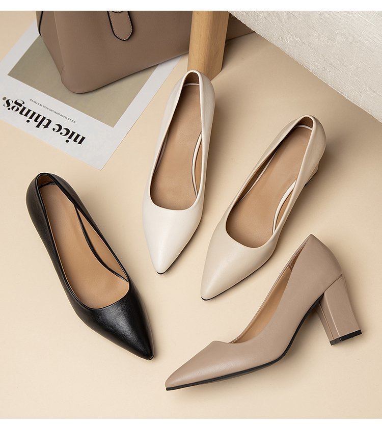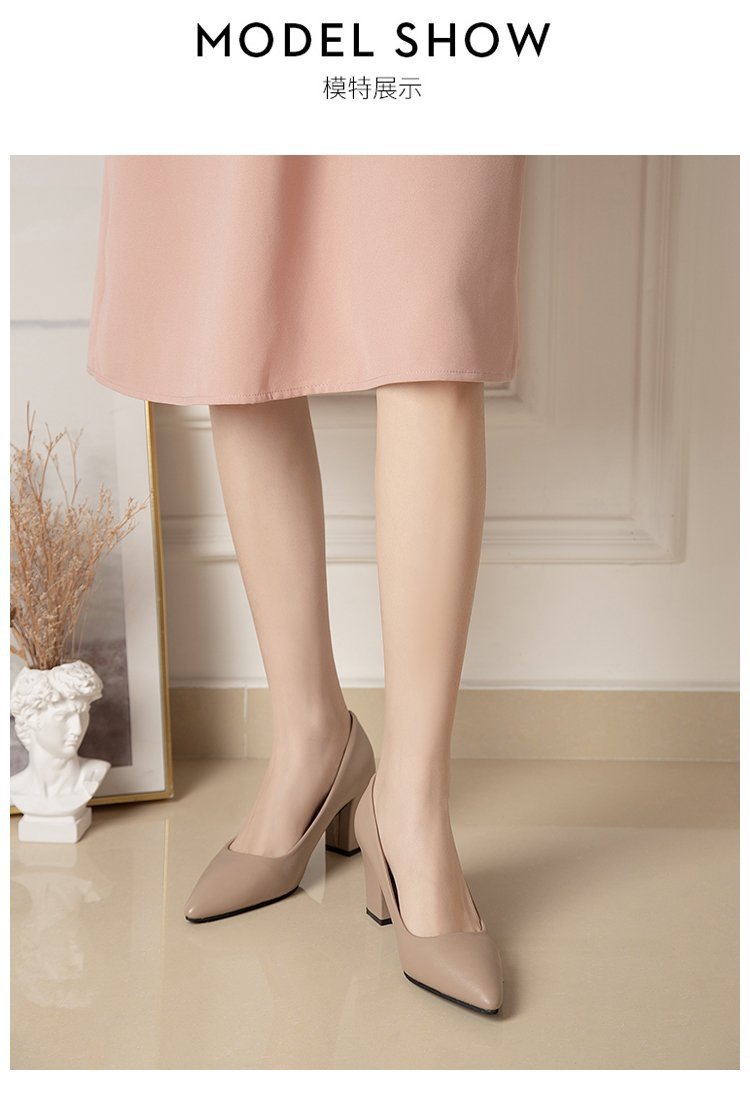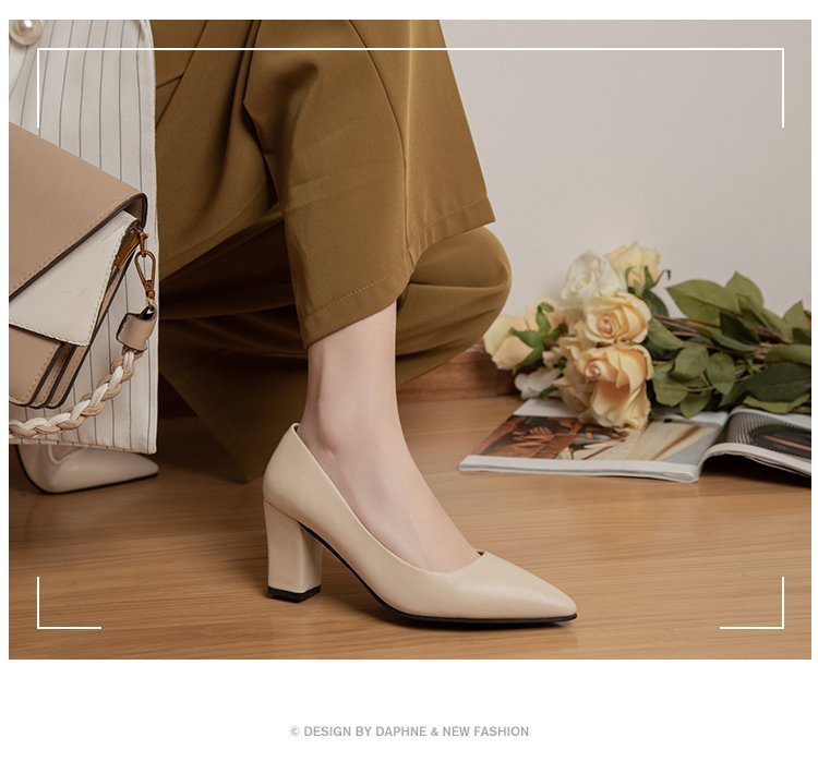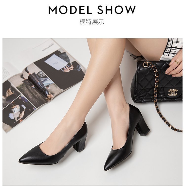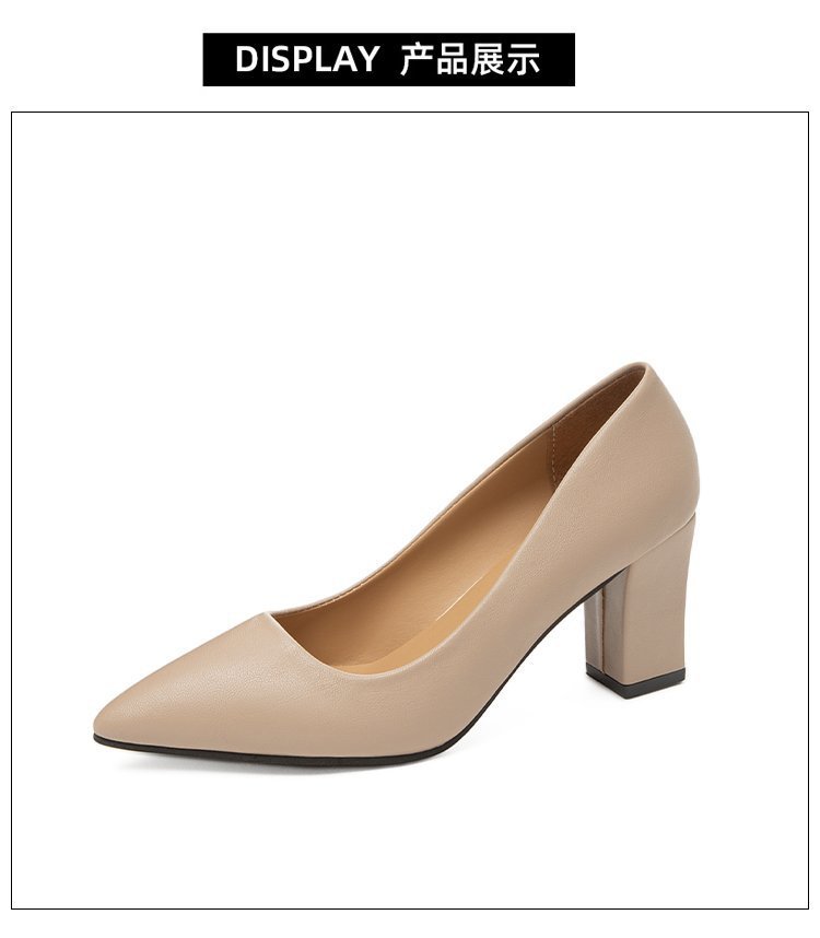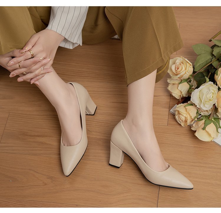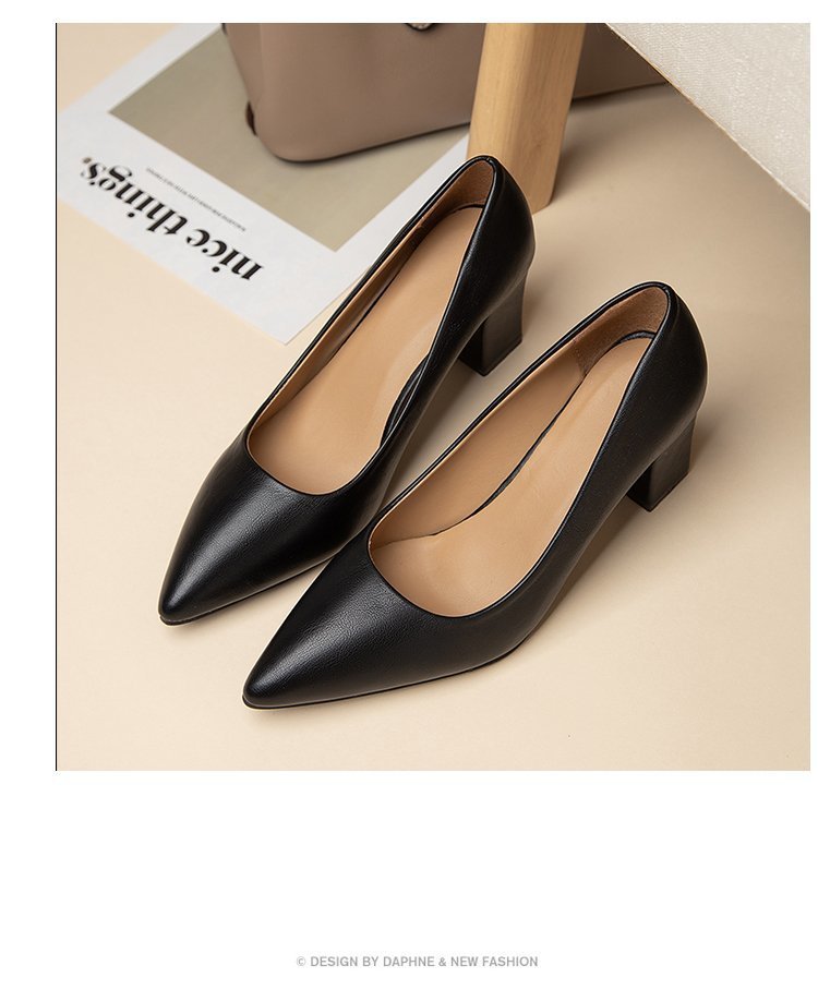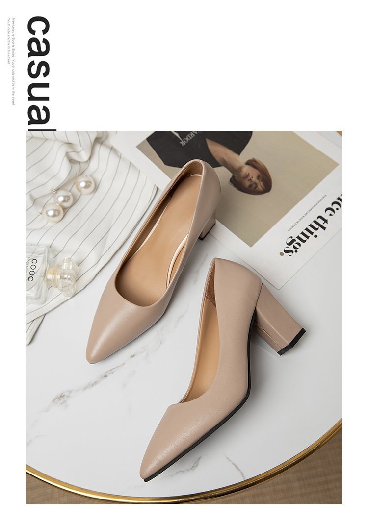 청키 힐 포인팅 힐 여성 편안한 작업 에티켓 사업 원피스 한국식 솔리드 컬러 가죽 신발 사계절 재고