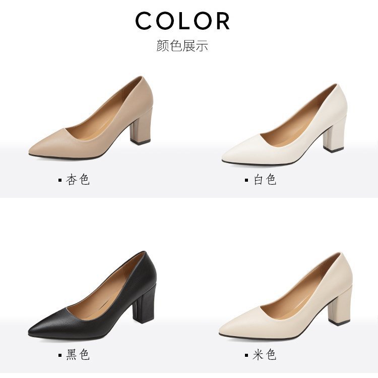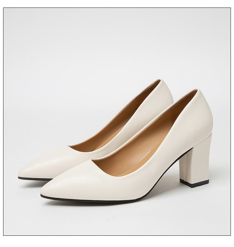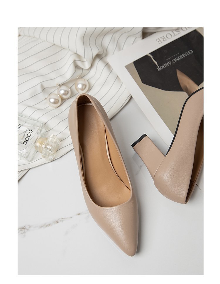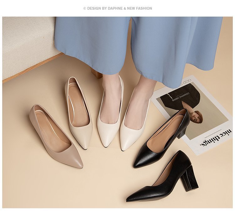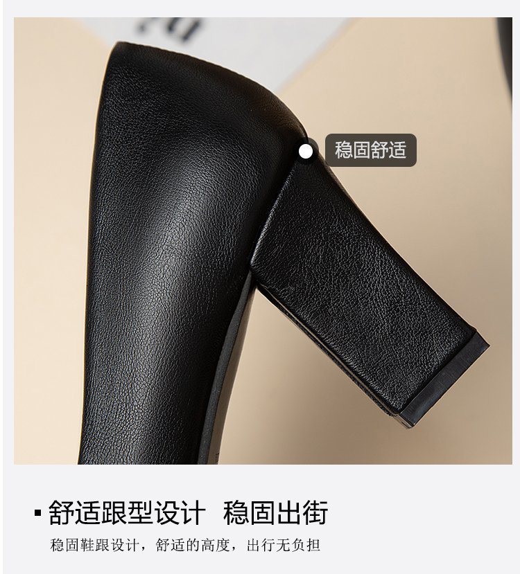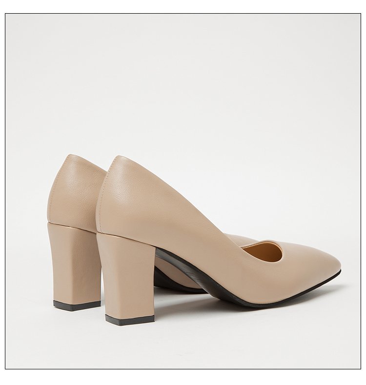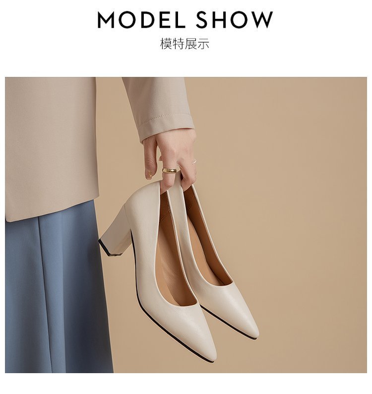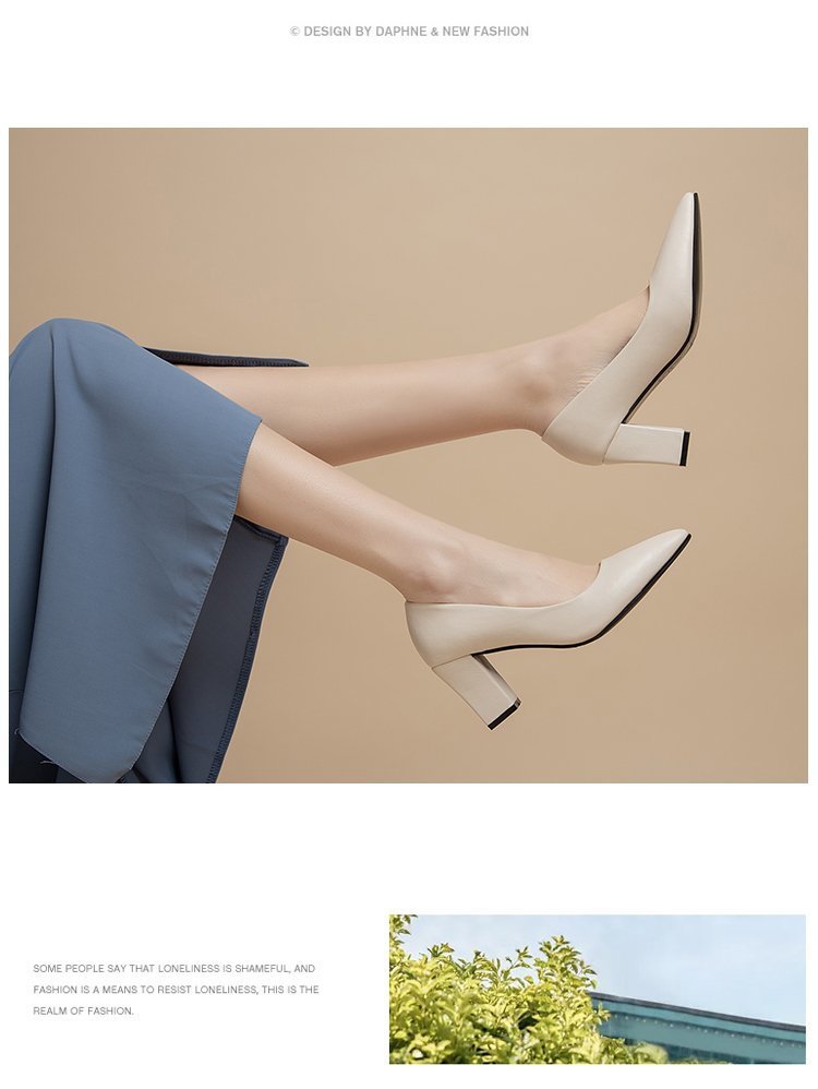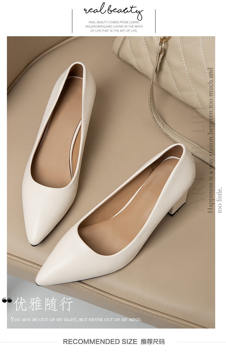 청키 힐 포인팅 힐 여성 편안한 작업 에티켓 사업 원피스 한국식 솔리드 컬러 가죽 신발 사계절 재고