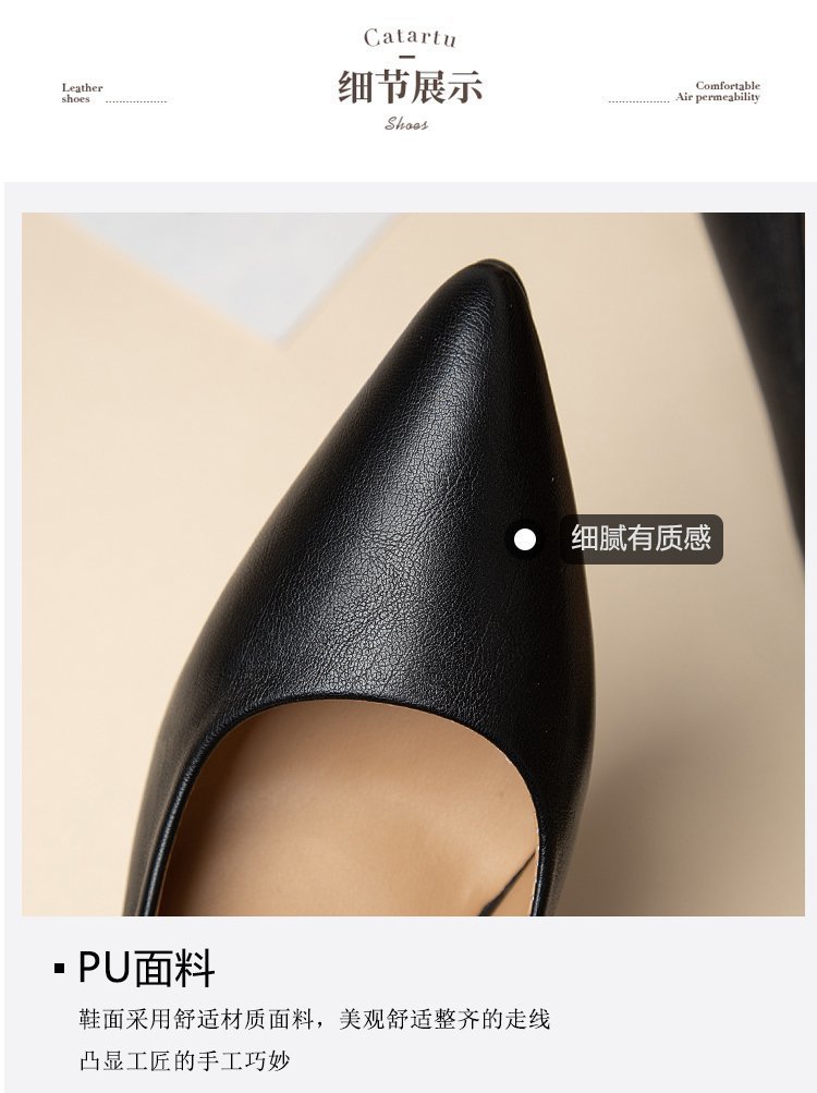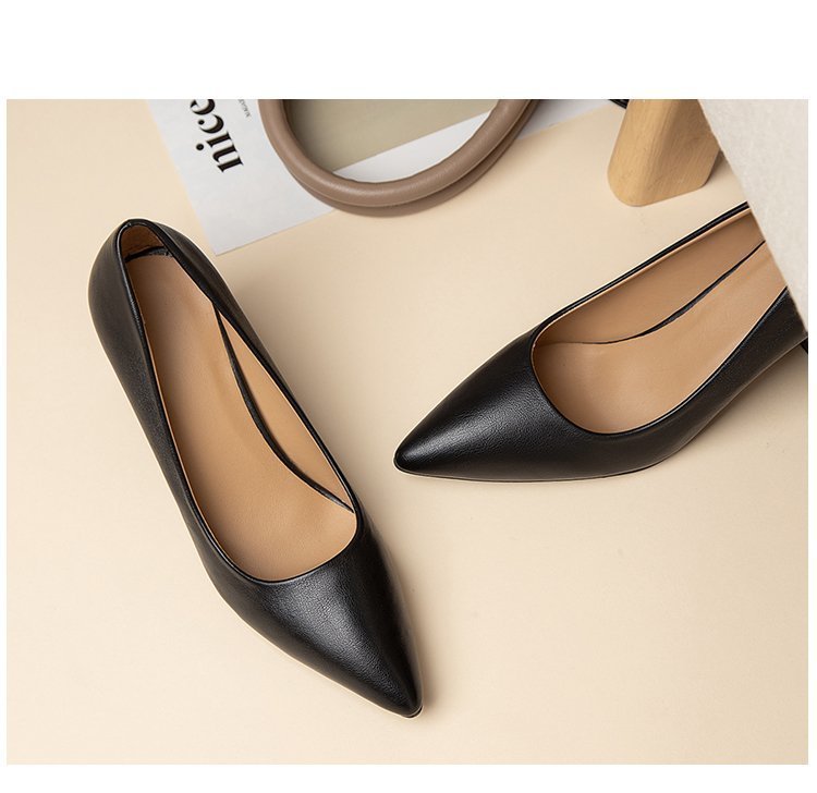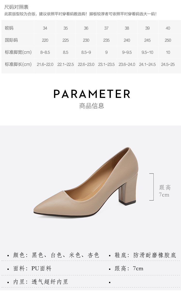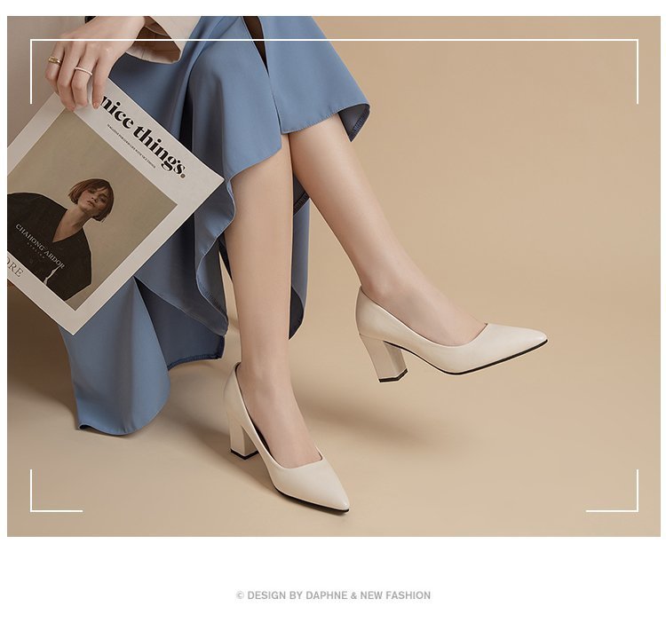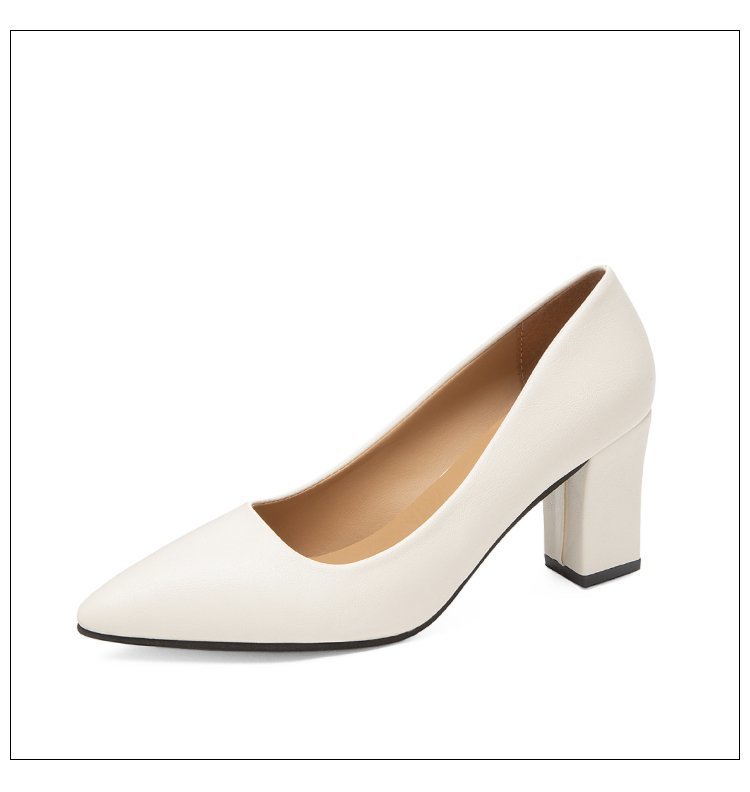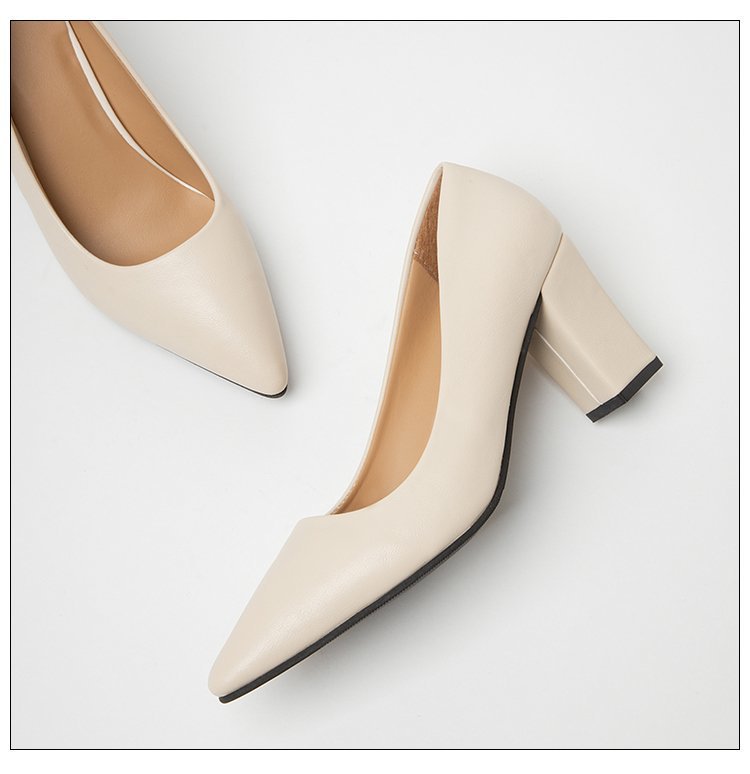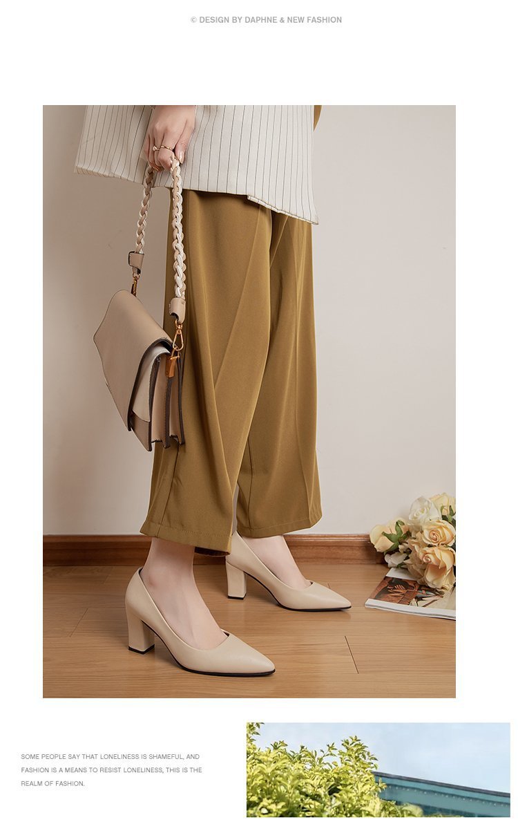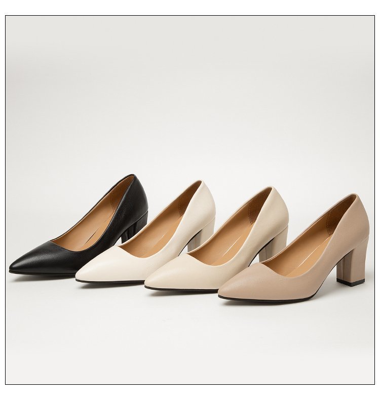 청키 힐 포인팅 힐 여성 편안한 작업 에티켓 사업 원피스 한국식 솔리드 컬러 가죽 신발 사계절 재고