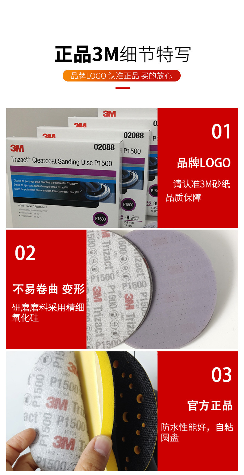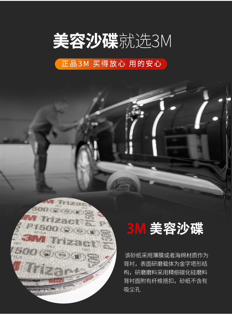 3M02088 플로킹 6inch 피라미드형 스폰지 사포 미용 연마 및 광택용 1500메쉬 자동차 도색 전용