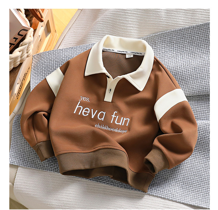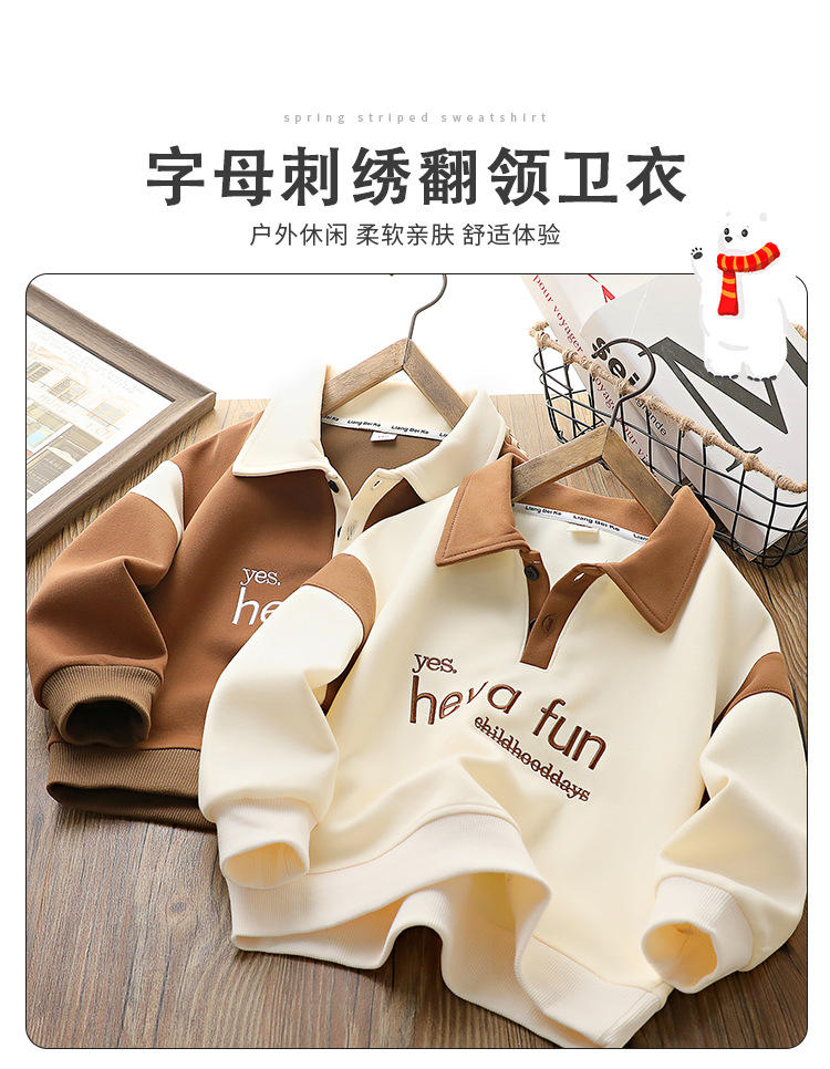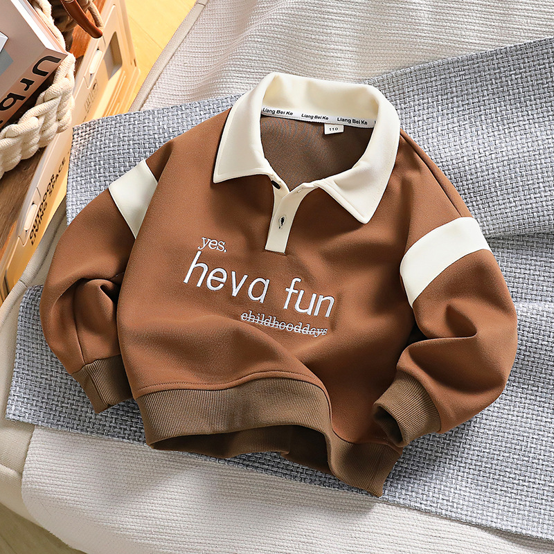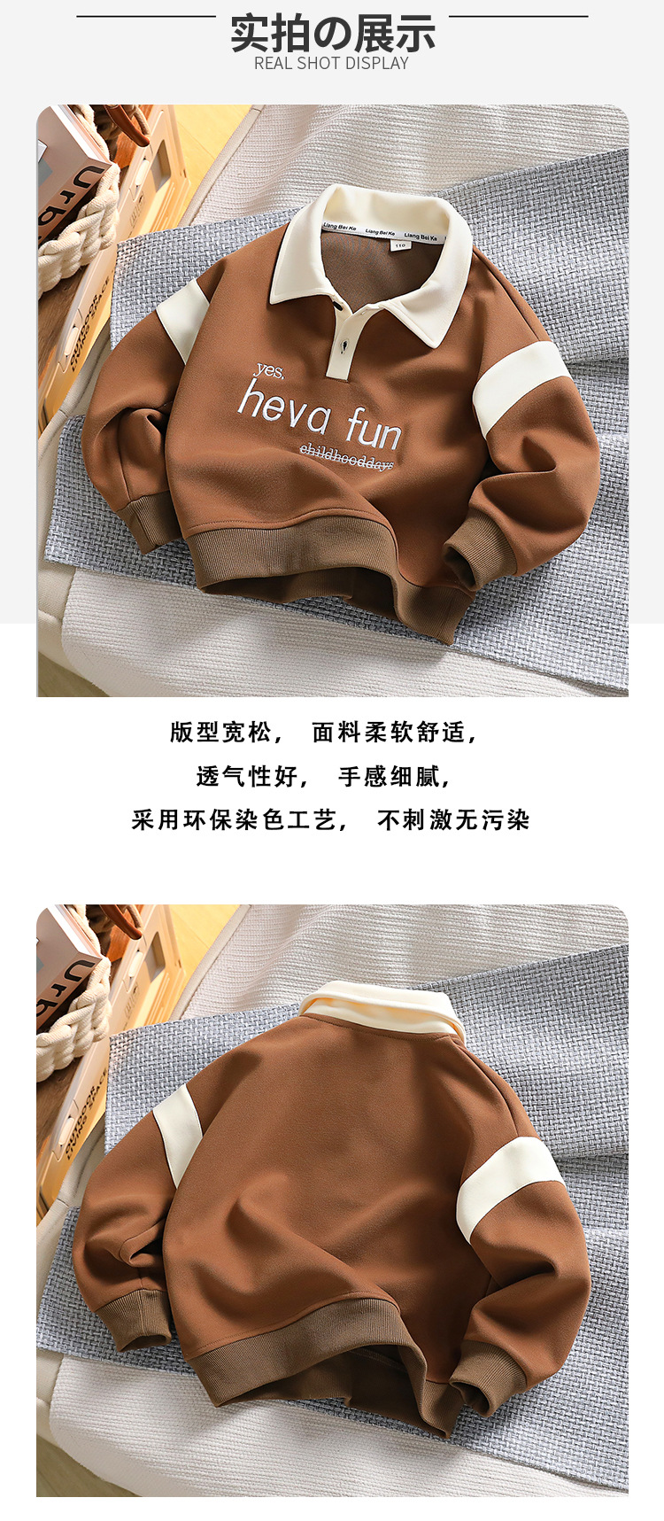 아동용 폴로 셔츠 2025 봄, 가을 신상 아동용 스웨트 셔츠 플러스 벨벳 따뜻한 남아용 라펠 탑 한국어 버전 중대형 아동용스토어 가기