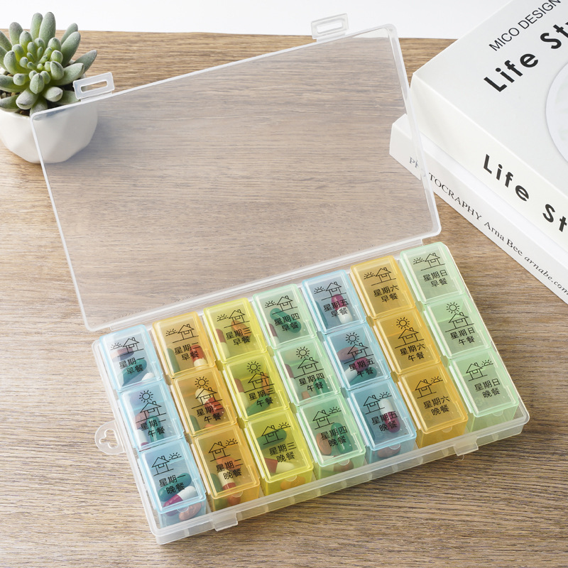 캡슐 포장 상자 밀봉 방습 주 3 끼 약 알림 저장 상자 분리 가능한 약 상자 휴대용 약 디스펜서