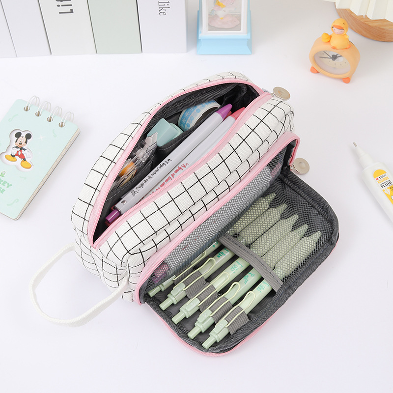 도매 10 층 프리즘 연필 가방 격자 무늬 국경 대용량 중학교 소년과 소녀 간단한 연필 케이스스토어 가기