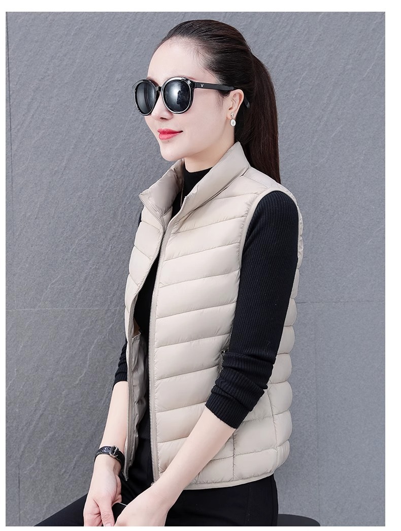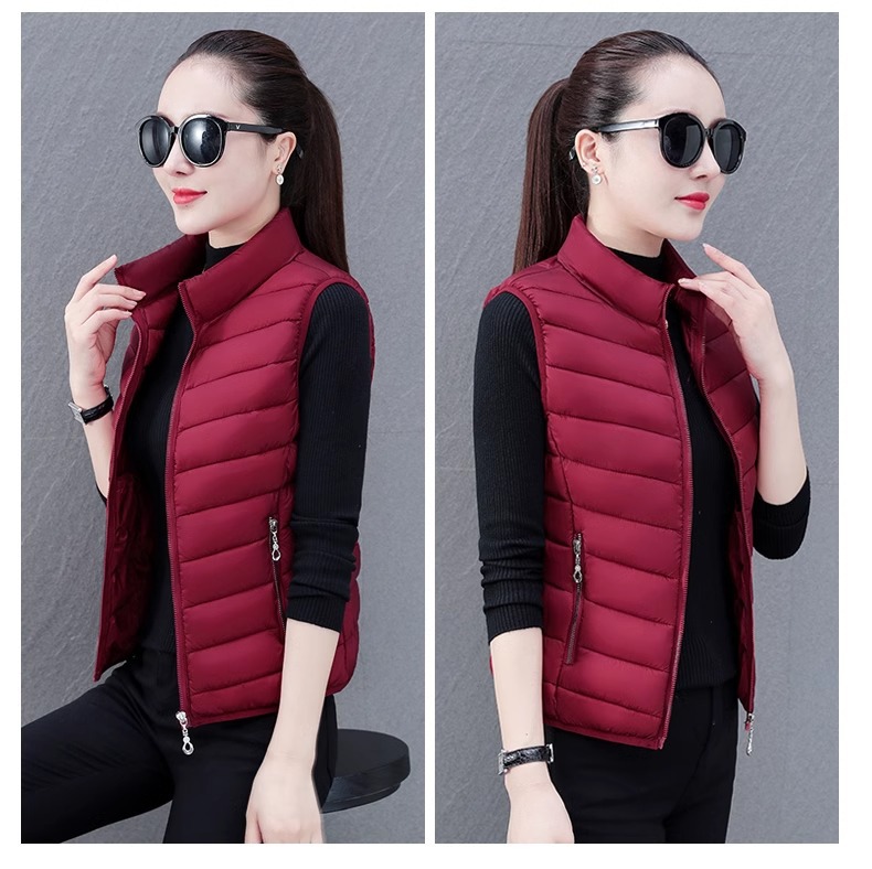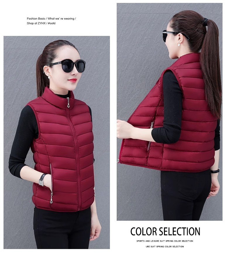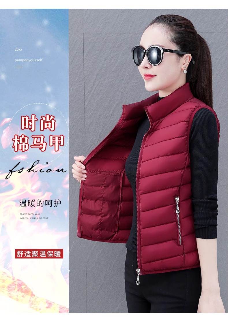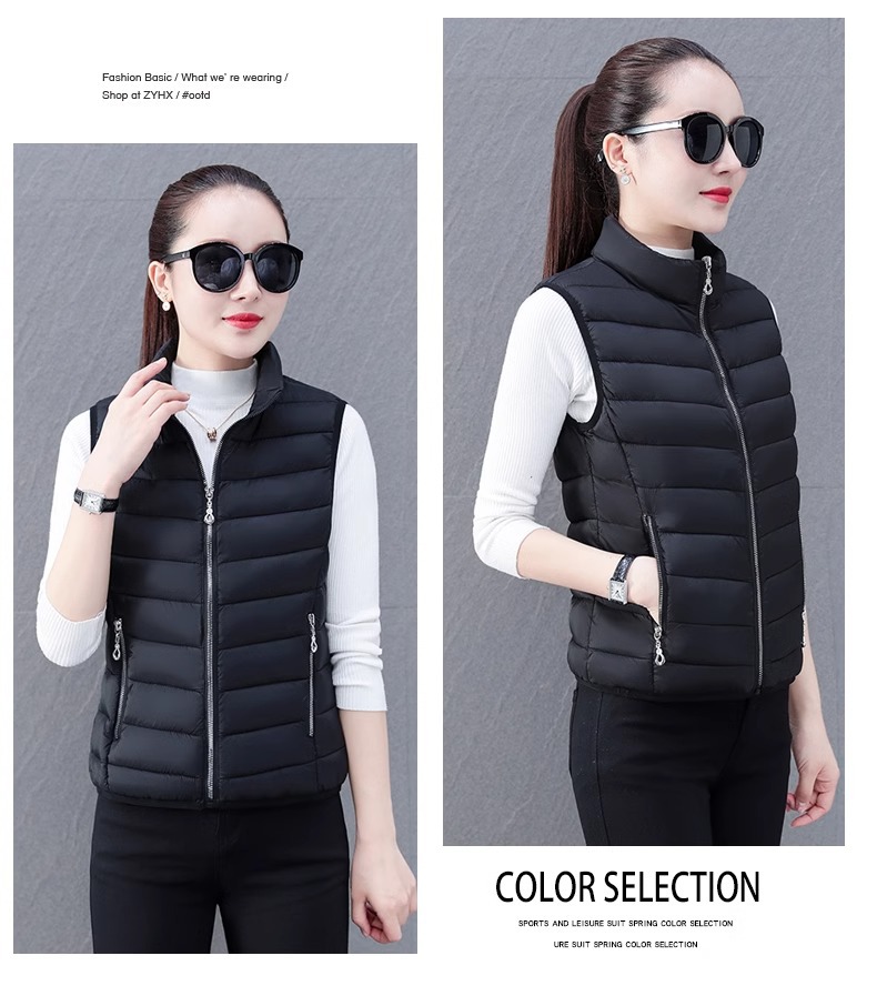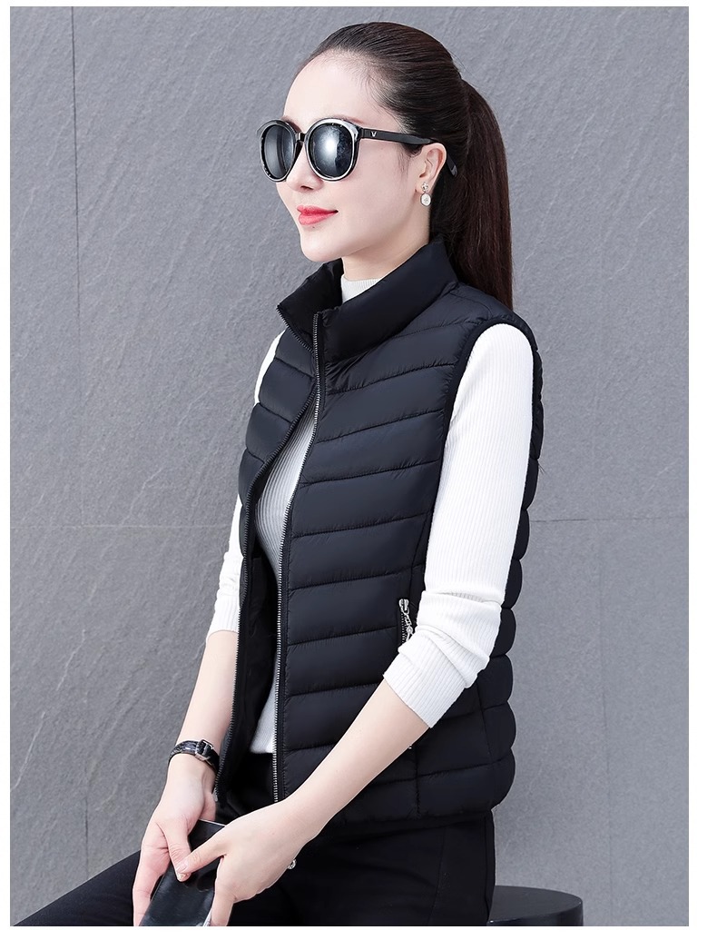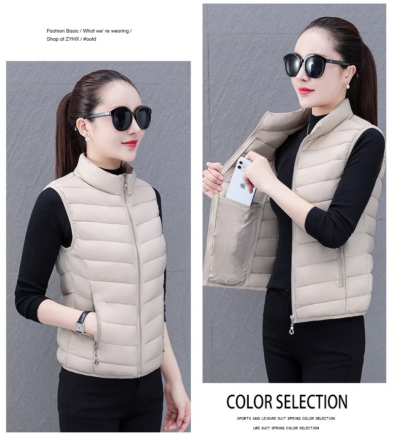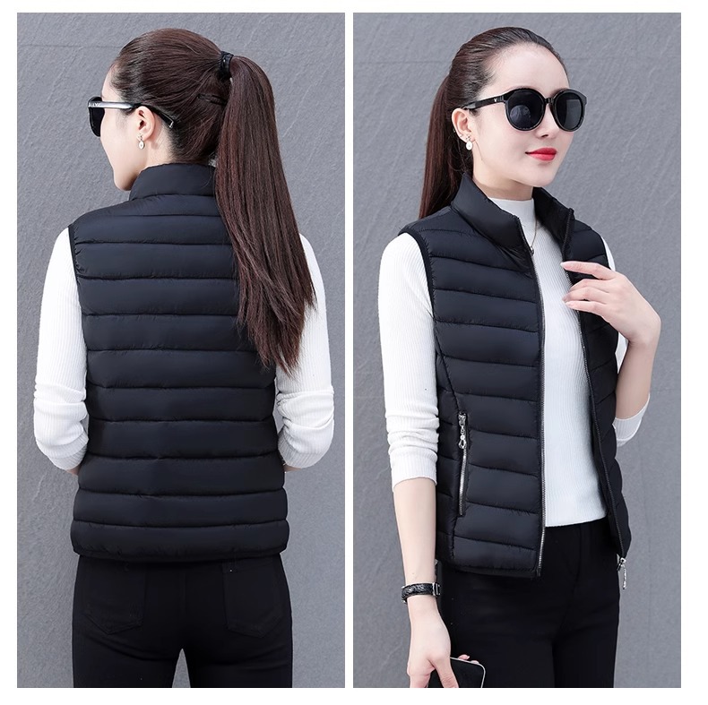 다운 코튼 조끼 여성의 짧은 2024 겨울 새로운 패션 내부 슬림 핏 웨어 칼라 외부 착용 조끼