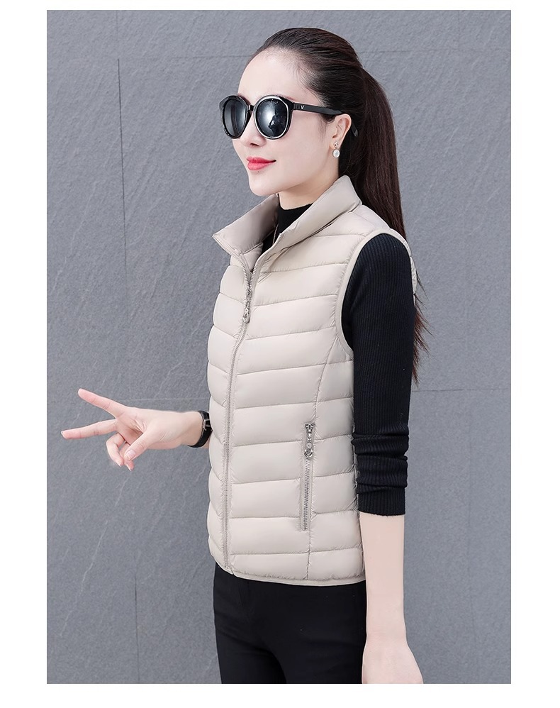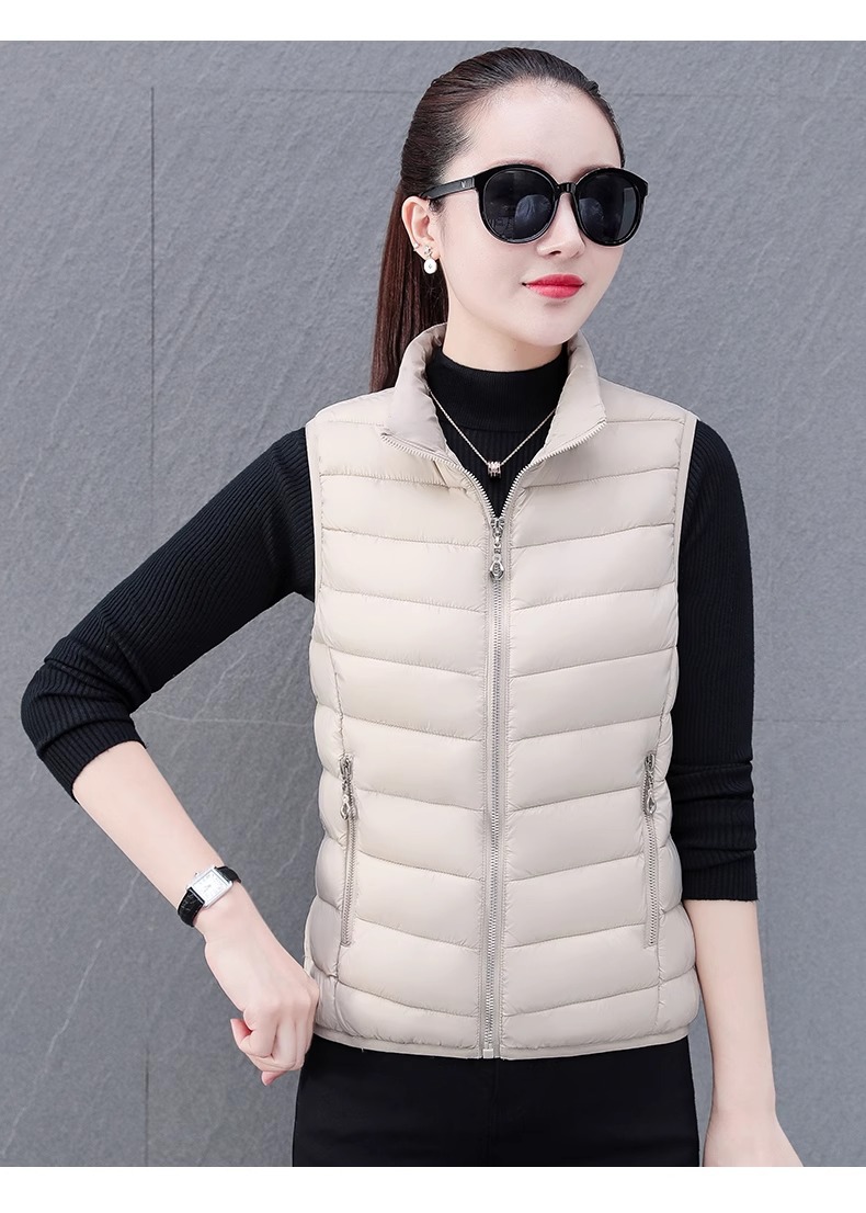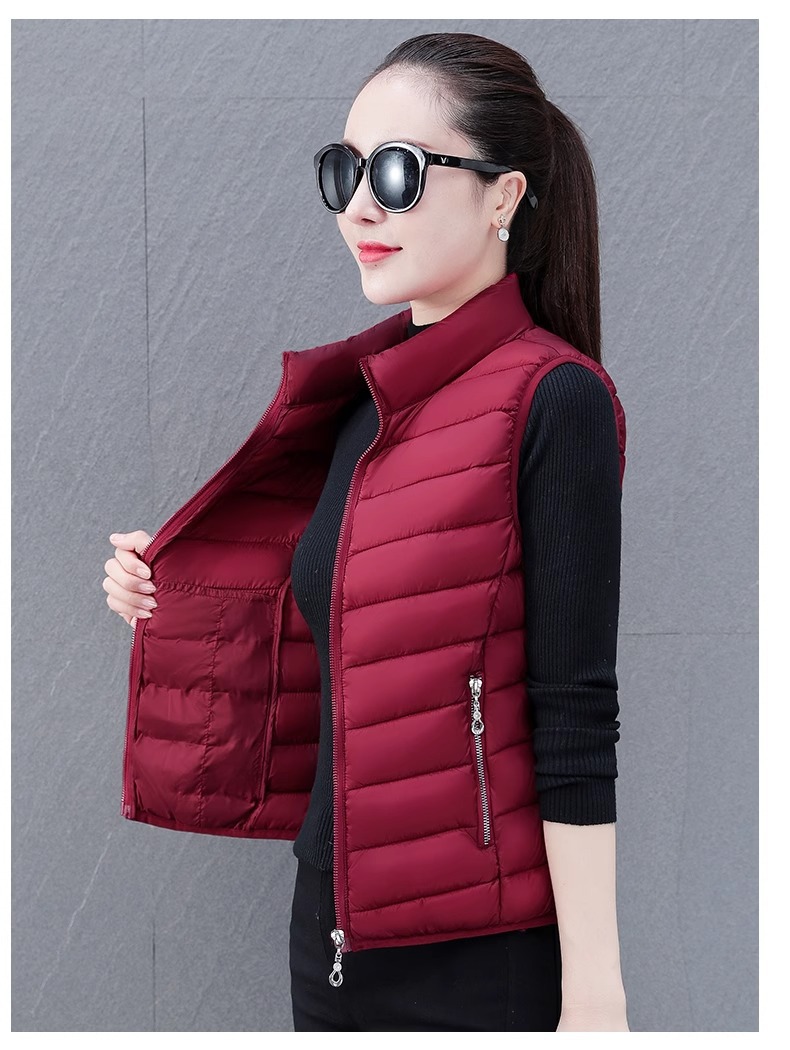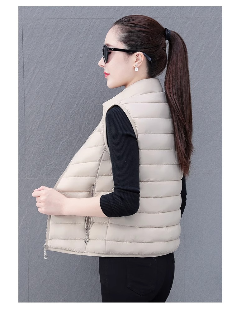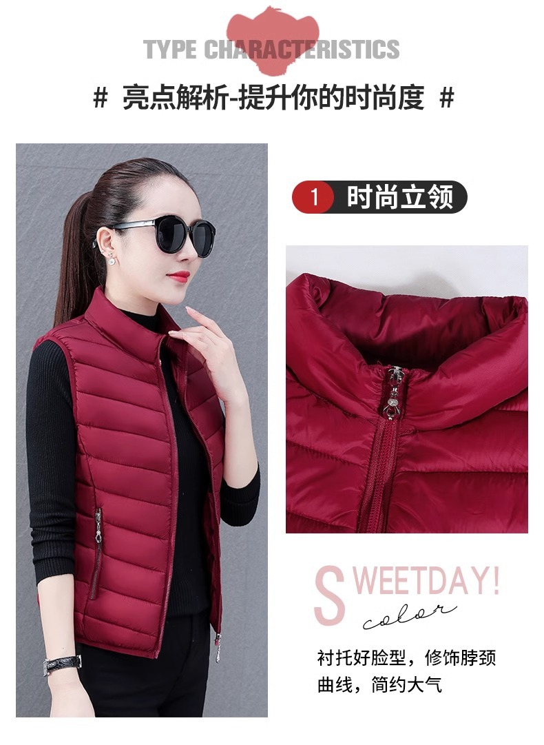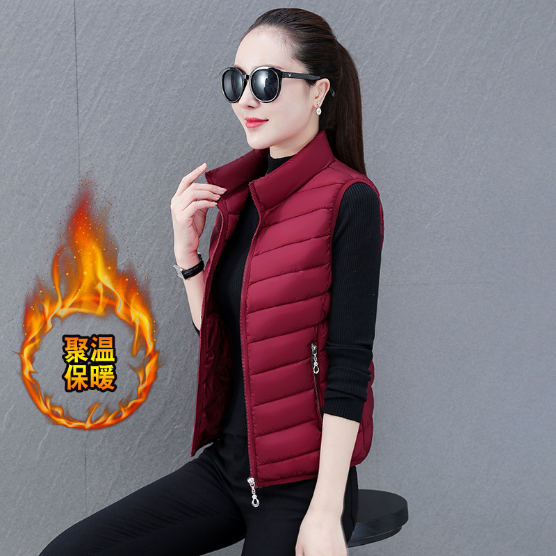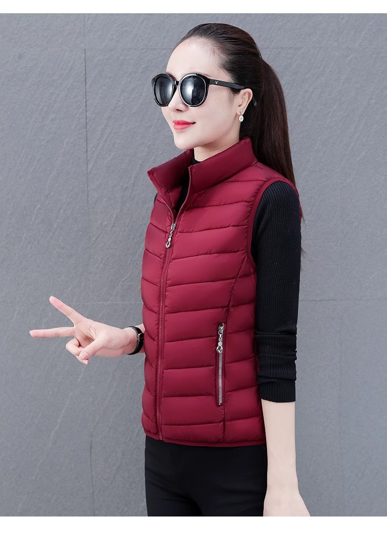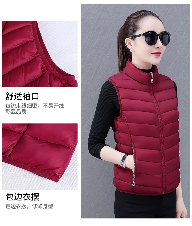 다운 코튼 조끼 여성의 짧은 2024 겨울 새로운 패션 내부 슬림 핏 웨어 칼라 외부 착용 조끼