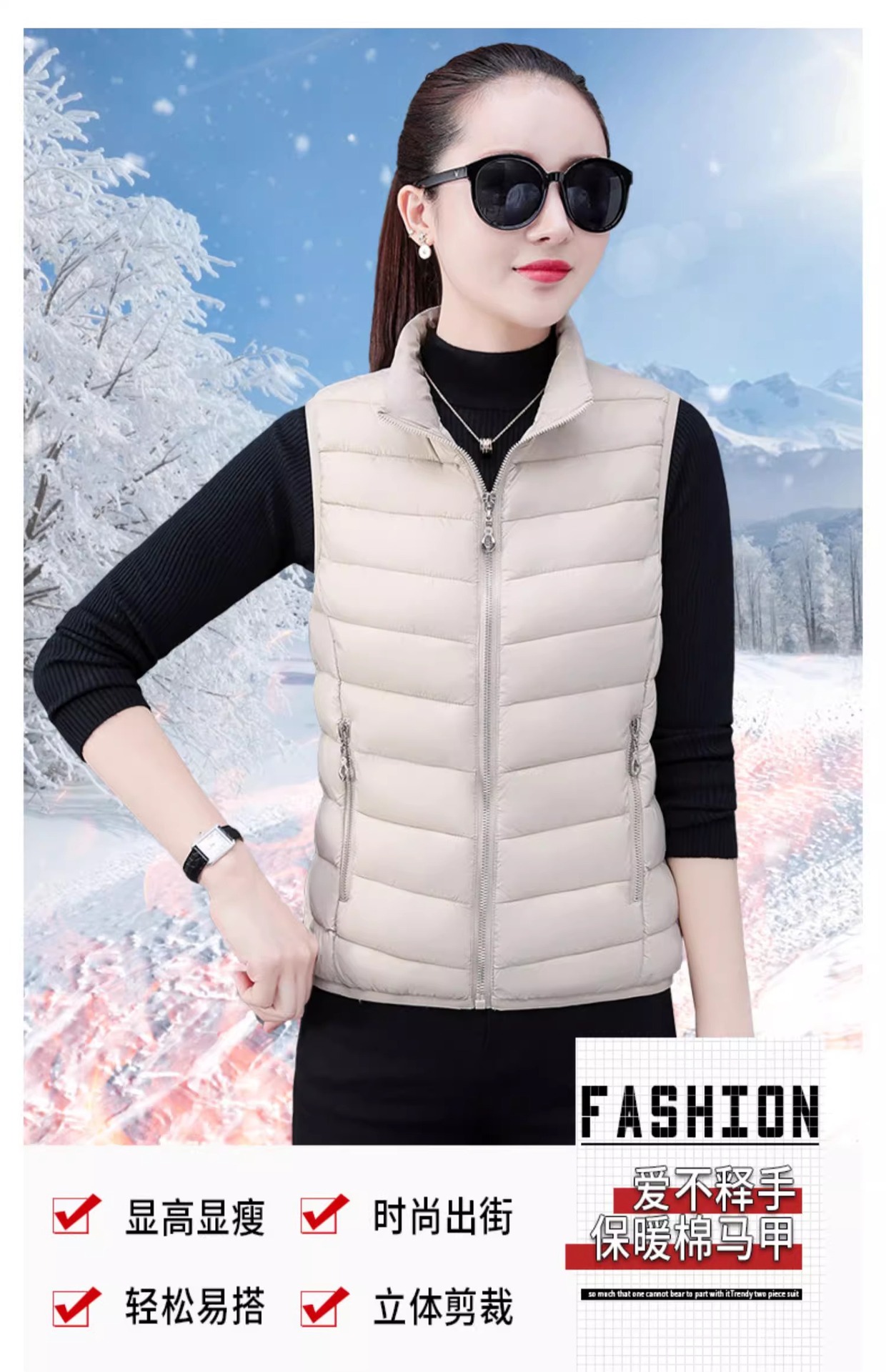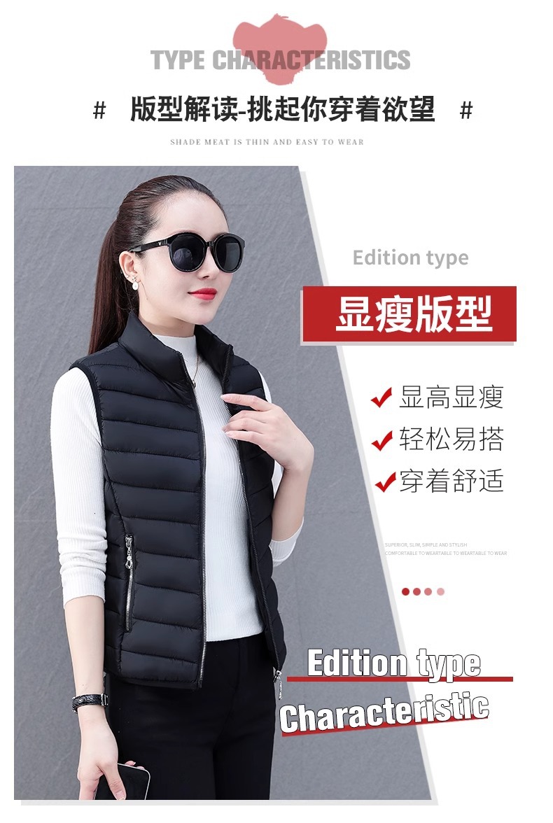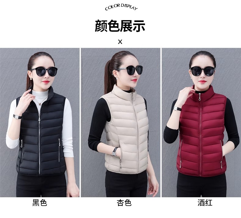 다운 코튼 조끼 여성의 짧은 2024 겨울 새로운 패션 내부 슬림 핏 웨어 칼라 외부 착용 조끼스토어 가기