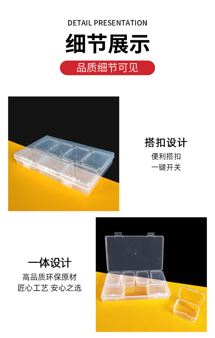 상자 7 투명 pp 플라스틱 분류 상자 화재 옻칠 왁스 곡물 콩 포장 상자 직사각형 저장 상자의 새로운 세트스토어 가기