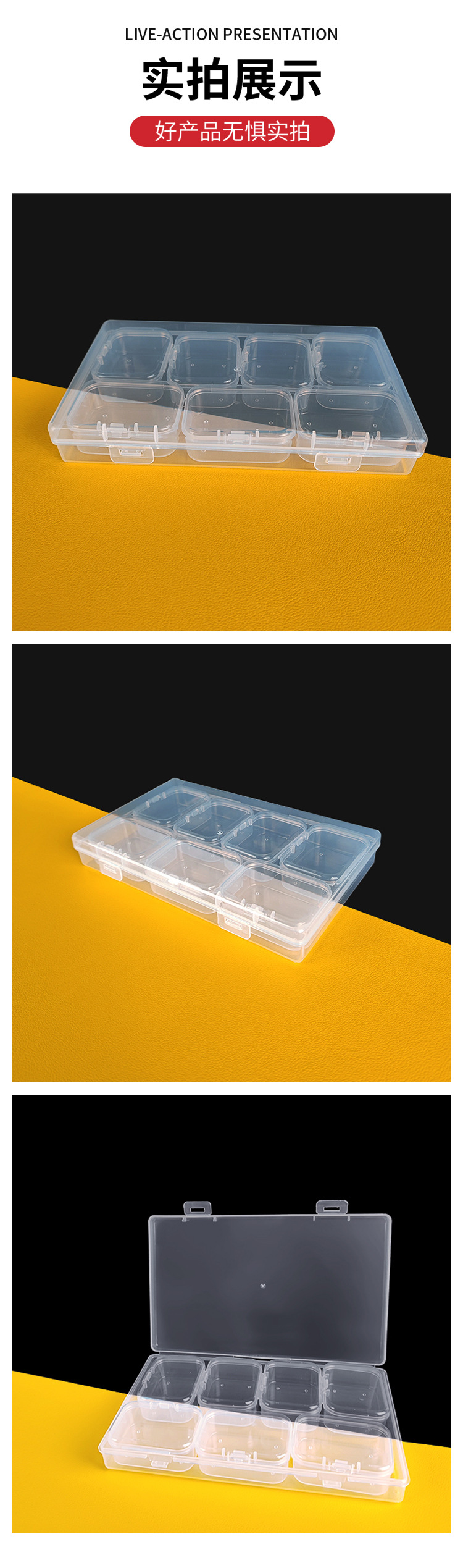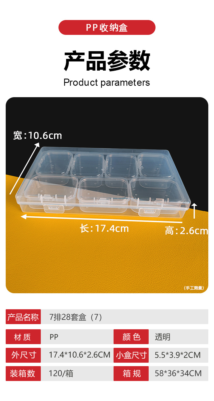 상자 7 투명 pp 플라스틱 분류 상자 화재 옻칠 왁스 곡물 콩 포장 상자 직사각형 저장 상자의 새로운 세트