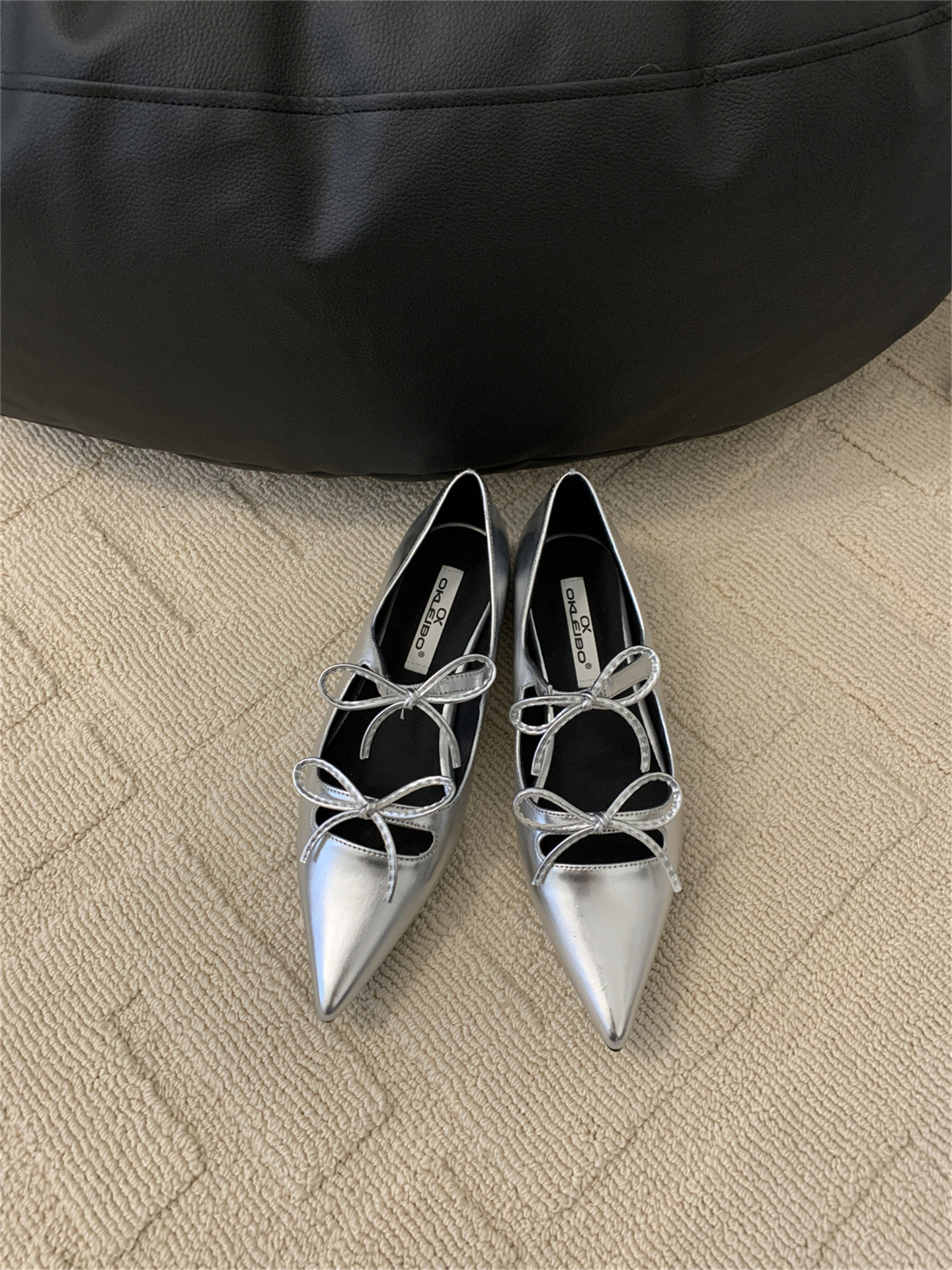 [연주] 프랑스 메리 제인 신발 여성 2024 가을 새 디자인 저발 뾰족한 활 작은 가죽 신발