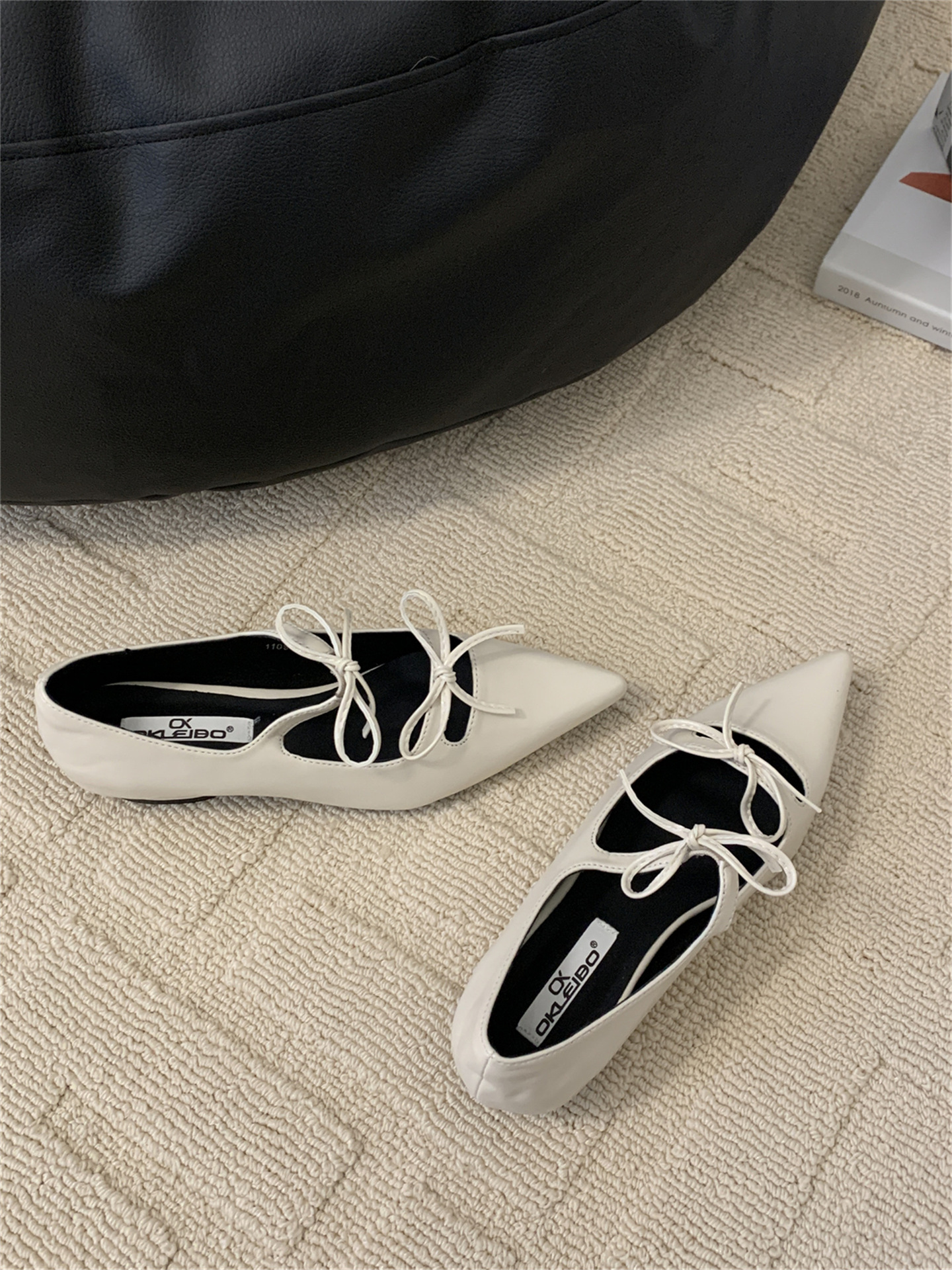 [연주] 프랑스 메리 제인 신발 여성 2024 가을 새 디자인 저발 뾰족한 활 작은 가죽 신발스토어 가기