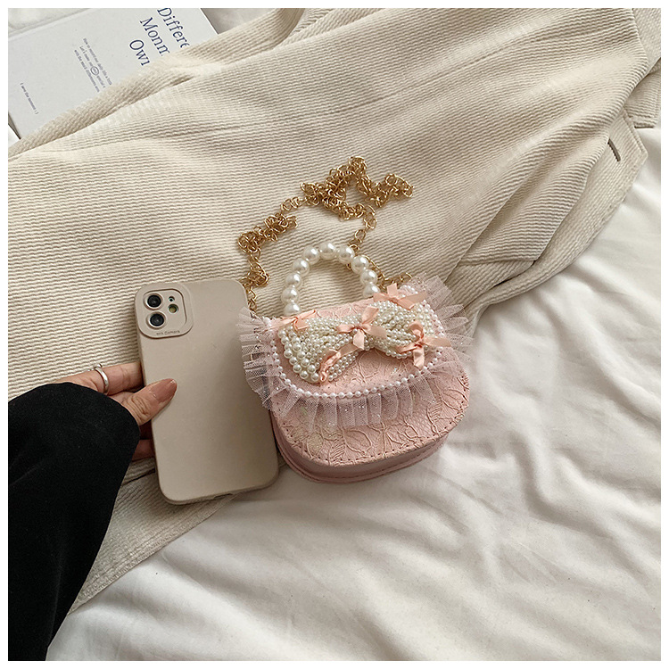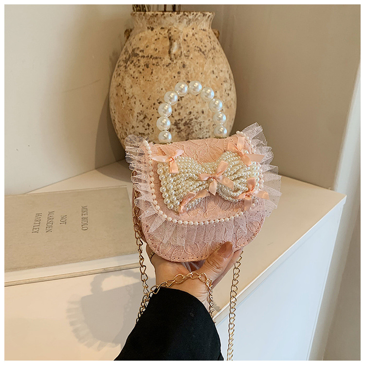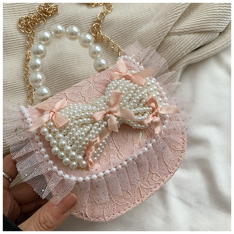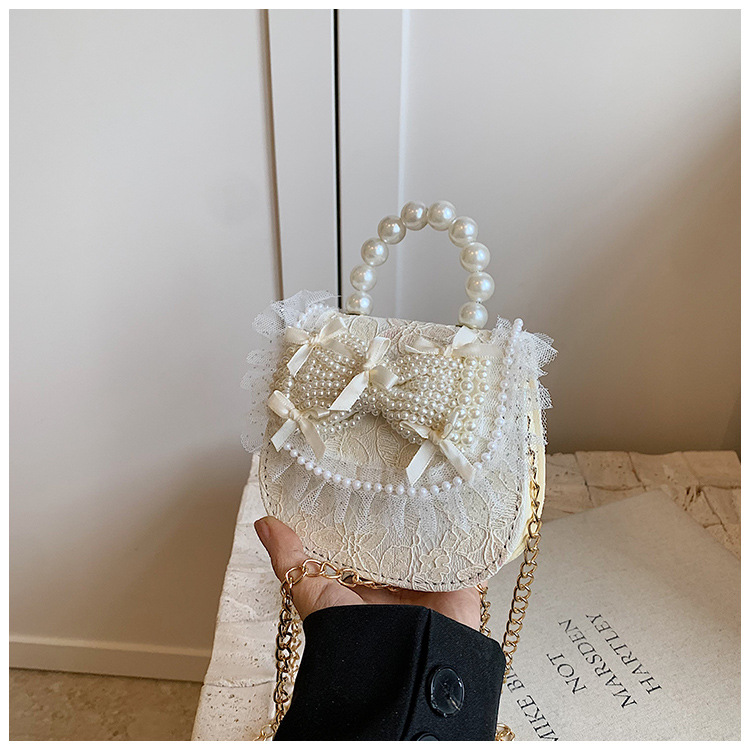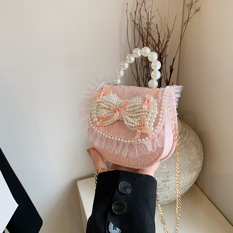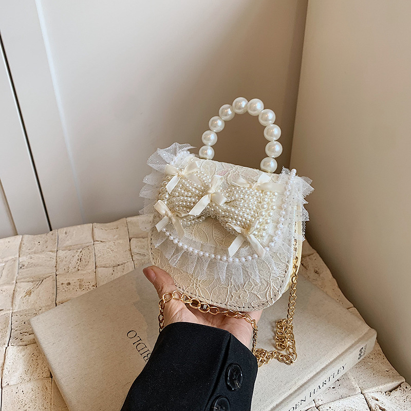 질감 높은 가치 진주 여성 보물 핸드백 레이스 활 소녀 어깨 가방 샤넬 공주 크로스 바디 백