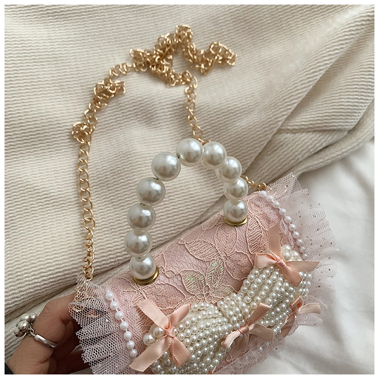 질감 높은 가치 진주 여성 보물 핸드백 레이스 활 소녀 어깨 가방 샤넬 공주 크로스 바디 백스토어 가기