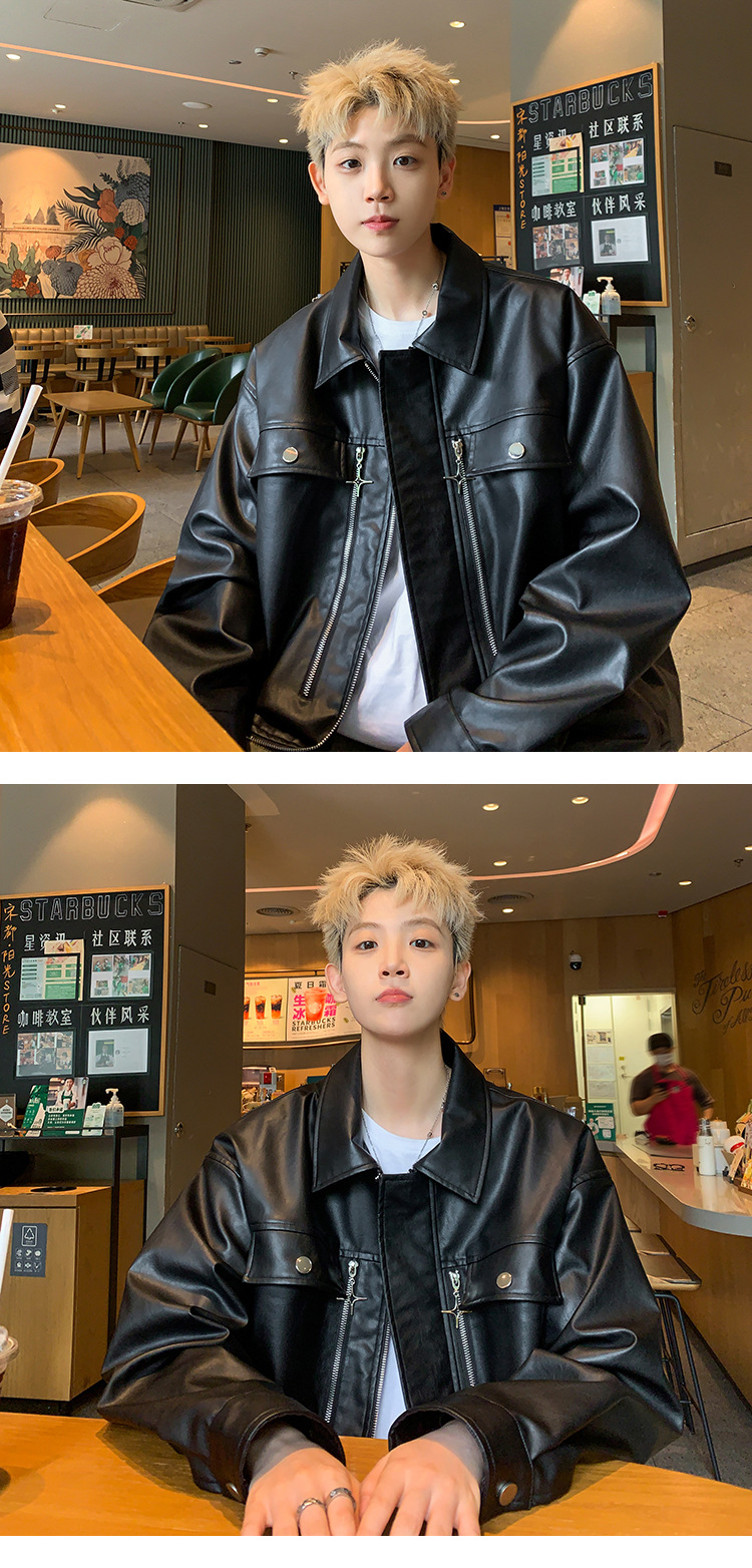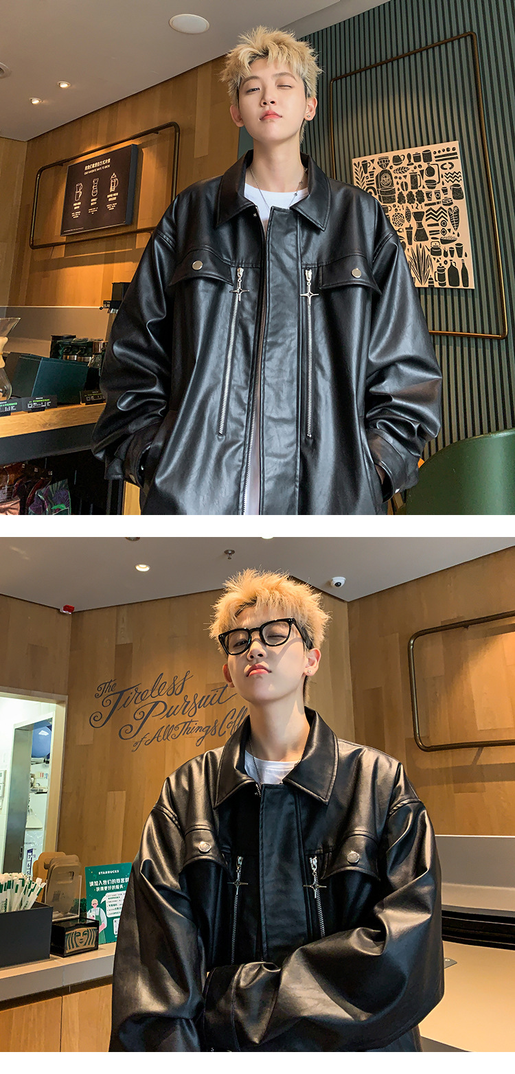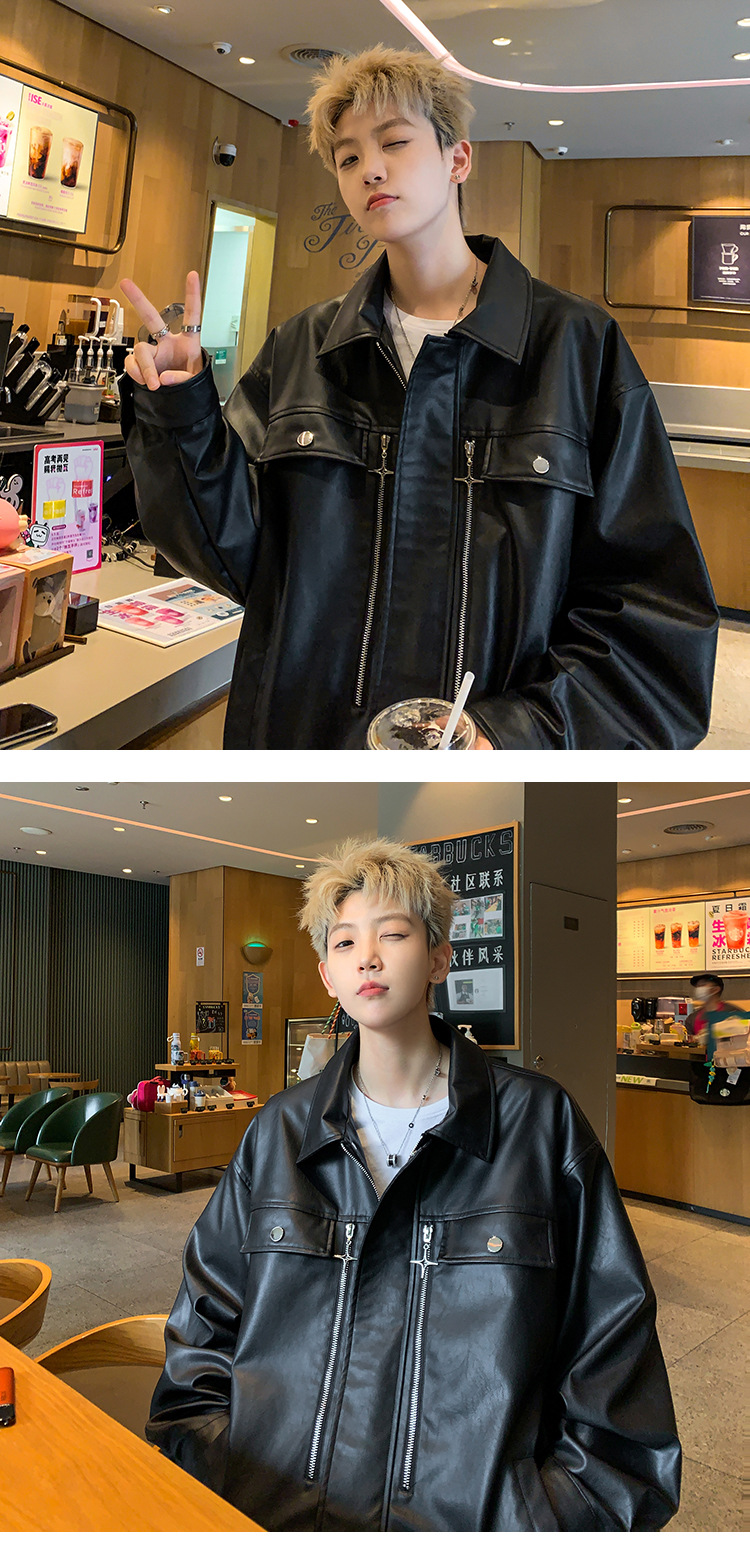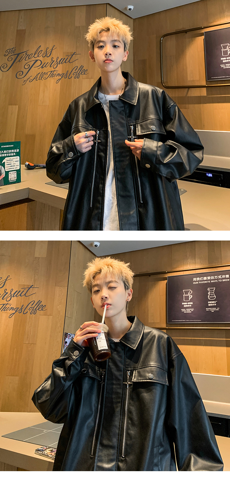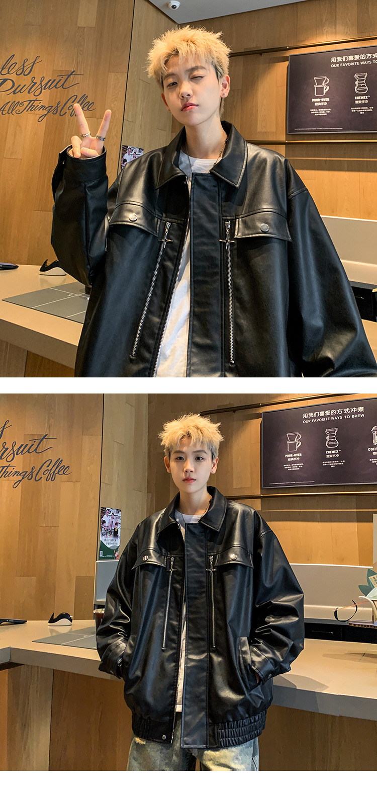 가죽 자켓 남자 2024 년 새로운 봄과 가을 Pushuai 튀긴 거리 느슨한 조수 브랜드 미국 하이 스트리트 오토바이 pu 가죽 자켓스토어 가기