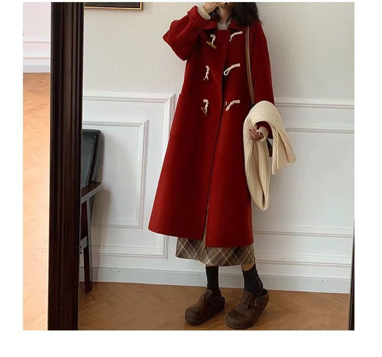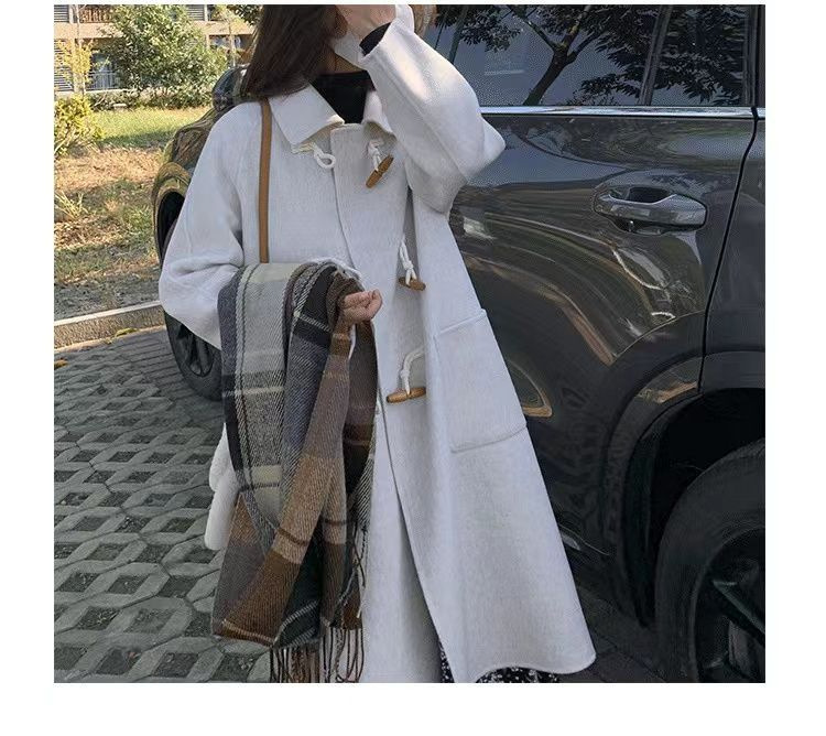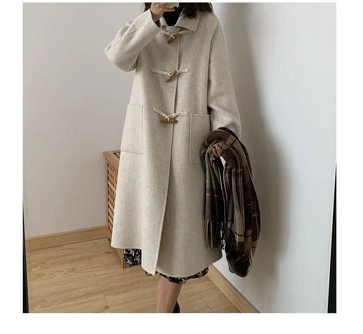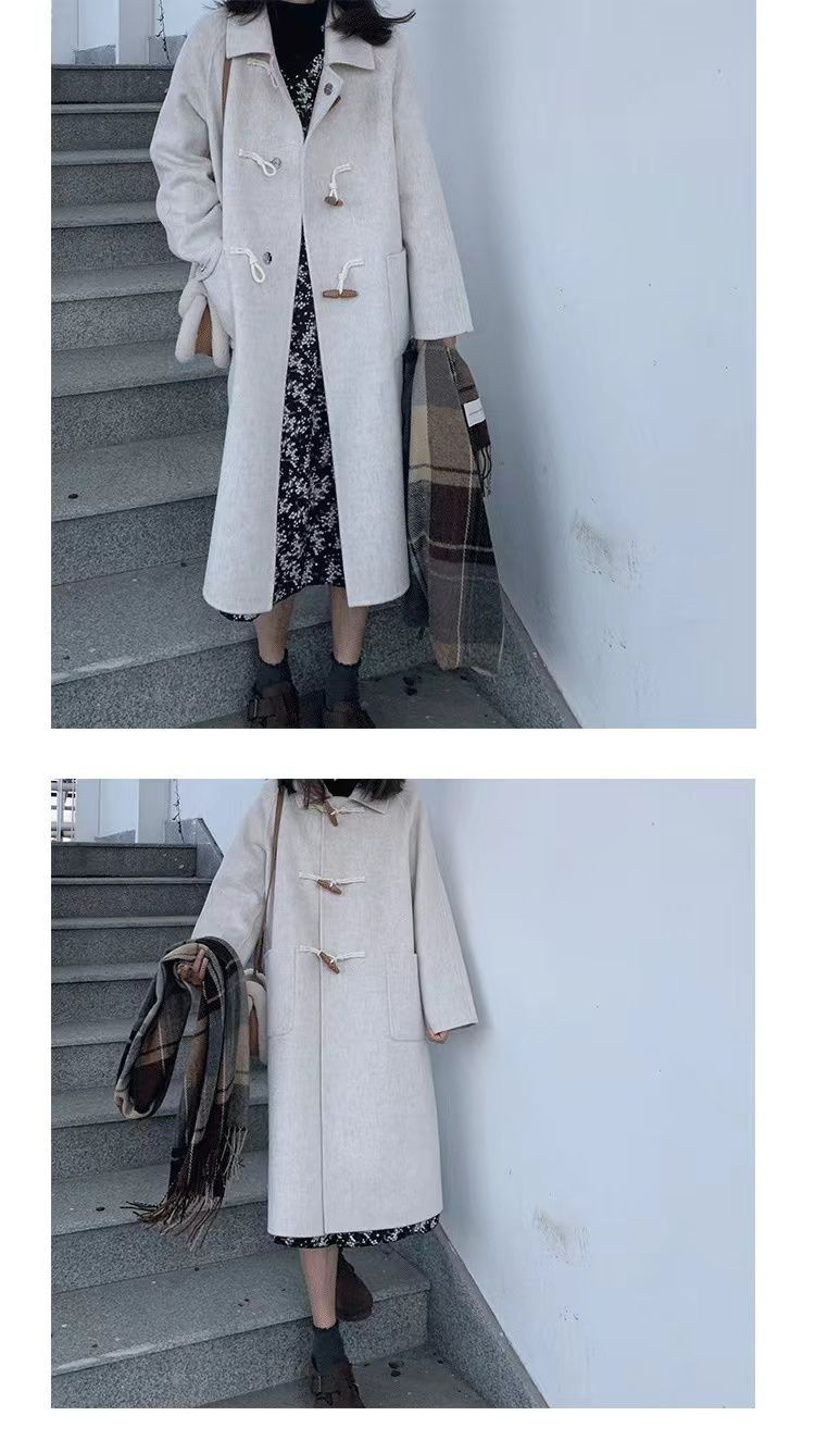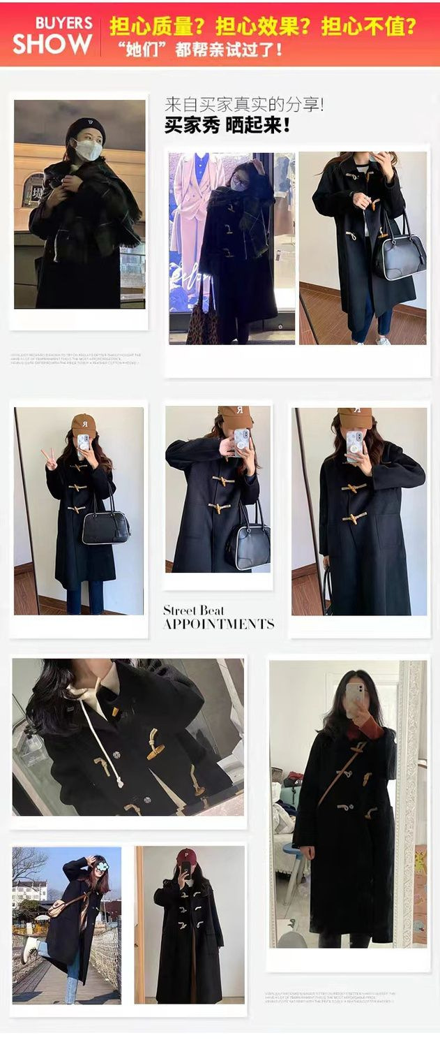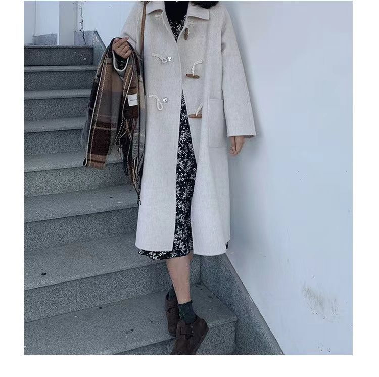 가을과 겨울 한국 대학 바람 그물 기념 중장 무릎 길이 모직 코트 작은 향기로운 스타일 코너 버클 모직 코트스토어 가기