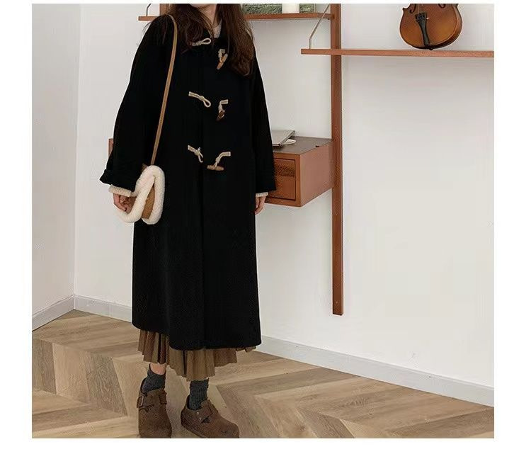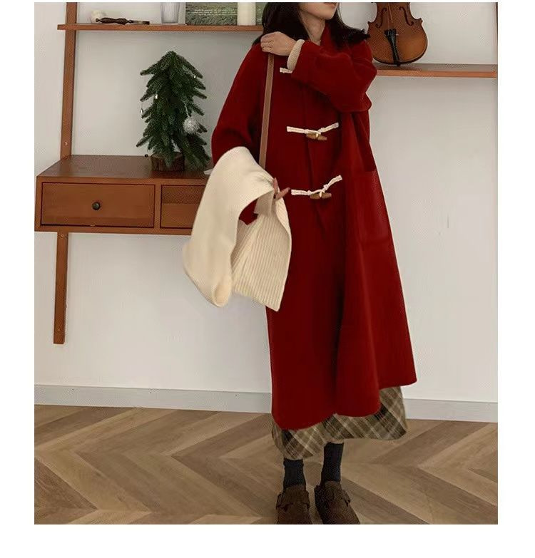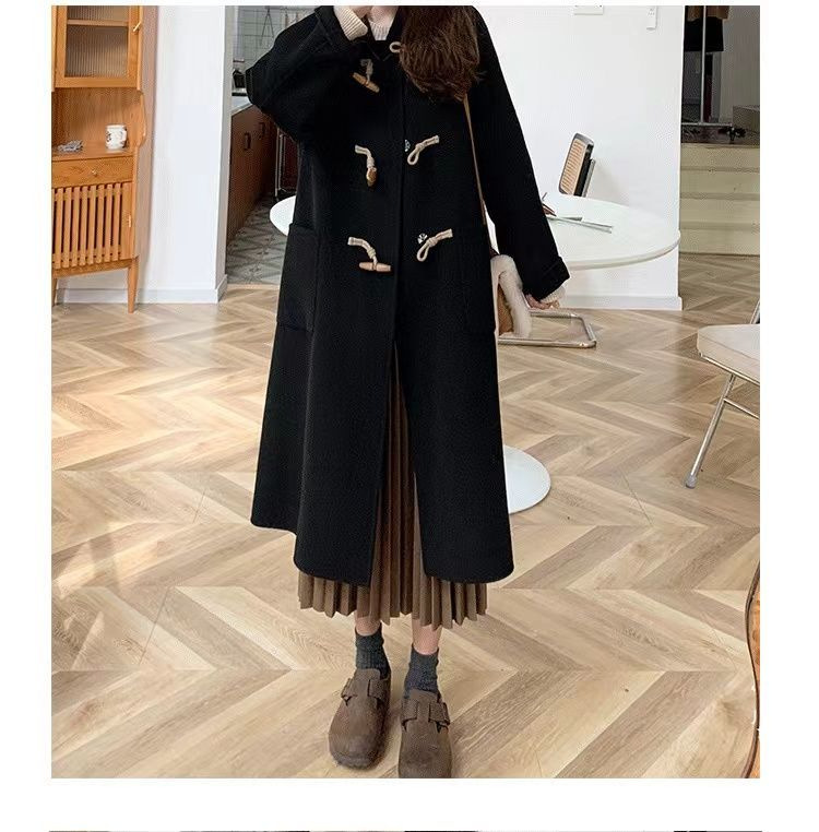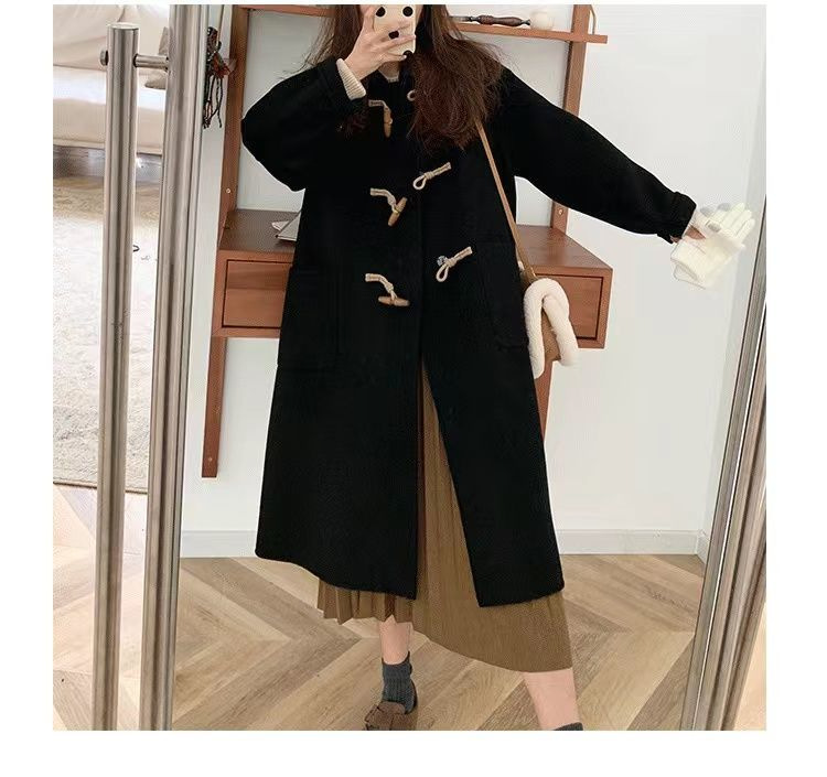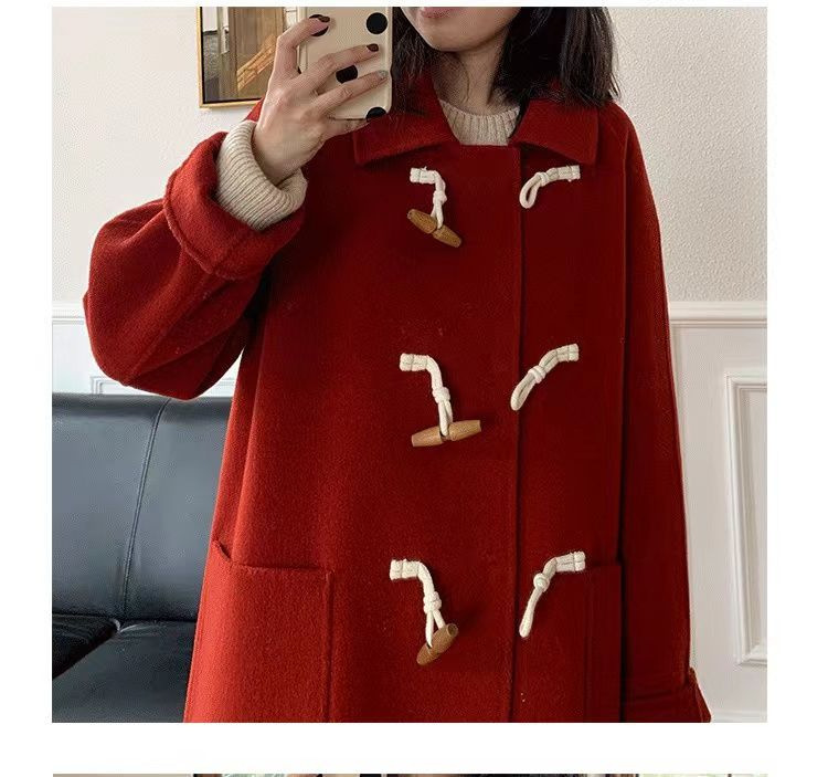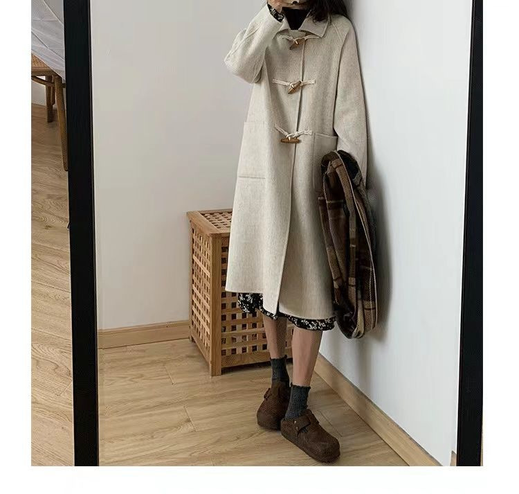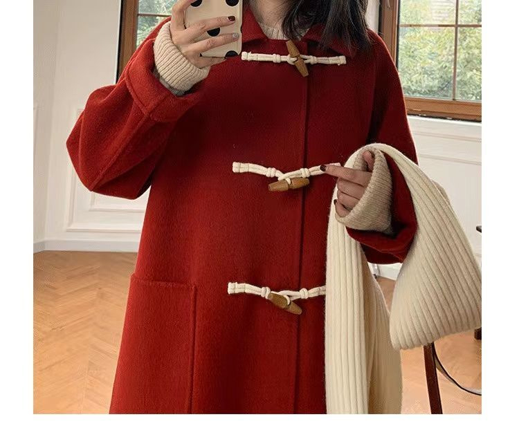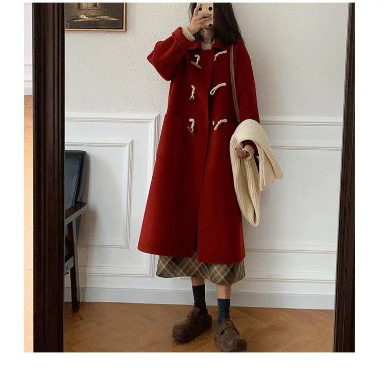 가을과 겨울 한국 대학 바람 그물 기념 중장 무릎 길이 모직 코트 작은 향기로운 스타일 코너 버클 모직 코트스토어 가기