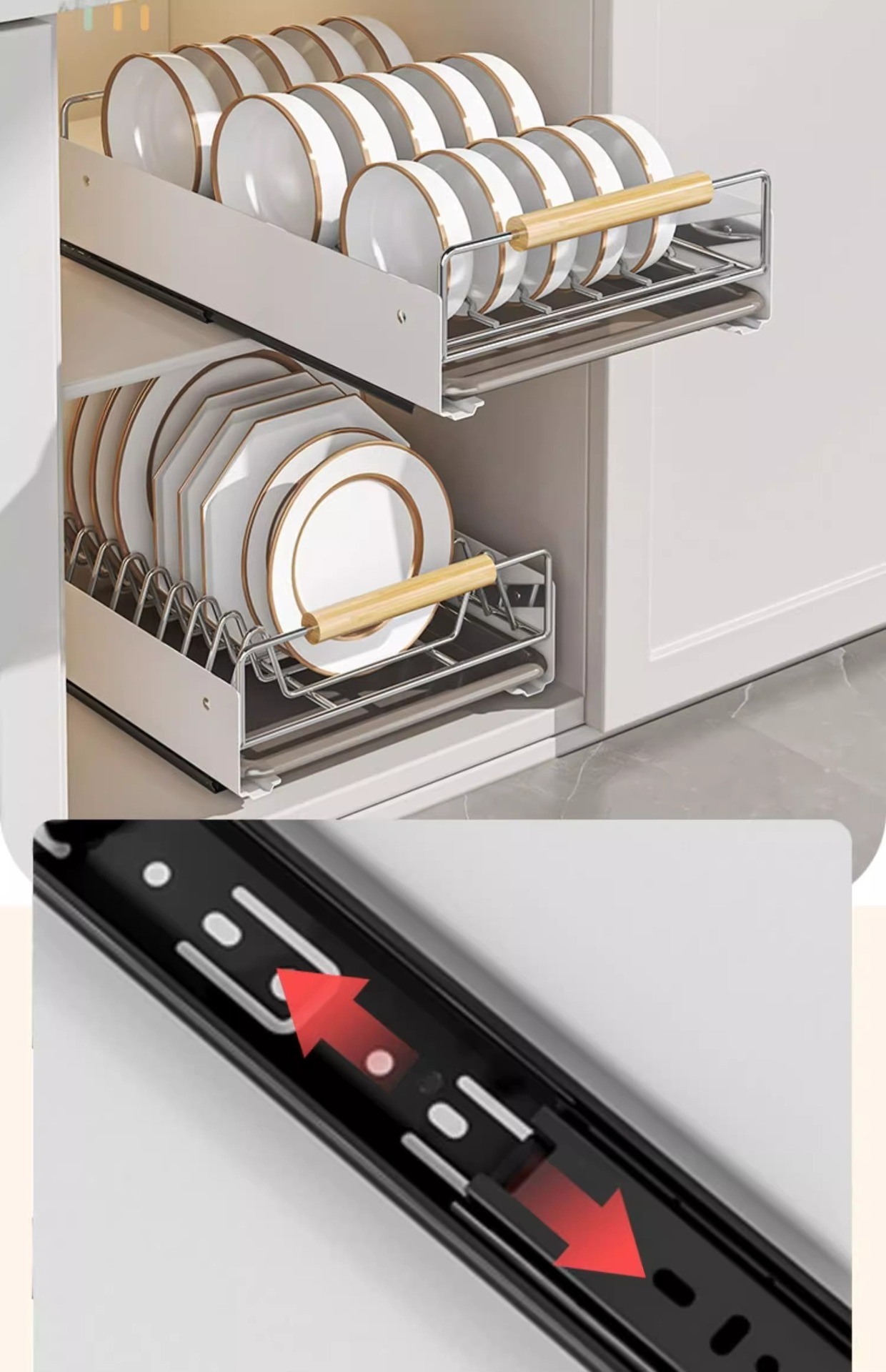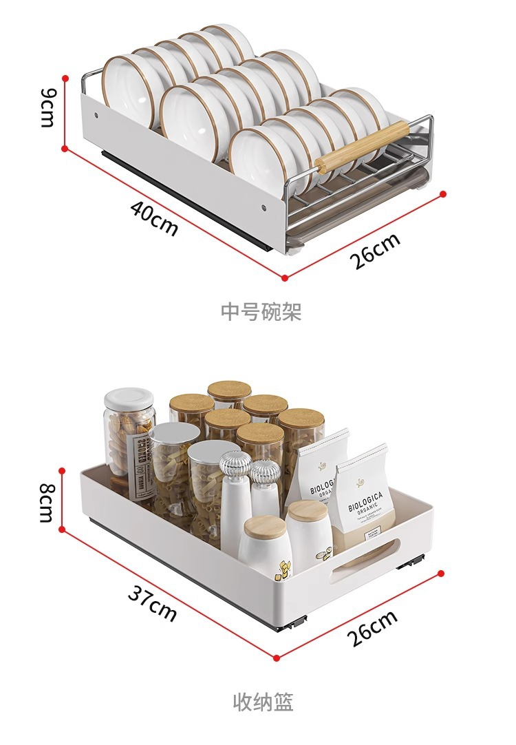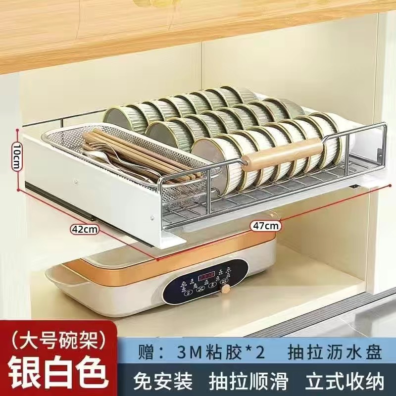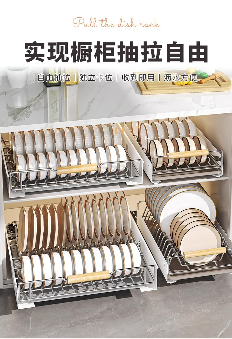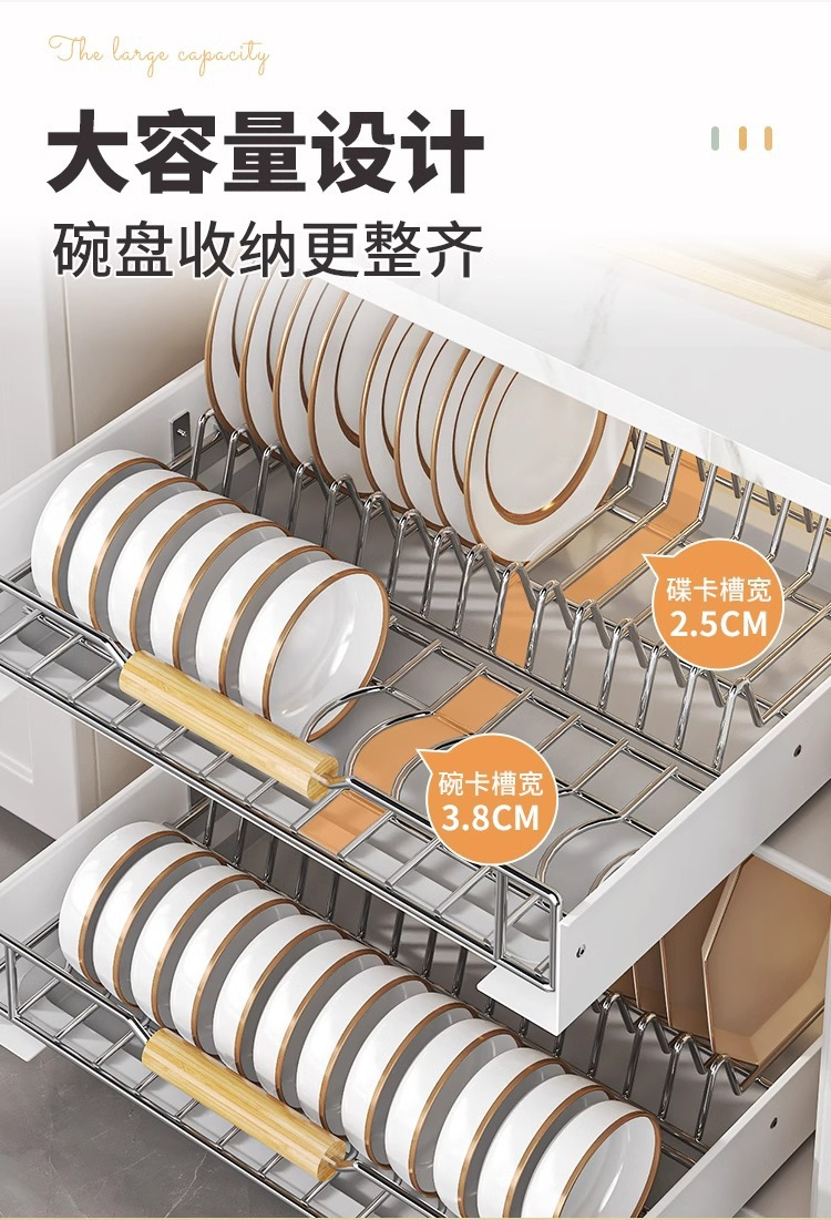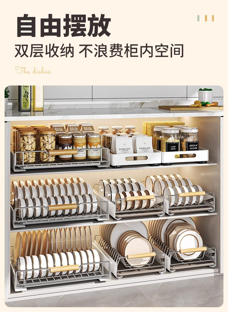 스테인레스 스틸 접시 저장 랙 주방 캐비닛 접시 저장 랙 서랍 유형 서랍 바구니 서랍