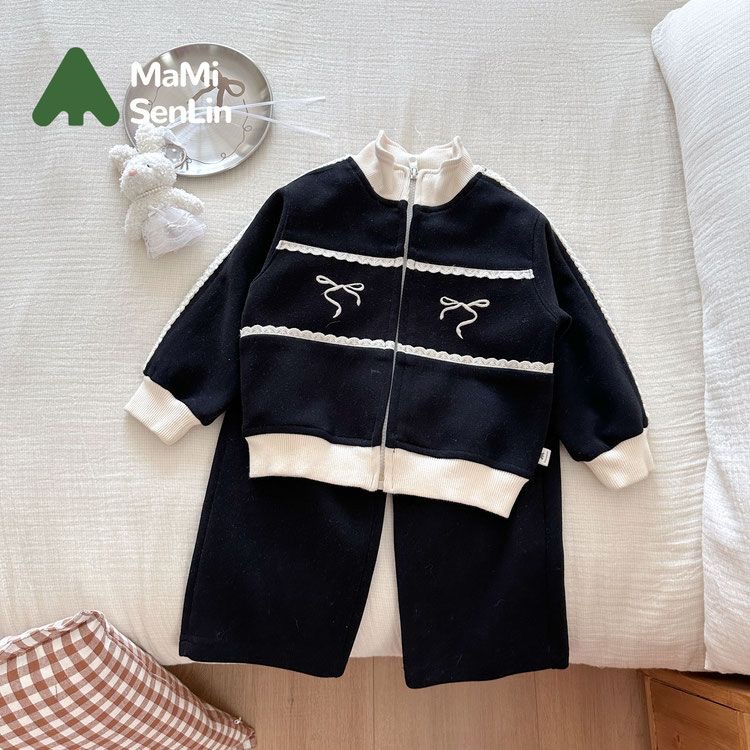 아동 코트 캐주얼 정장 봄, 가을 2025 새로운 캐주얼 리본 투피스 세트 가을 의류 소녀의 세련된 아동복스토어 가기