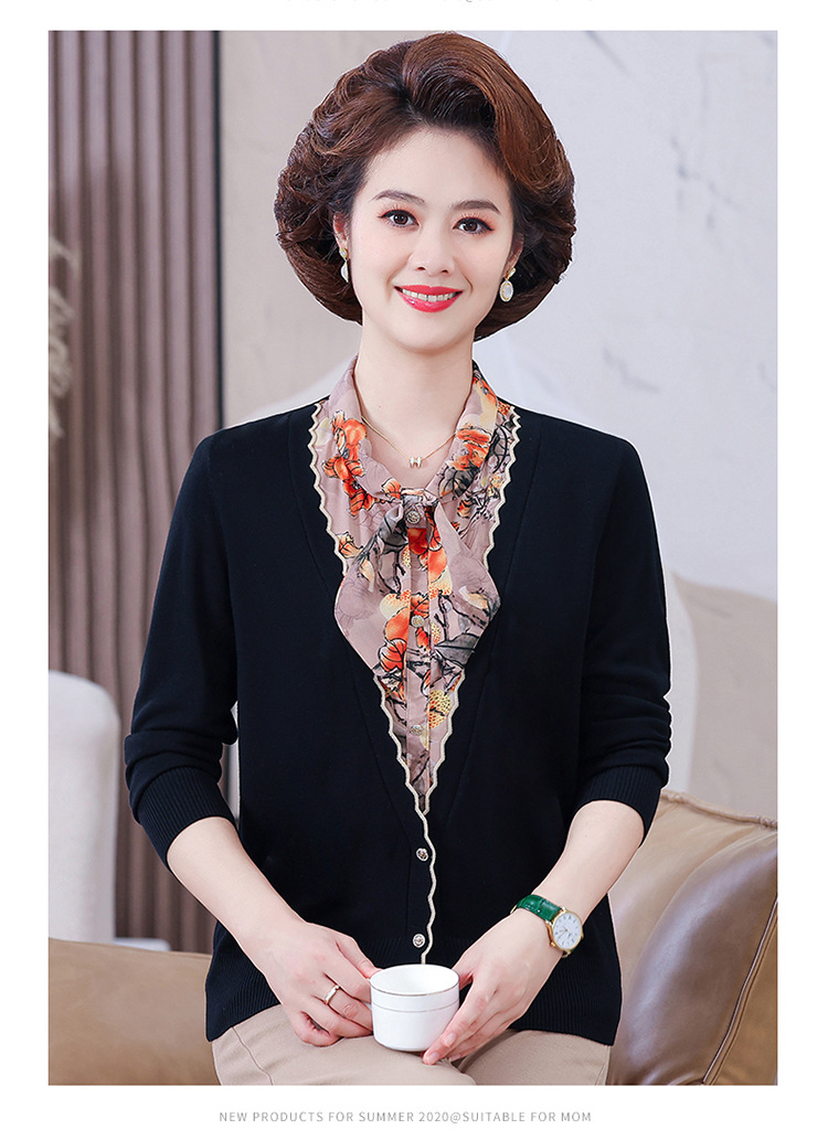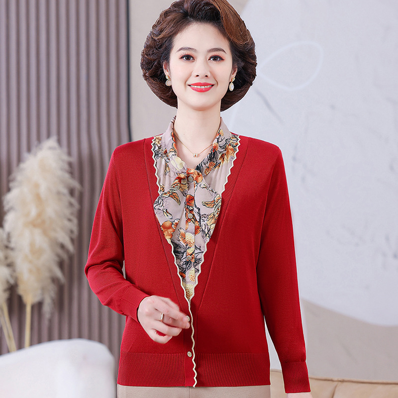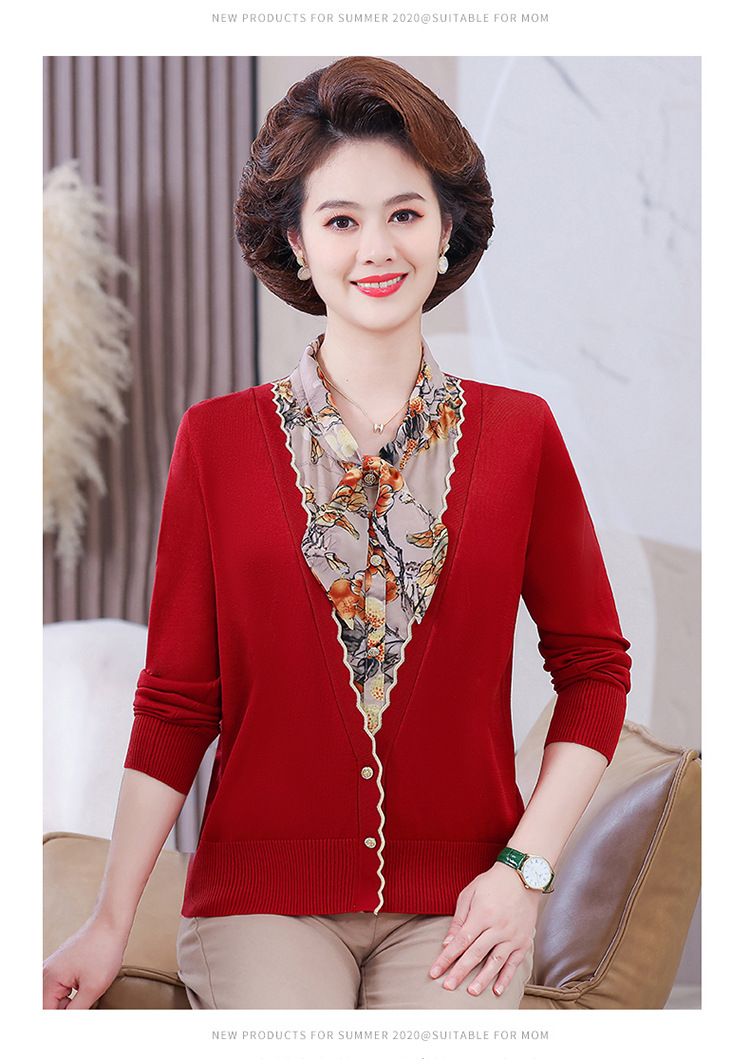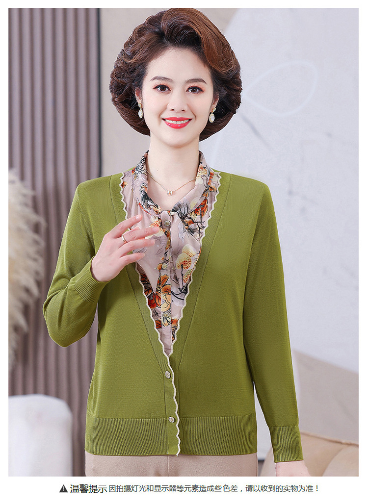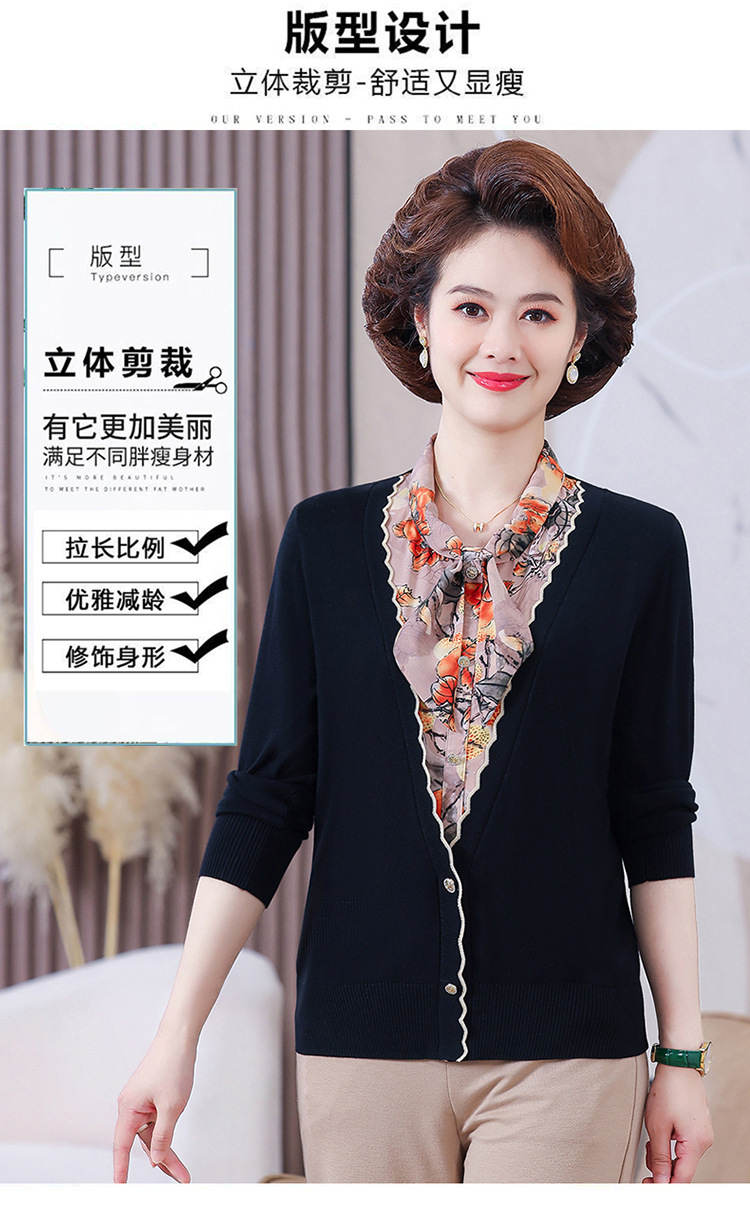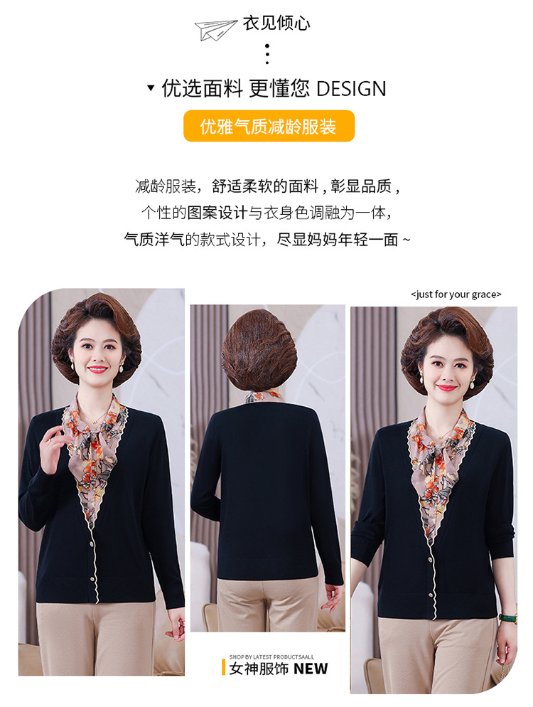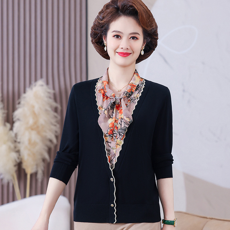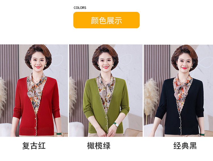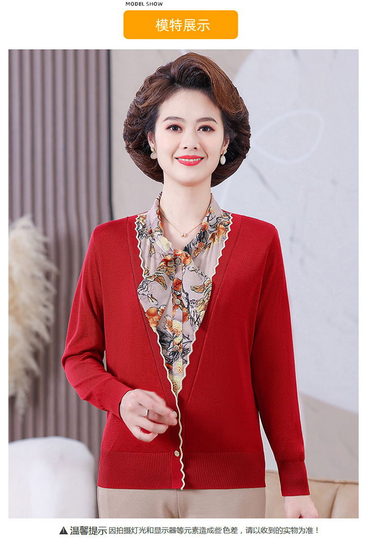 엄마 가을 2024 새로운 가짜 투피스 베이스 셔츠 중년 여성 레이스 업 스타일 웨스턴 스타일 노블 티셔츠 탑