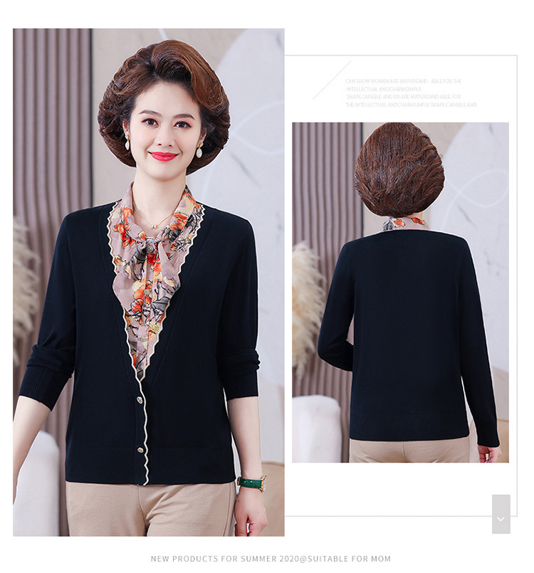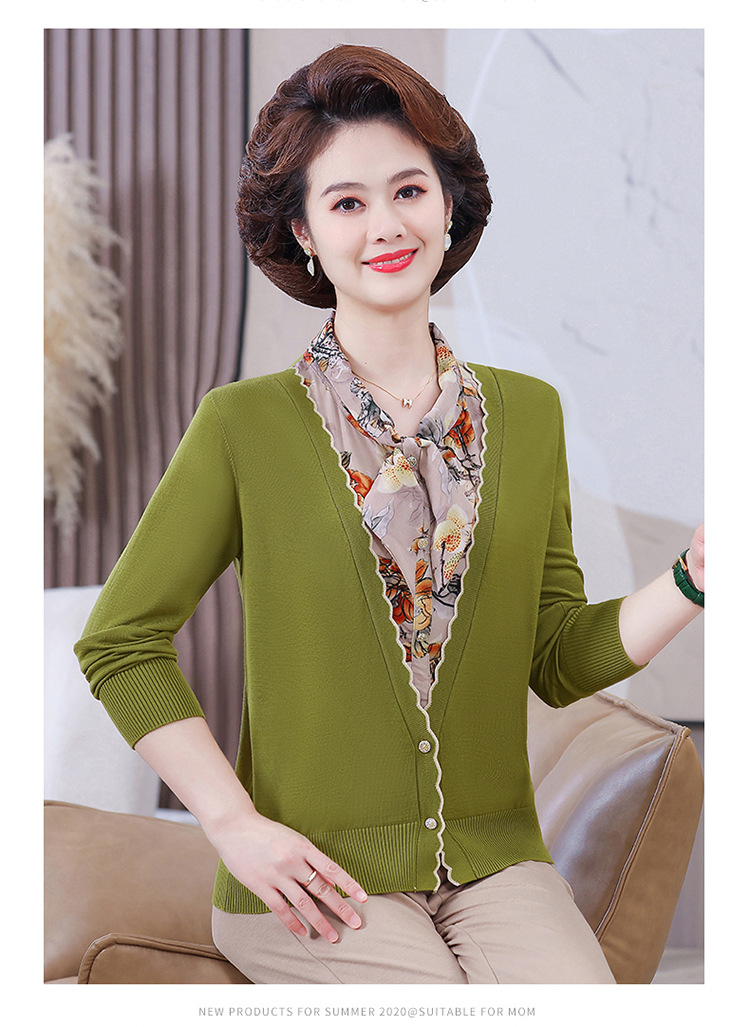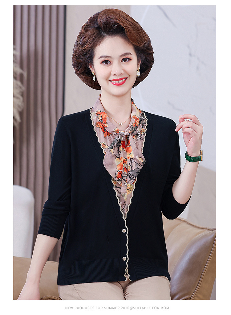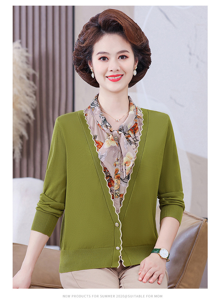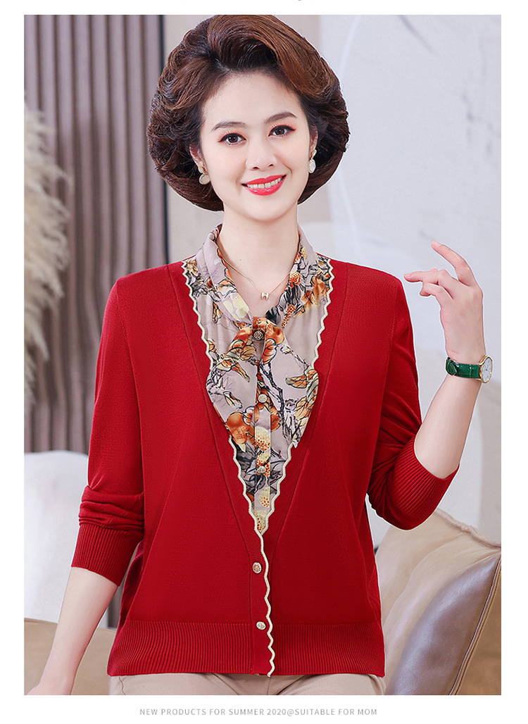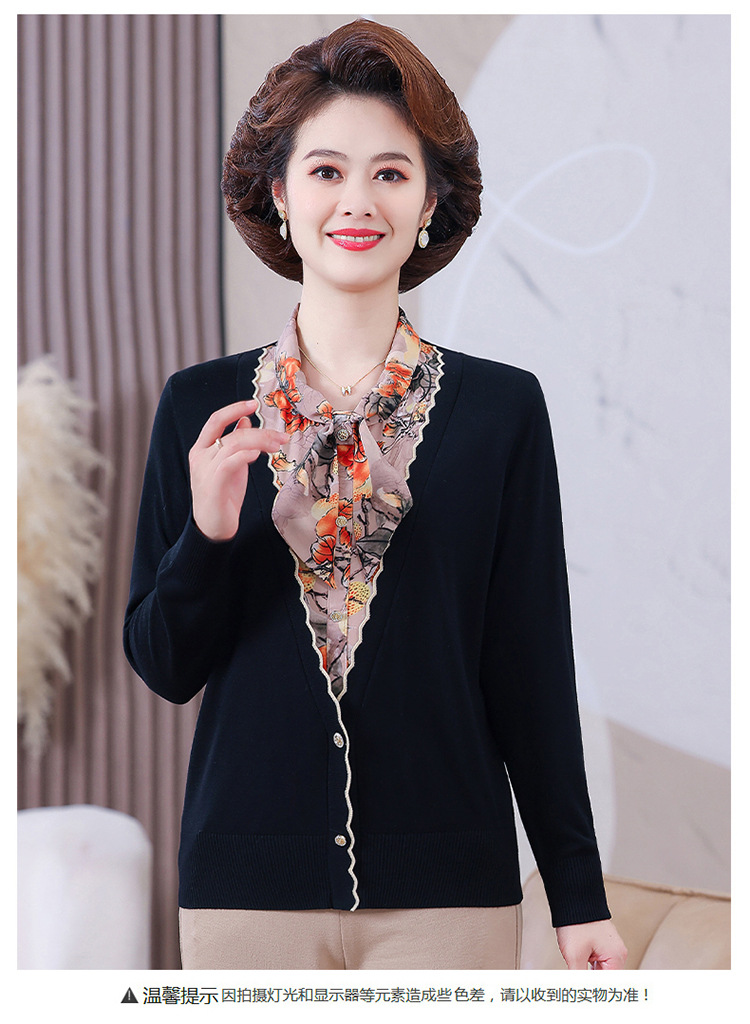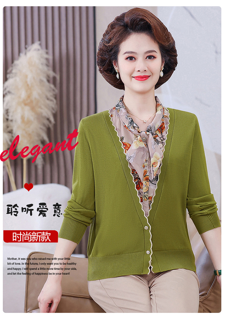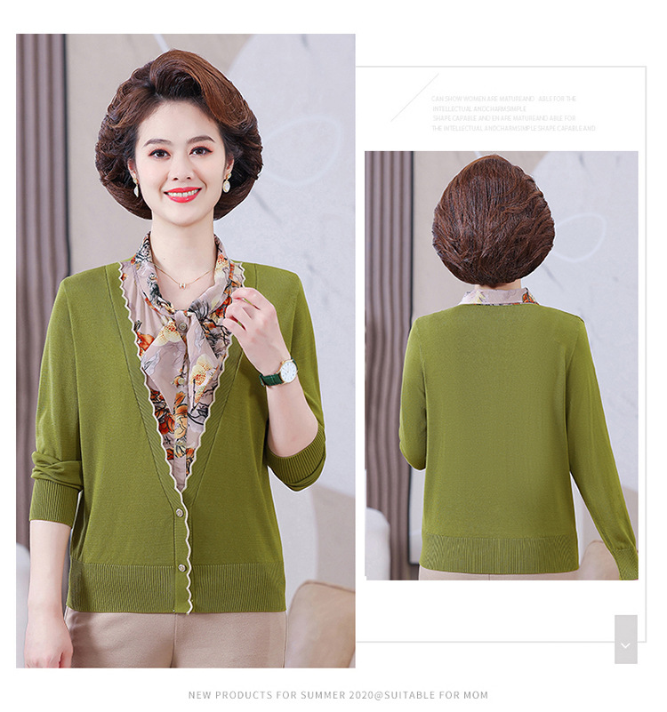 엄마 가을 2024 새로운 가짜 투피스 베이스 셔츠 중년 여성 레이스 업 스타일 웨스턴 스타일 노블 티셔츠 탑