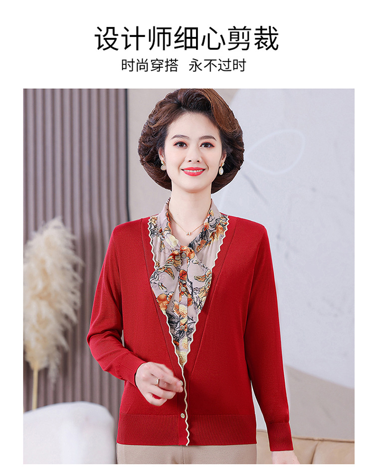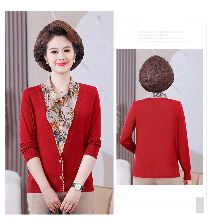 엄마 가을 2024 새로운 가짜 투피스 베이스 셔츠 중년 여성 레이스 업 스타일 웨스턴 스타일 노블 티셔츠 탑스토어 가기