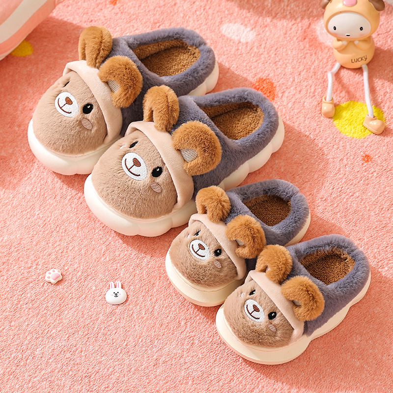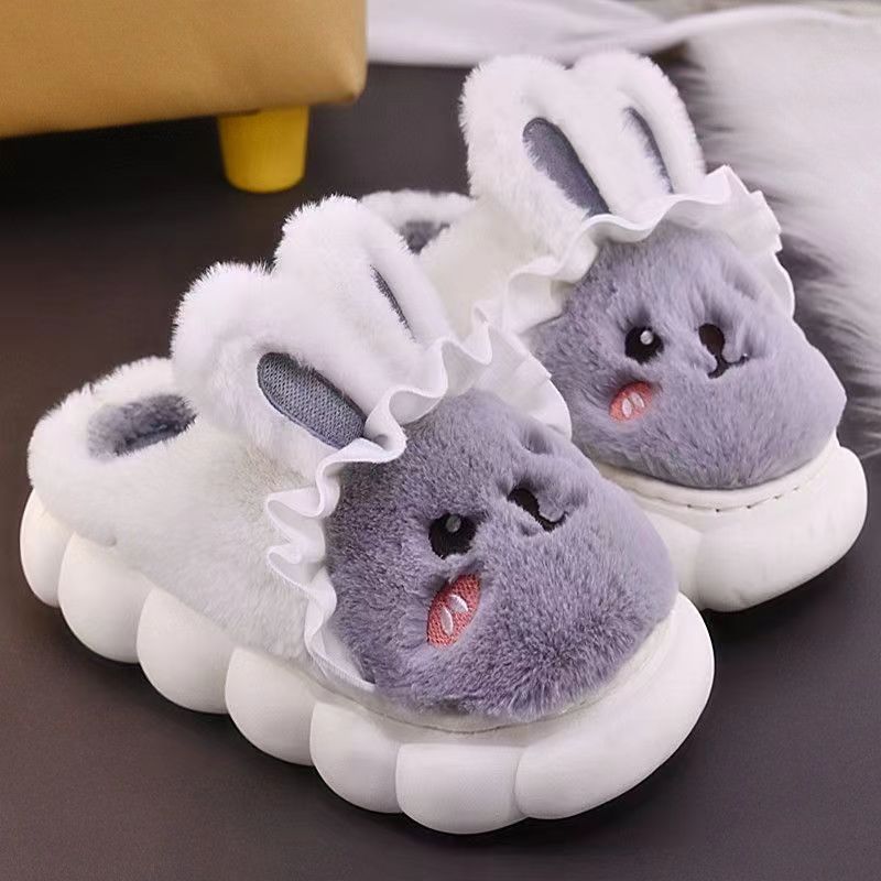 2022 년 새로운 두꺼운 밑창 면화 슬리퍼 여성용 겨울 반 굽 실내 미끄럼 방지 두꺼운 밑창 따뜻한 플러시 신발 남성용스토어 가기